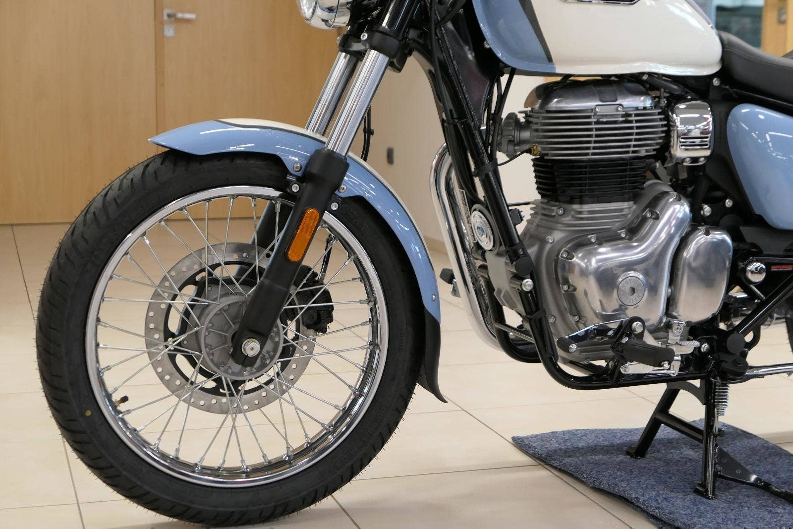 Ústředním prvkem nového Classic 350 je zcela nové srdce, které bije do jedinečného rytmu Royal Enfield. Ve spojení s novým rámem se dvěma spodními trubkami, který jezdí pevně a věrně, solidní a spolehlivou kvalitou konstrukce, je Classic vaším spojencem, ať už je váš cíl kdekoliv. Vzpřímená jízdní poloha dává jezdci Classicu vynikající vzhled na silnici, zatímco brzdy s větším průměrem zvyšují jeho brzdnou sílu. Ale silnější neznamená jen schopný a odolný, Classic je obdařen také pohodlím, s vylepšeným širším sedlem, které zpříjemňuje jízdu.