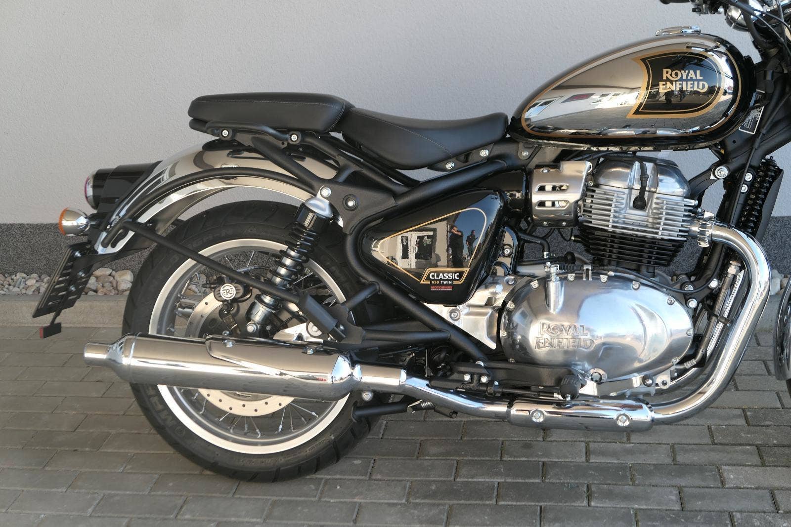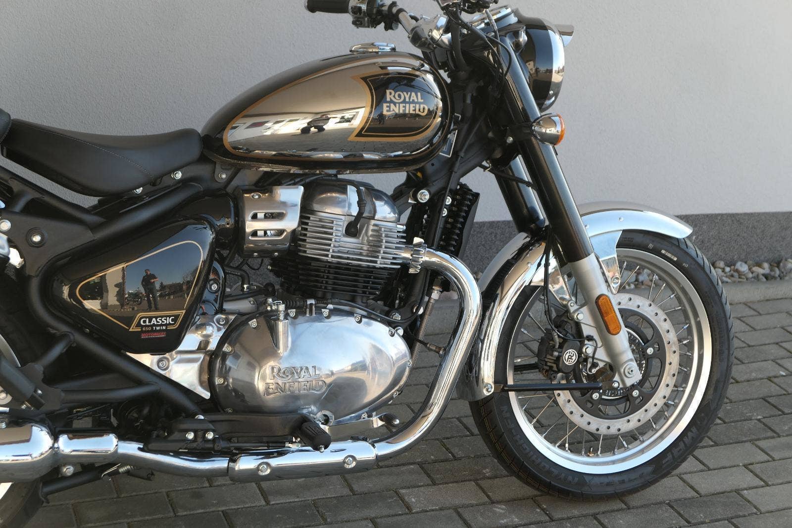 Dvakrát takový charakter. Dvakrát takové zpracování. Všechny nezaměnitelné rysy modelu Classic, nyní však s prověřeným pohonem 650 Twin. Oblíbený paralelní dvouválec Royal Enfield 648 ccm se představuje u modelu Classic 650 vůbec poprvé v nově vyladěné formě, která je kalibrovaná pro elegantní, plynulou jízdu, avšak s nedostižným výkonem, kdykoli si zamanete. Nový model Classic 650 Twin zůstává věrný své DNA a nabízí jezdcům výkonnou kombinaci estetiky staré školy a snadného přenosu výkonu. Jeho majestátní, aerodynamický tvar je poháněn proslulým motorem 650, což vede k jízdě, která je rychlá a ladná zároveň.