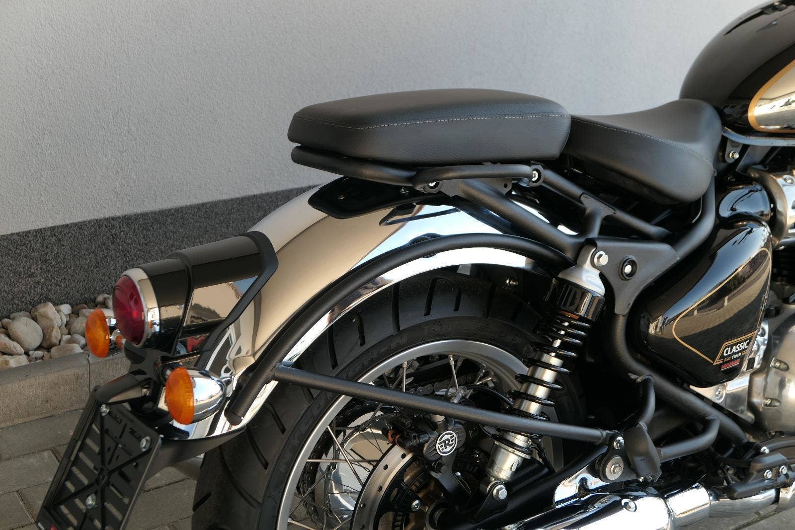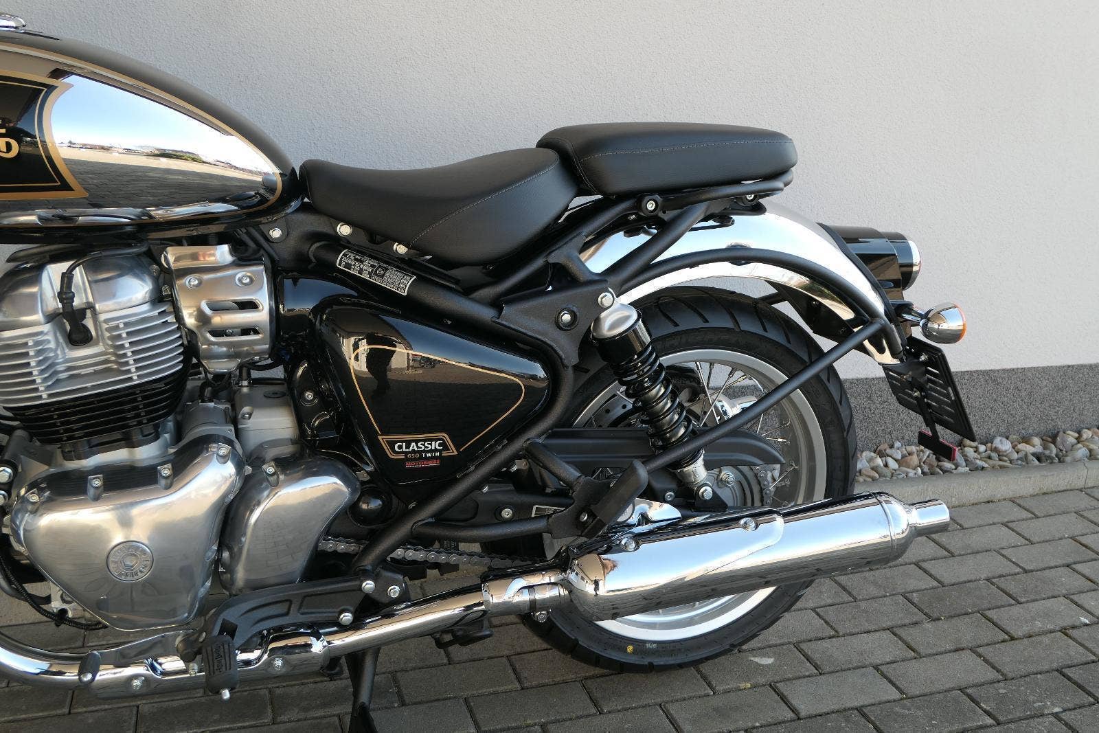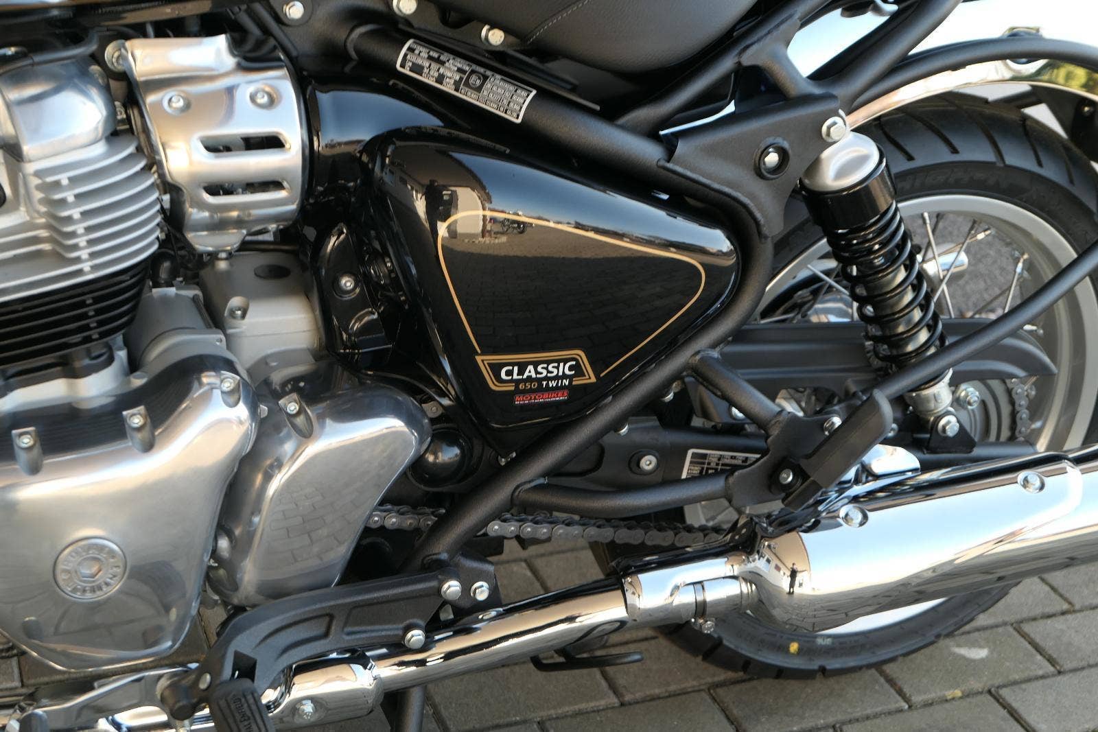 -model Classic vstupuje do éry 650 se dvěma vysoce výkonnými výfuky typu Peashooter v zářivé chromové úpravě, která jim dává zbrusu nový vzhled i zvuk.