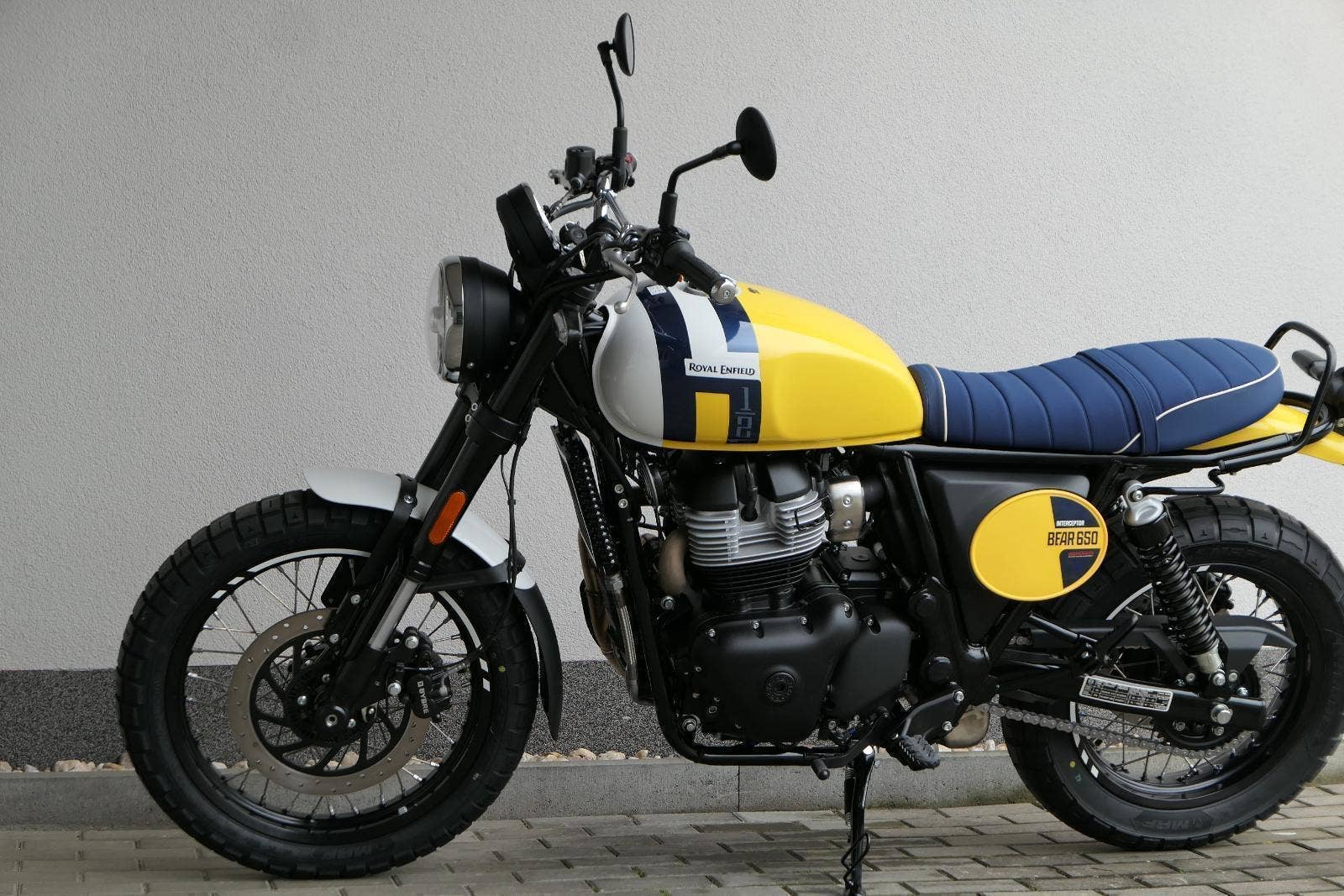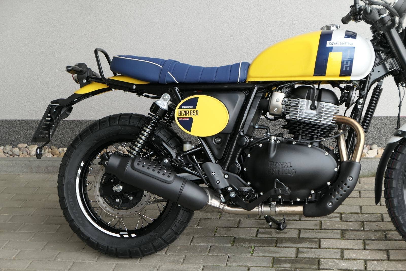 Silniční scramler s duší šedesátých let. Bear 650 ztělesňuje ducha šestnáctiletého nováčka, který se v roce 1960 seřadil vedle stovek spálených nadějí, všichni hladoví po vítězství v nejdivočejším závodě, jaký kdy kalifornská poušť znala - Big Bear Run.