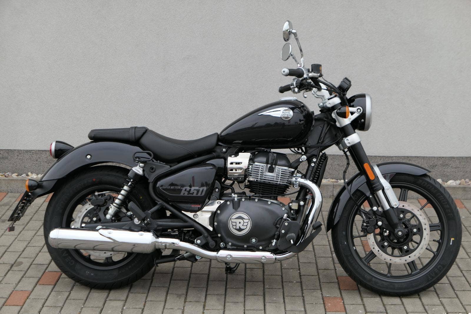 Super Meteor 650 byl vytvořen na základě našeho trvalého přesvědčení, že lidé se při cestování nesmějí nechat omezovat hodinami nebo kilometry. Hnací silou motocyklu Super Meteor 650 je náš ikonický řadový dvouválcový motor, který vyniká plynulým řazením převodových stupňů, silným zrychlením v nízkých otáčkách a hladkou a plynulou odezvou na plyn. Nízko posazené, široké sedlo a uvolněná řidičská pozice zajistí pohodlný zážitek z jízdy bez ohledu na to, kolik kilometrů máte za sebou a kolik je před vámi. Prostorná kapkovitá nádrž motocyklu Super Meteor 650 pojme až 15,7 litrů paliva, díky čemuž můžete i ty nejdelší jízdy absolvovat bez přerušení. Obrácené vidlice na předním odpružení přinášejí naprostou jistotu a kontrolu na otevřených dálnicích, přeplněných ulicích a všech dalších cestách. Zcela nový přední světlomet je kombinací retro estetiky a moderního LED světla snižující spotřebu energie a zlepšující viditelnost, ať už máte namířeno kamkoli. Na digitálně analogovém přístrojovém panelu s retro nádechem a plovoucí LCD obrazovkou a vestavěnou navigací Tripper máte k dispozici všechny potřebné informace po celý den. Nápadná litá kola s bezdušovými pneumatikami zajišťují, že nic nenaruší vaše plány, a širší zadní pneumatika umožňuje lepší trakci a stabilitu i při nejvyšších rychlostech.