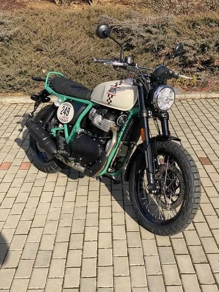 Napájení díky emocím a pohon zajišťuje ověřený paralelní dvouválec Royal Enfield o objemu 650 ccm. Je chráněn pláštěm ve vysoce odolné, prémiové černé úpravě, čímž získává robustní a účelné vzezření a je očividně dokonalým scramblerem.