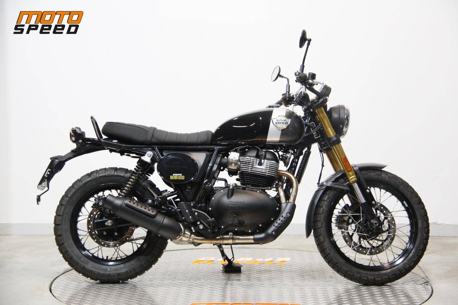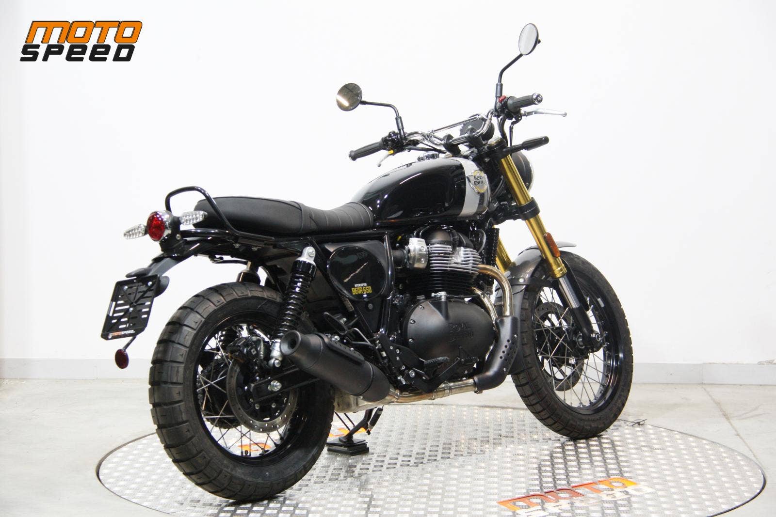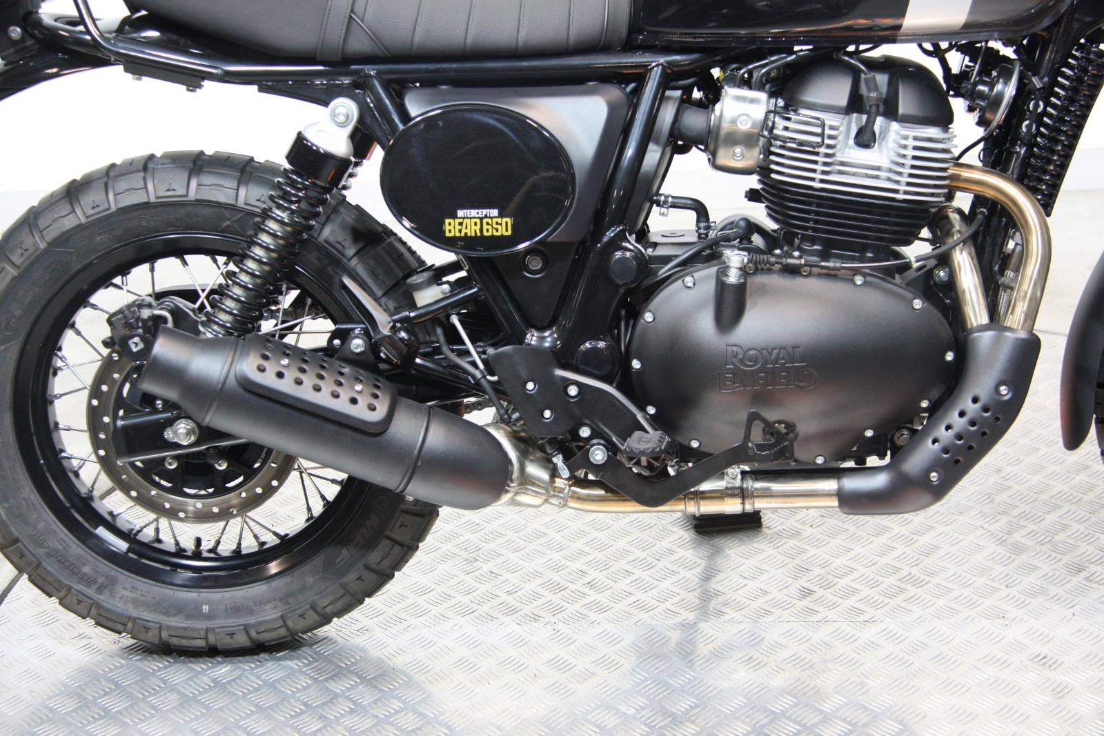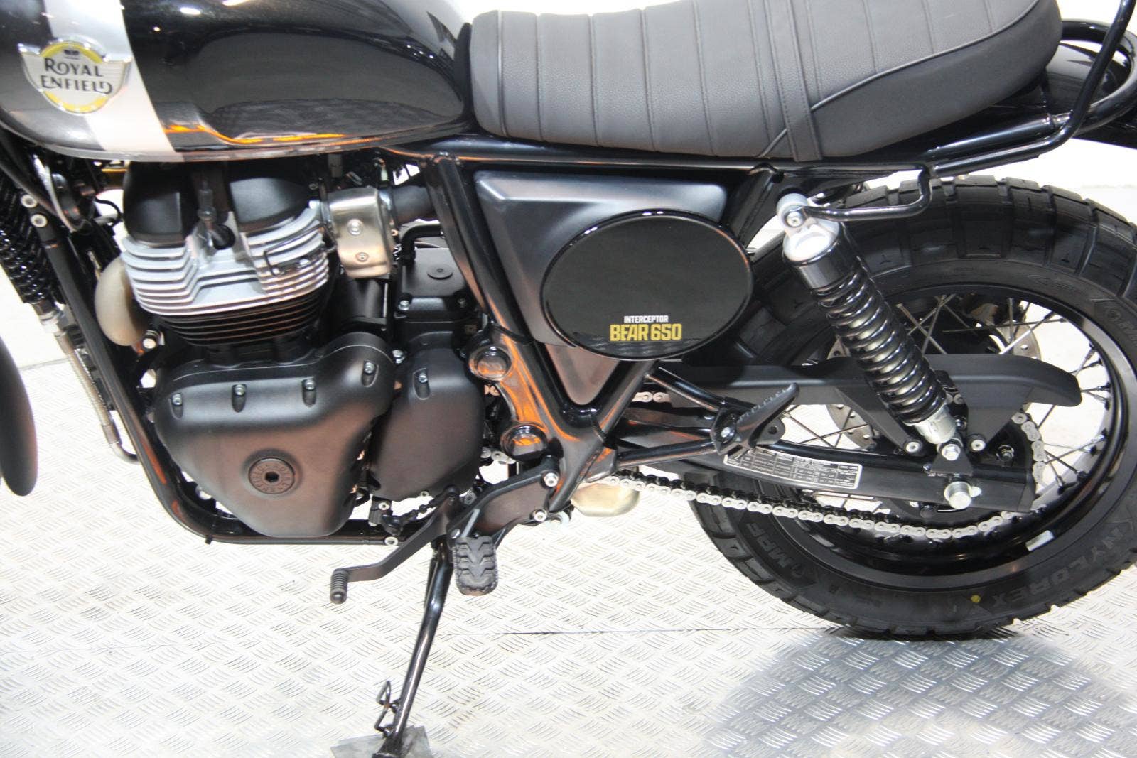 Bear 650 – stylový scrambler s duší 60. let založený na Interceptoru 650 a inspirovaný historickým vítězstvím Eddieho Muldera na Big Bear Run v roce 1960.