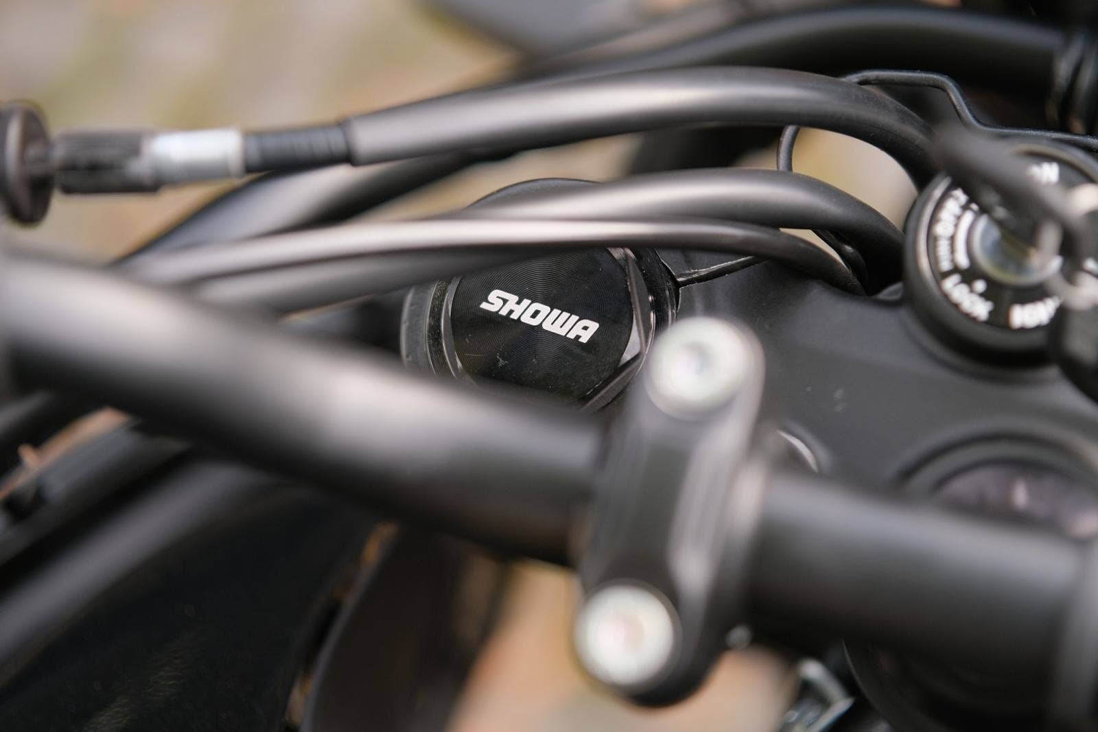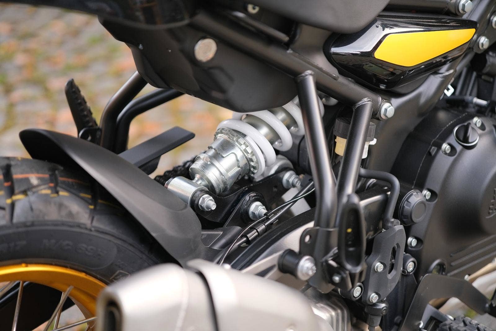 Zadní tlumiče: SHOWA Mono Shock s nastavitelným předpětím, zdvih 200 mm