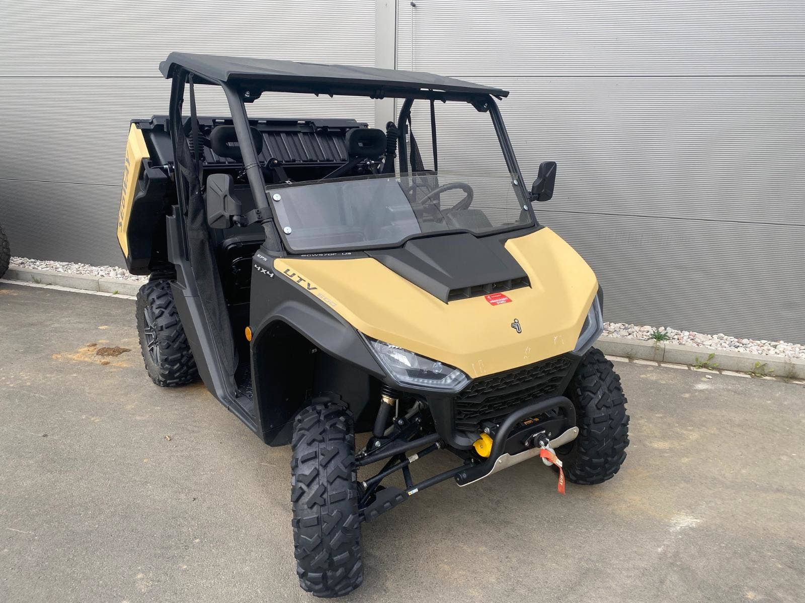 Pracovní UTV T1b, čtyřtaktní jednoválec DOHC 567 cm3 EFI, 44 k, najeto přibližně 1500 km ( stroj je stále nárazově používán pro předváděcí jízdy), automatická převodovka P/R/N/L/H, elektrický posilovač řízení EPS, pohon 4x4 s uzávěrkou předního a zadního diferenciálu, dvojitá A-ramena vpředu / dvojitá A-ramena, hydraulické tlumiče s progresivními pružinami, sklápěcí korba, elektrický naviják 4500 lbs, tažné zařízení homologované, digitální přístrojová deska, 10´´ TFT display, čelní ochranné plexi, pevná střecha, nastavitelný volant, anatomicky tvarovaná sedadla s opěrkou hlavy, hliníkové 14" disky, 27" pneu, parkovací kamera. Tento stroj nabízí jak pracovní, tak i rekreační zážitek. Skvělá prostupnost terénem. Odpočet DPH možný. Tento stroj nelze přihlásit!!! Jízda pouze off-road. Záruka 24 měsíců. Před prodejem bude udělán kompletní garanční servis.