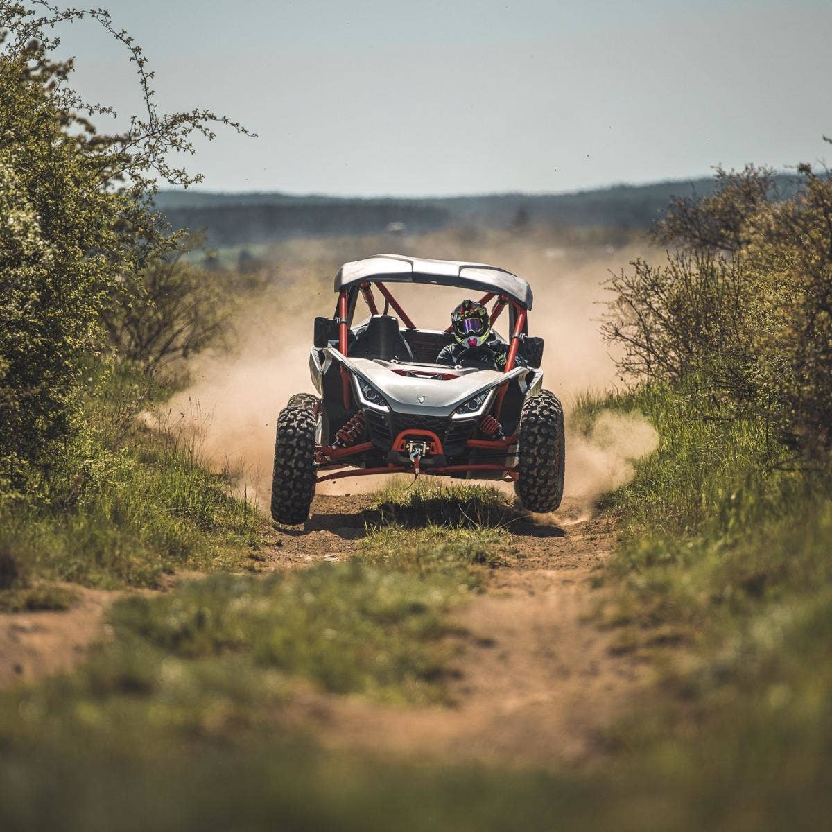 Sportovní čtyřkolka SxS T1b, čtyřtaktní dvouválec DOHC 1000 cm3 EFI, automatická převodovka P/R/N/L/H - CVT, elektrický posilovač řízení EPS, pohon 4x4 se dvěma uzamykatelnými diferenciály, dvojitá A-ramena vpředu / víceprvkové uložení s vlečenými rameny a stabilizátorem vzadu, nastavitelné hydraulické tlumiče s progresivními pružinami, elektrický naviják 4500 lbs, tažné zařízení, anatomicky tvarovaná sedadla s hlavovou opěrkou, digitální přístrojová deska, dotyková obrazovka 10,4", přední a zadní ochranné rámy, čelní ochranné plexi, pevná střecha, pevné plastové dveře, hliníkové 14" disky se systémem beadlock, 29" pneu, LED osvětlení, Smart Commanding System (SCS) + mobilní aplikace Smart-Moving App.