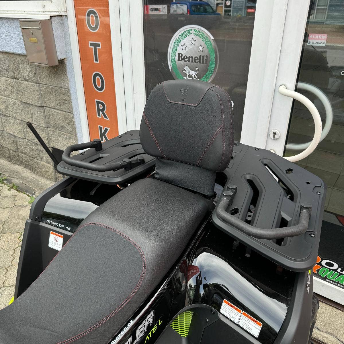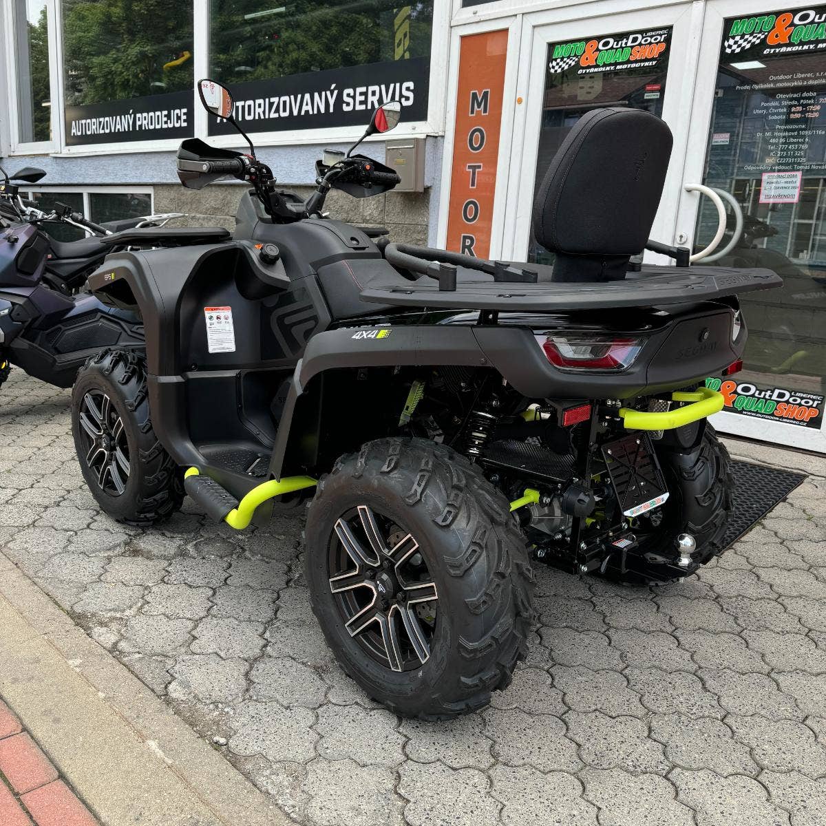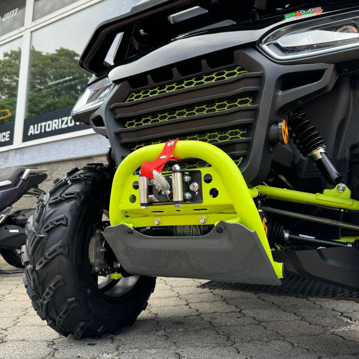 Elektrický posilovač řízení, elektrický naviják, sedadlo s opěrkou zad, tažné zařízení, kompozitní nosiče vpředu i vzadu, digitální multifunkční displej, Full-LED osvětlení, přední ochranný rám, zadní ochranný rám, boční ochranné rámy, 14" hliníkové disky, nastavitelné pérování s progresivně vinutými pružinami, ochranné kryty rukojetí