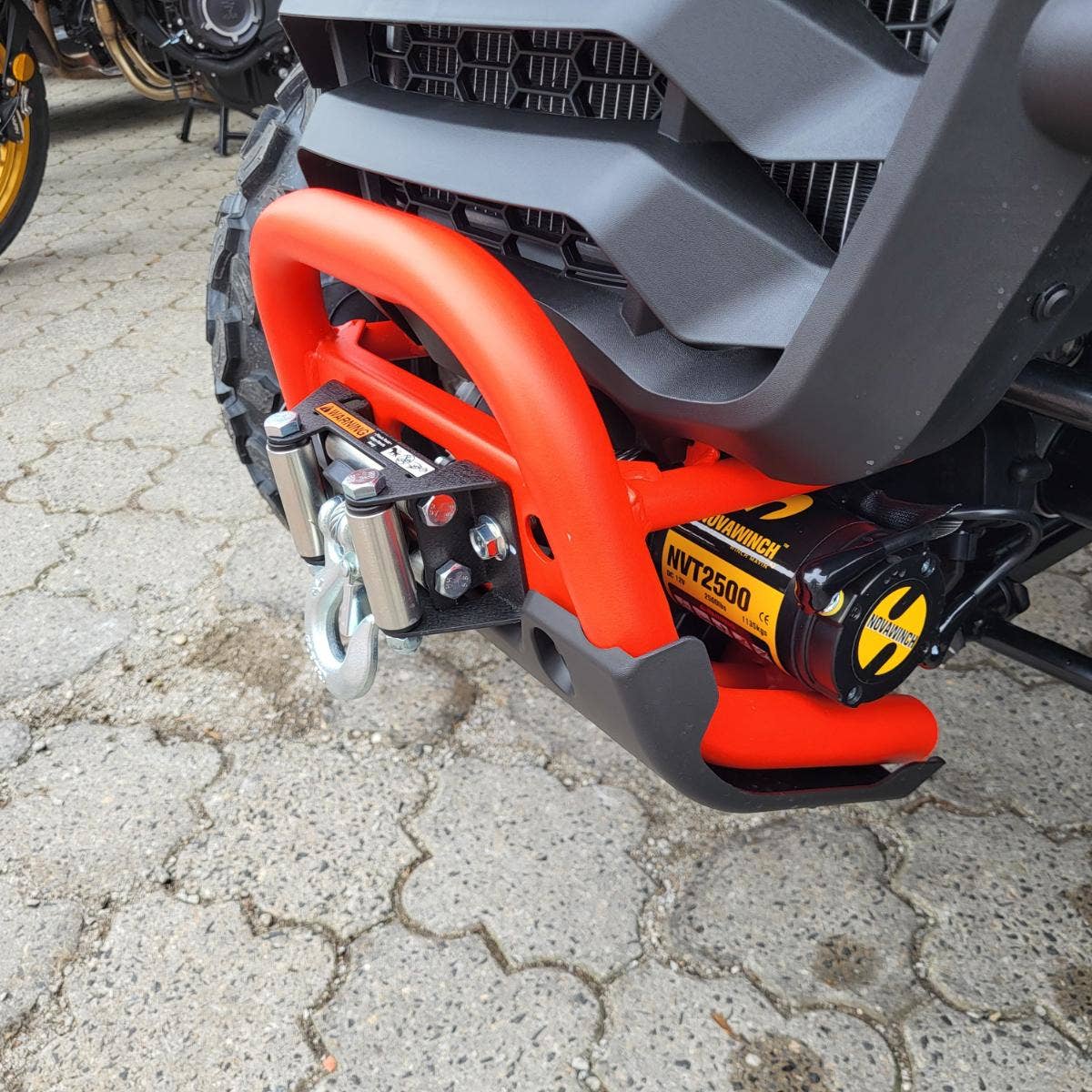 Elektrický posilovač řízení s variabilním účinkem, elektrický naviják, sedadlo spolujezdce s opěrkou zad, homologované tažné zařízení, kompozitní nosiče vpředu i vzadu, uzávěrka předního diferenciálu, digitální multifunkční displej, Full-LED osvětlení, přední ochranný rám, 12" hliníkové disky, 25" pneumatiky, hydraulické tlumiče s progresivními pružinami, nastavitelné předpětí pružin, ochranné kryty rukojetí, zpětná zrcátka.