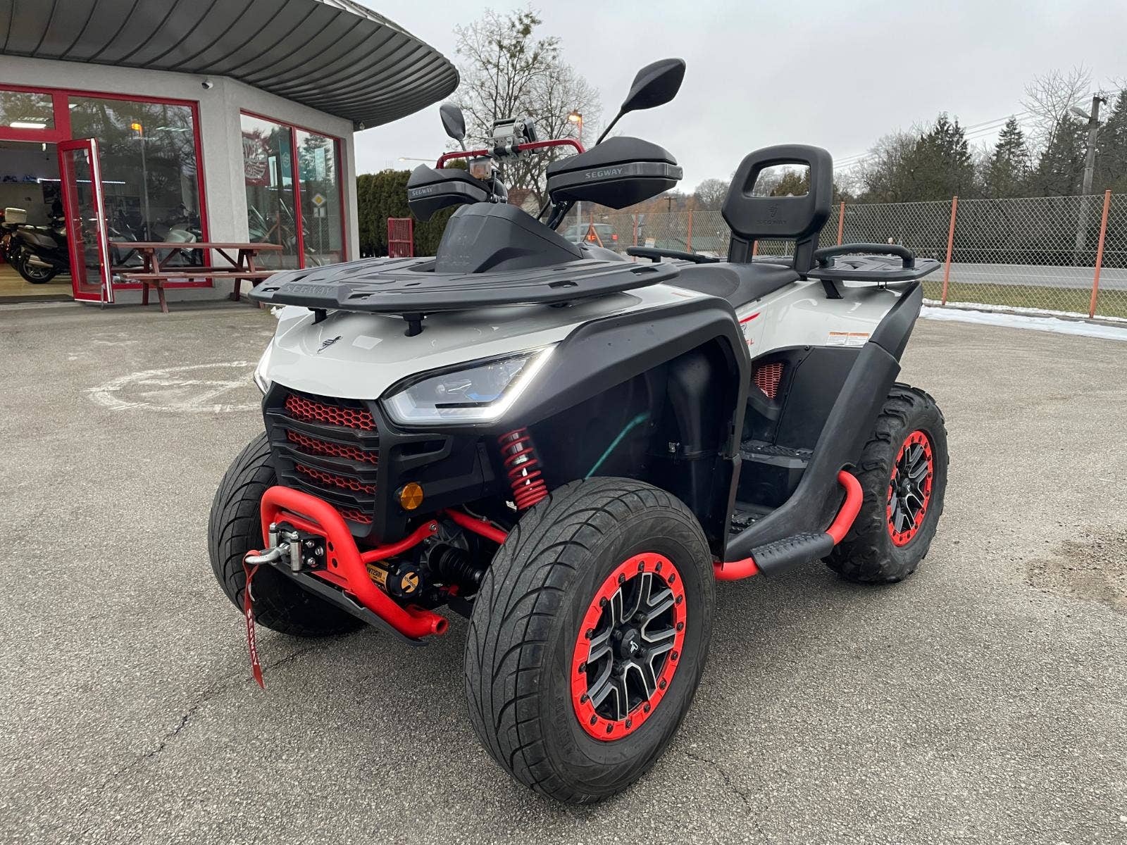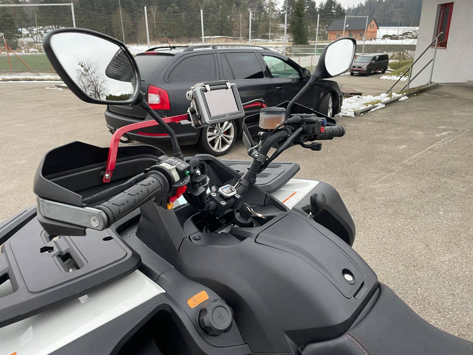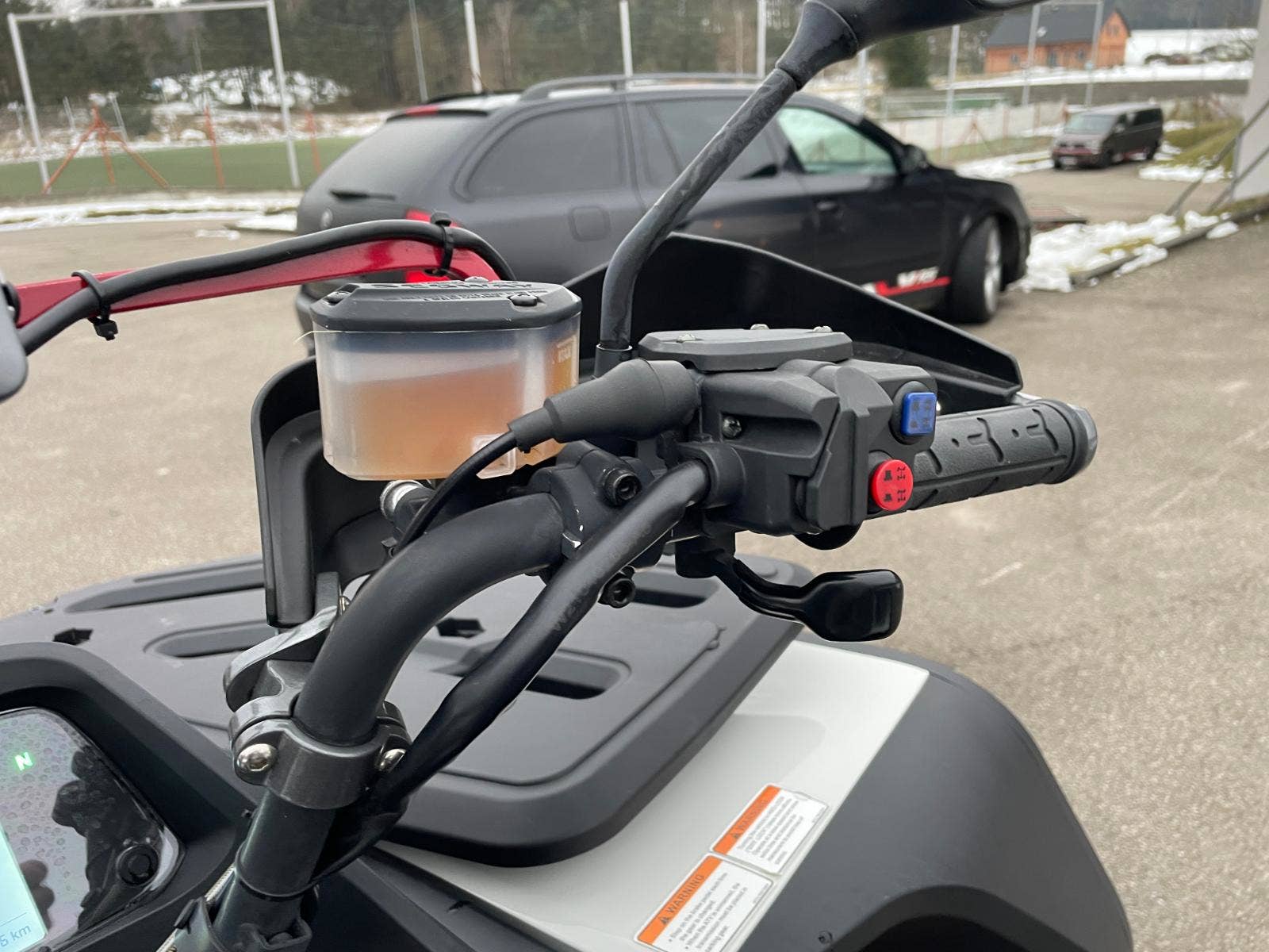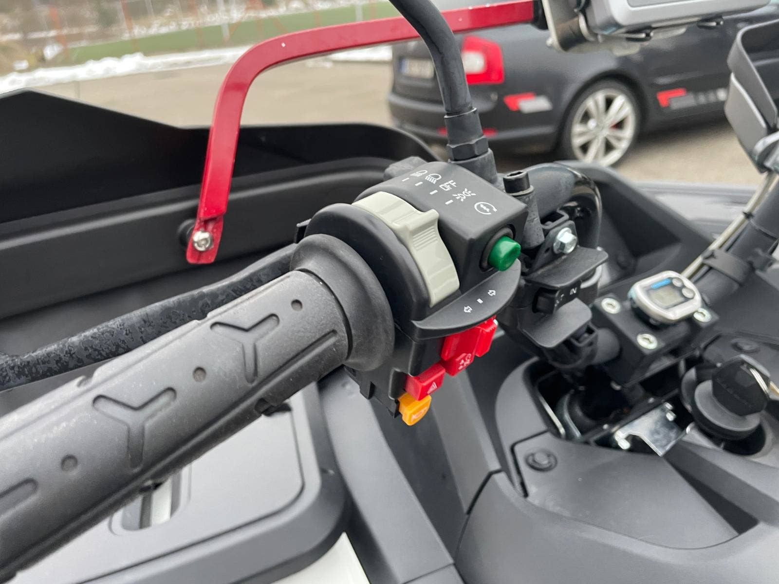 Koupena nová v ČR. 1. majitel. Servisní knížka pravidelně vedená. STK, SPZ, český TP. Prodloužená verze s posilovačem. 4x4. Uzávěrky diferenciálů. Naviják. Tažné zařízení. Čtyřkolka ježděna převážne výletnicky po silnici proto podvozek v super stavu. Proto na přední pneu silniční. Původní jsou v ceně. Navigace. Ny čtyřkolce v záruce vyměněn display za nový při stavu 6700 km proto nyní stav 6 km. Původní cena nové byla 235tis. Komisní prodej!