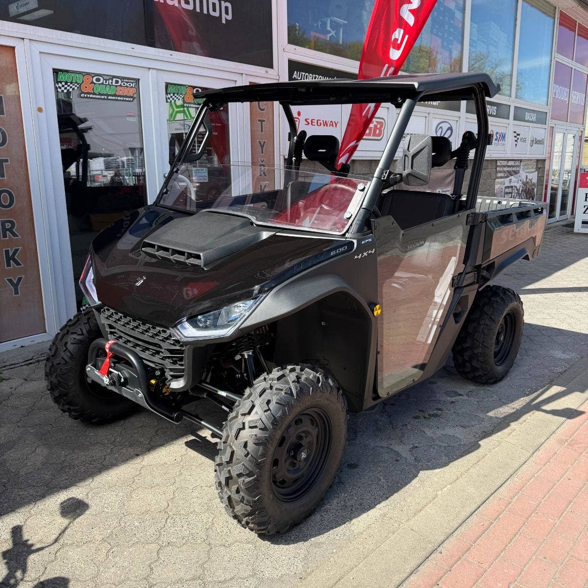 Elektrický naviják 4500 lbs, inteligentní elektrický posilovač řízení, TFT digitální přístrojová deska, tažné zařízení, nastavitelný volant, anatomicky tvarovaná sedadla s hlavovou opěrkou, tříbodové pásy, přední ochranný rám, zadní ochranný rám, bezpečnostní sítě na straně řidiče i spolujezdce, pevná střecha, velká sklopná korba, 14" disky.