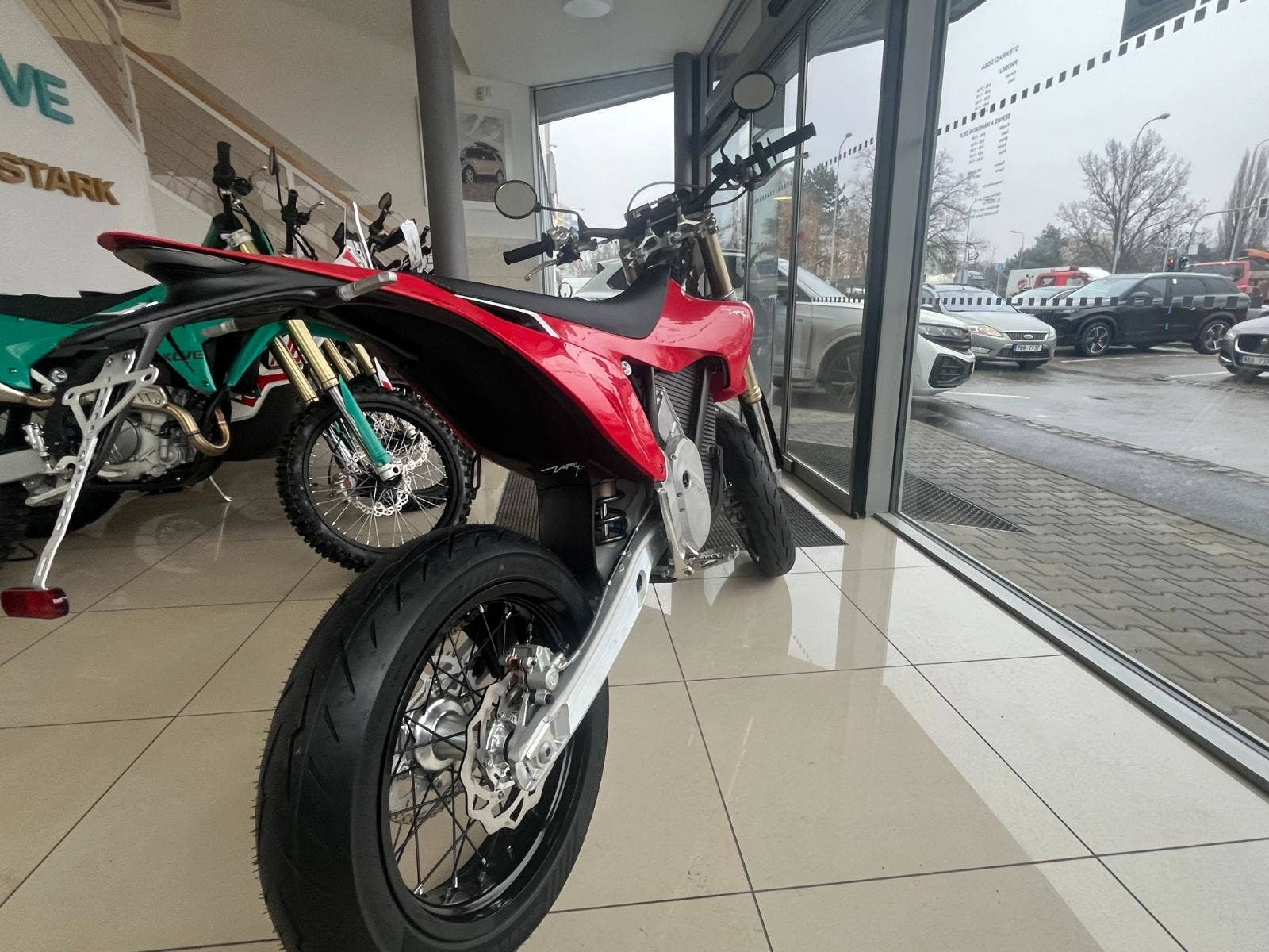 Nabíjení trvá méně než dvě hodiny pomocí kompaktní přenosné nabíječky Stark s výkonem 3,3 kW, která se vejde do batohu a zapojí se do jakékoli domácí zásuvky nebo autonabíječky.