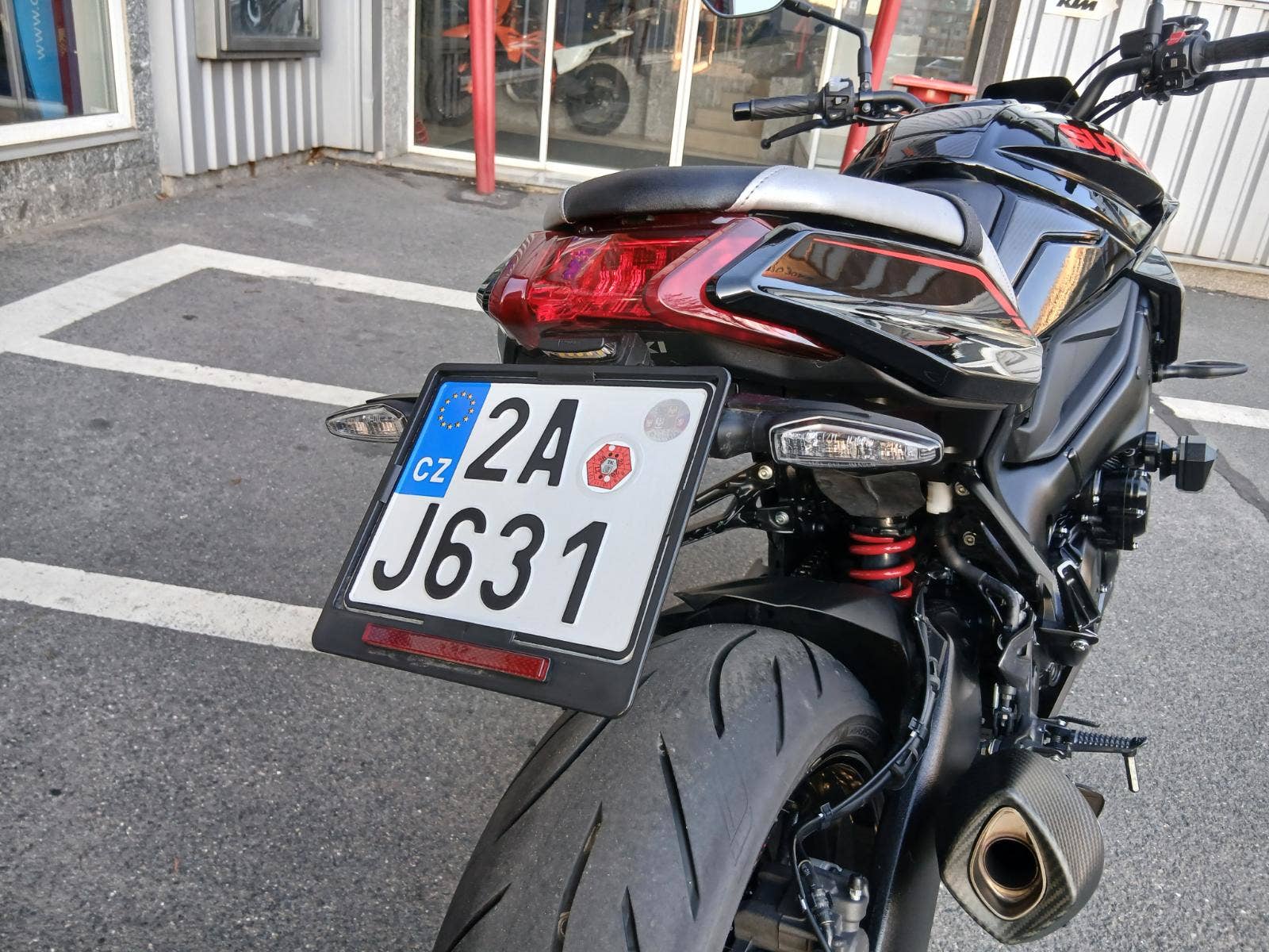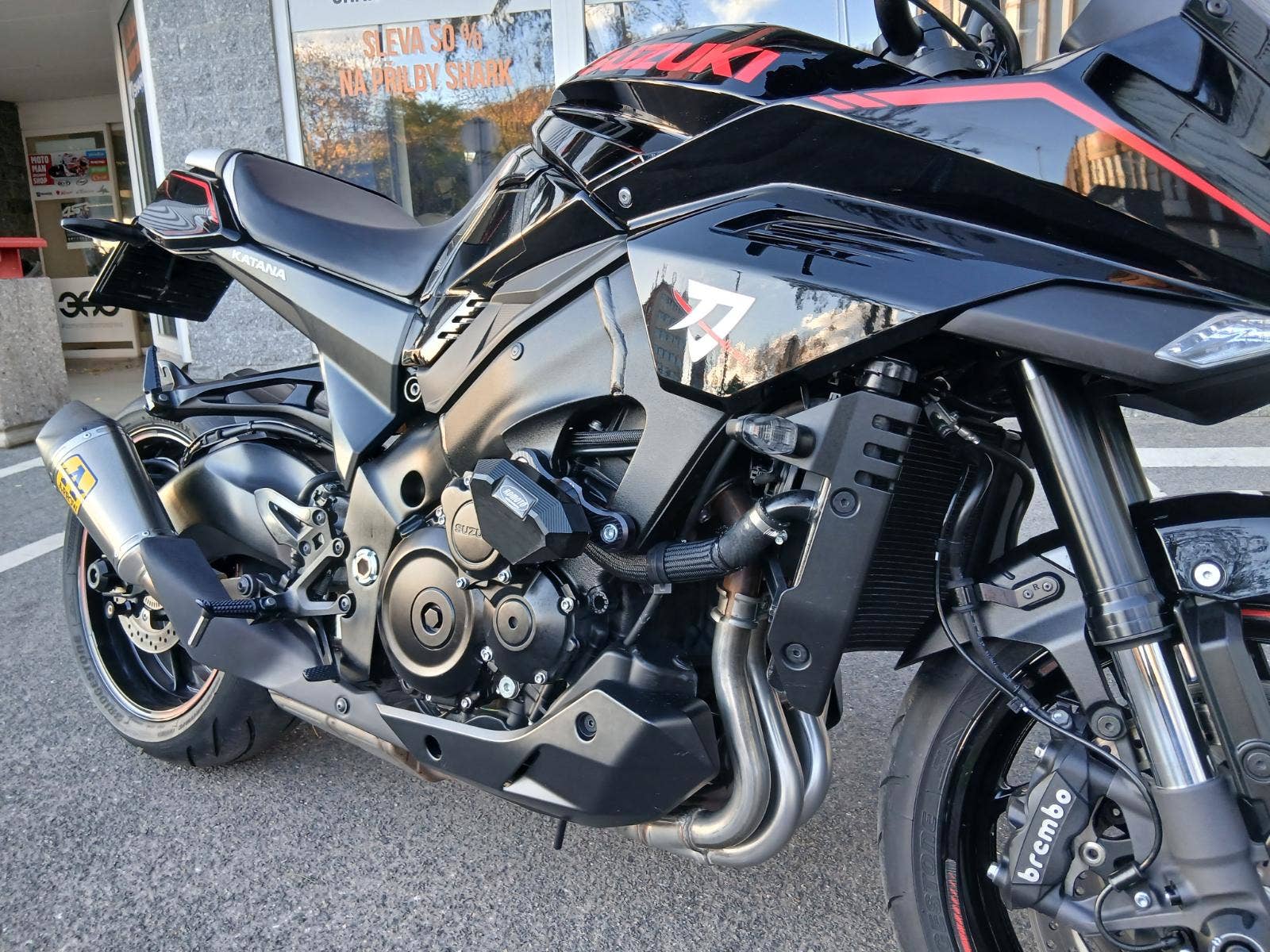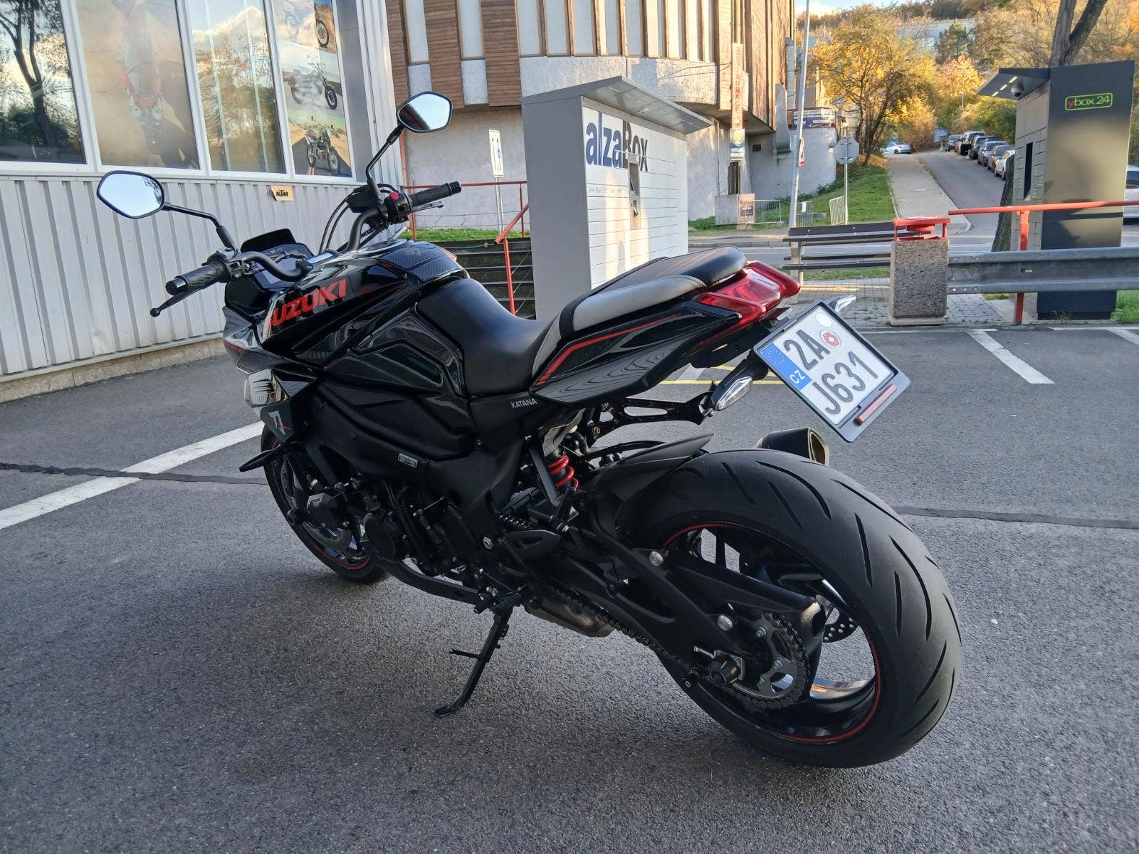 Nabízíme na prodej krásnou Katanu, v perfektním stavu. Koupená nová v naší prodejně, dva majitelé, servisní historie vedená. Kompletní dokumentace, bohatá nadstandardní výbava. Padací protektory RDMoto (rám, osy obou kol), výfuk Arrow s vyjímatelnou homologační vložkou, držák RZ na podsedlovce. Původní blatník nad zadní kolo je k motorce také, originální výfuk také.