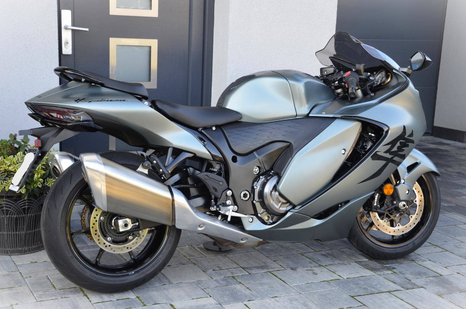 Suzuki GSX 1300 R Hayabusa zakoupena nová 2025 v ČR, první majitel - najeto pouze 2.400 km!!! Motocykl s doloženou servisní knihou, bez sebemenšího poškození - v podstatě jako nový. Královský ikonický model stíhacího jednostopého letounu určeného pro velmi omezenou skupinu odvážlivců je Vám nyní k dispozici i u nás. Jízdní režimy Suzuki Alpha (SDMS-α) s výběrem tří továrních přednastavení a tří uživatelem definovatelných režimů. Systém kontroly trakce Motion Track (10 režimů + VYPNUTO), Volič provozních režimů (tři režimy), Obousměrný systém rychlého řazení (dva režimy + VYPNUTO), Systém řízení motorové brzdy ( tři režimy + VYPNUTO), Aktivní omezovač rychlosti, Systém startování (tři režimy), Signál nouzového zastavení, Systém snadného startu Suzuki, Asistent nízkých otáček, Tempomat, Kombinovaný brzdový systém, Brzdový systém Motion Track, Asistent rozjezdu do kopce atd… Možný protiúčet Vašim stávajícím strojem. Dopravu po dohodě zajistíme. Cena 369.000 Kč. Odpočet DPH - ne.