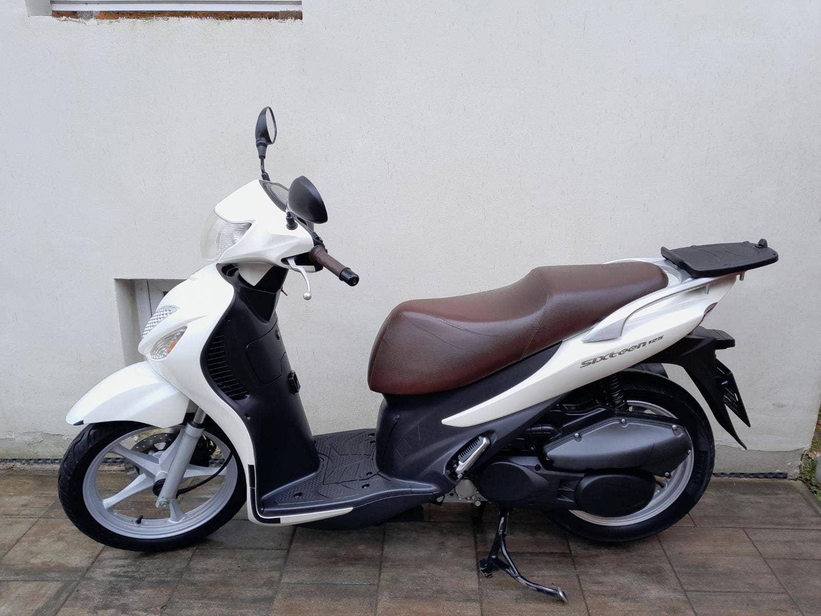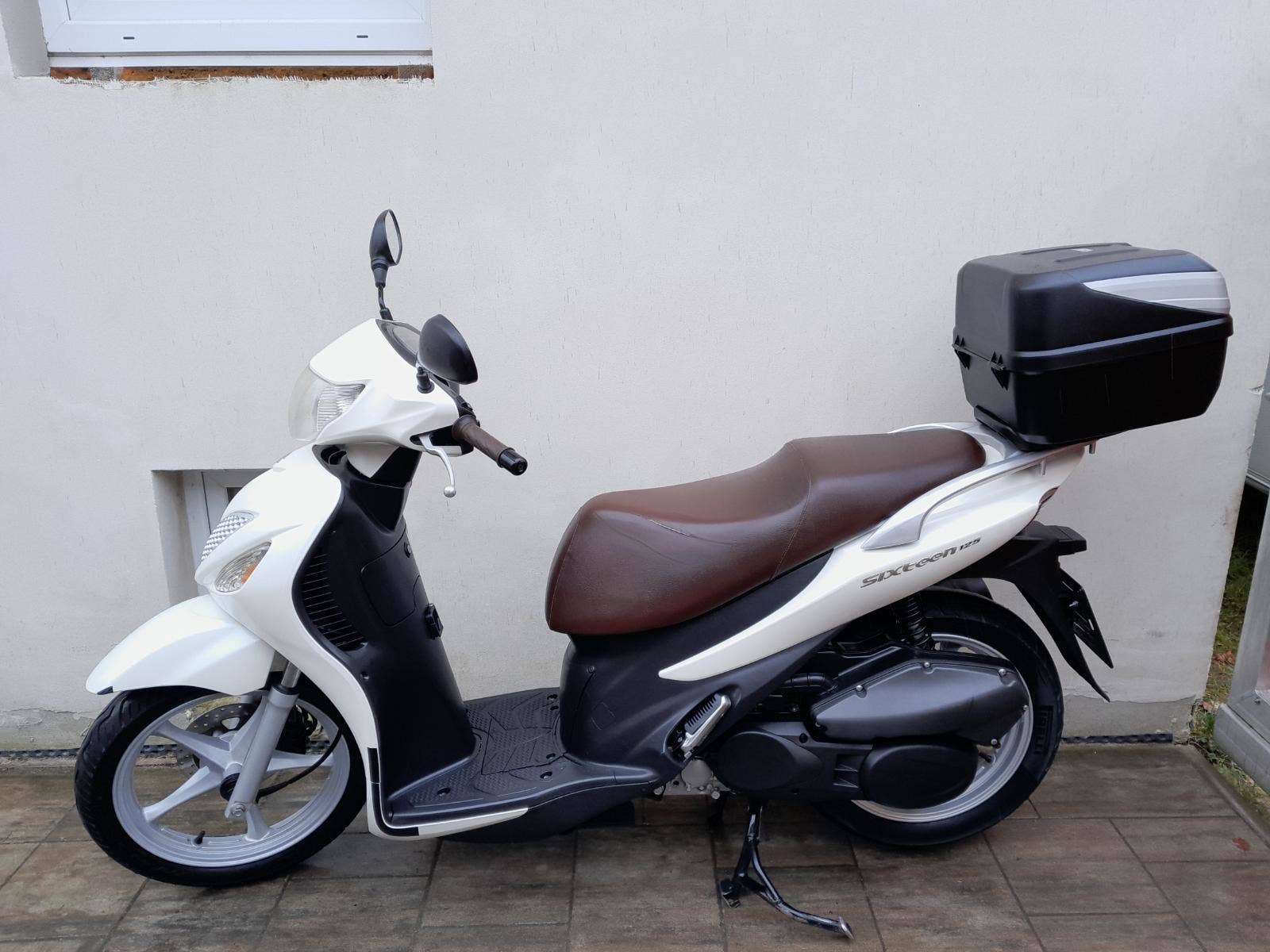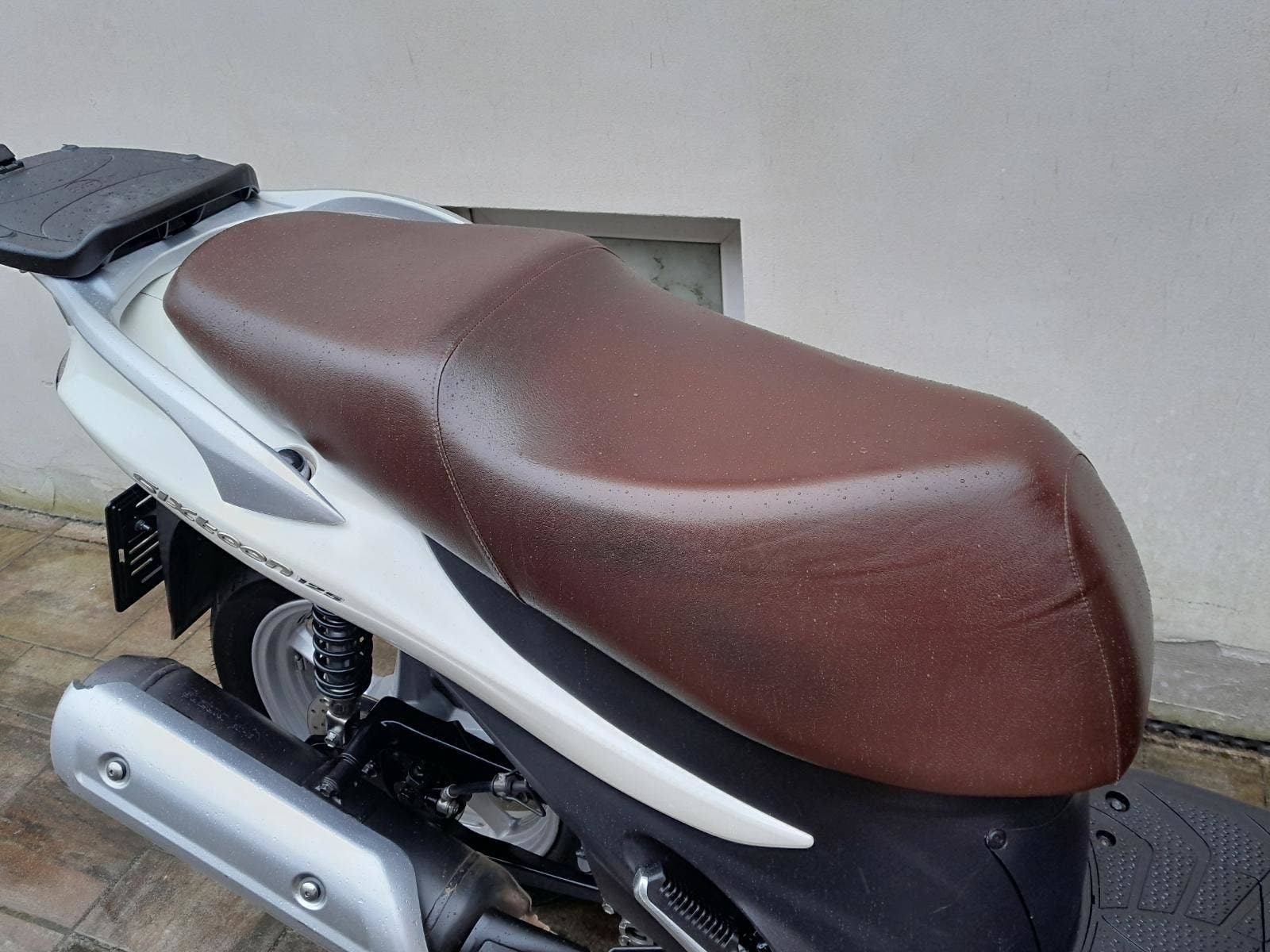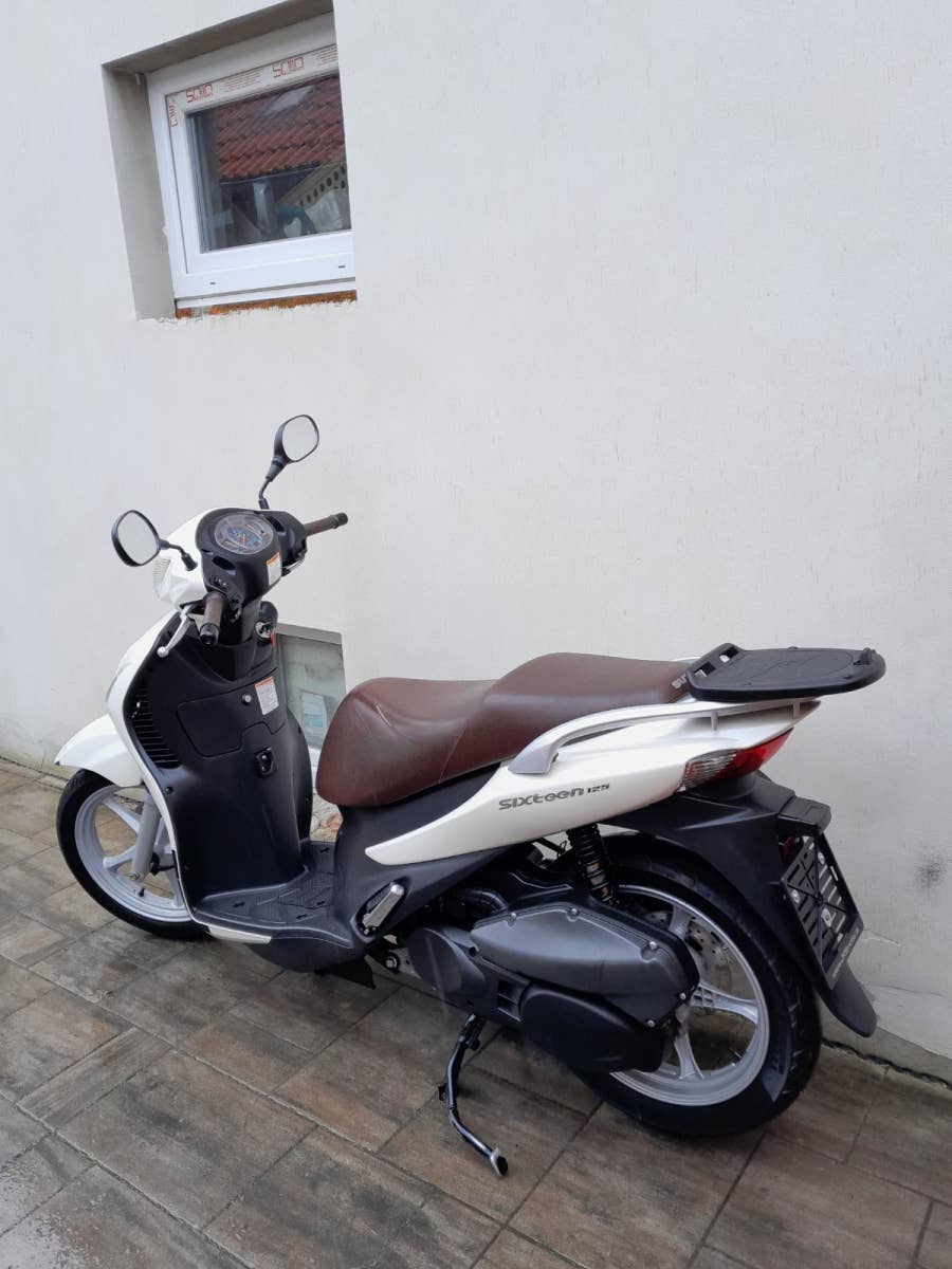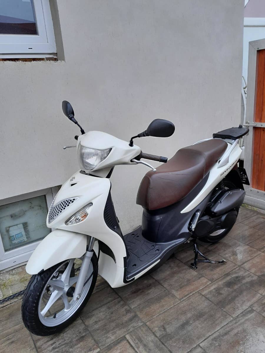 Moc pěkný skútr ve velmi dobrém stavu. Nebyl havarovany, podvozek bez koroze, oxidace apod., původní pěkný lak. Dovoz z Itálie, skútr byl garážovaný a nejezdil u moře. Podobný jako Honda SH 125. Nízká spotřeba, max. rychlost přes 100km/h. Po výměně motorového oleje. Uvedená cena je bez doplňkového kufru, možno přikoupit. Na skútru je poškozený potah sedla, v ceně sedlo jiné, nepoškozené - není na fotce.