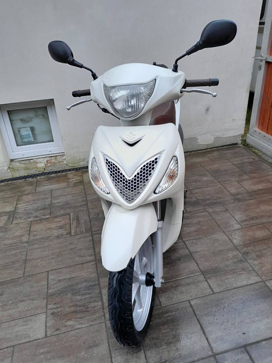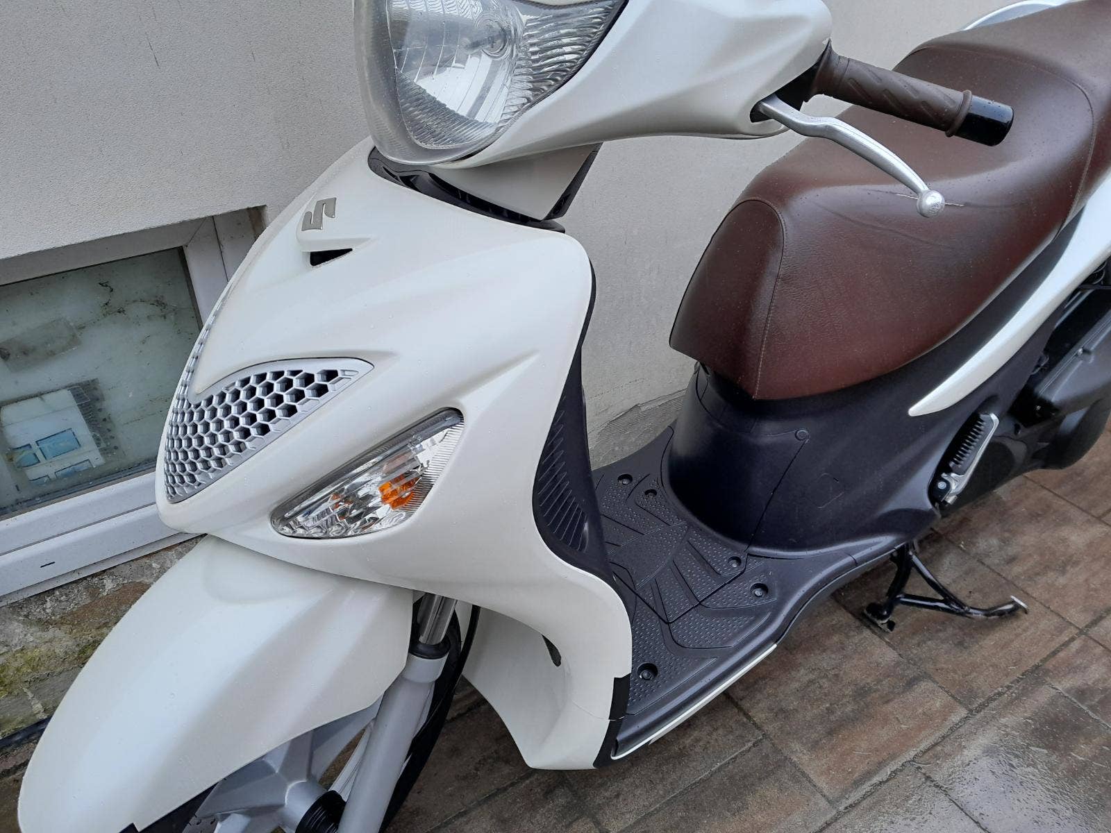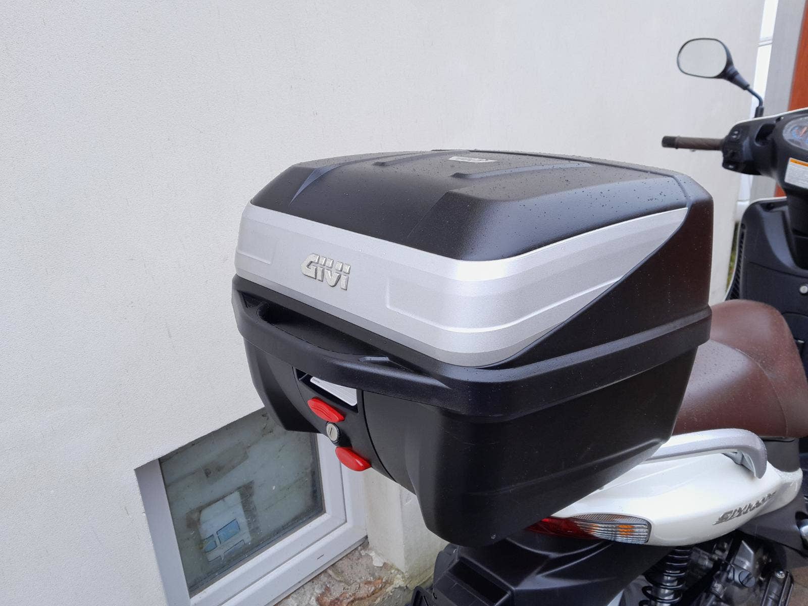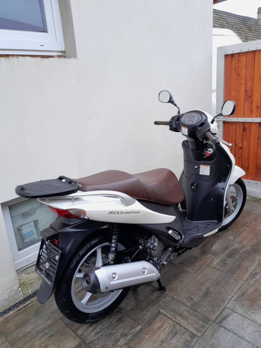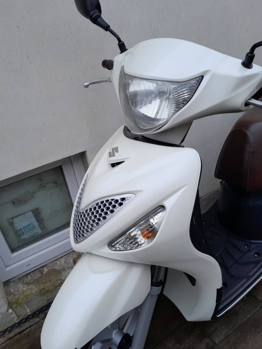 Moc pěkný skútr ve velmi dobrém stavu. Nebyl havarovany, podvozek bez koroze, oxidace apod., původní pěkný lak. Dovoz z Itálie, skútr byl garážovaný a nejezdil u moře. Podobný jako Honda SH 125. Nízká spotřeba, max. rychlost přes 100km/h. Po výměně motorového oleje. Uvedená cena je bez doplňkového kufru, možno přikoupit. Na skútru je poškozený potah sedla, v ceně sedlo jiné, nepoškozené - není na fotce.