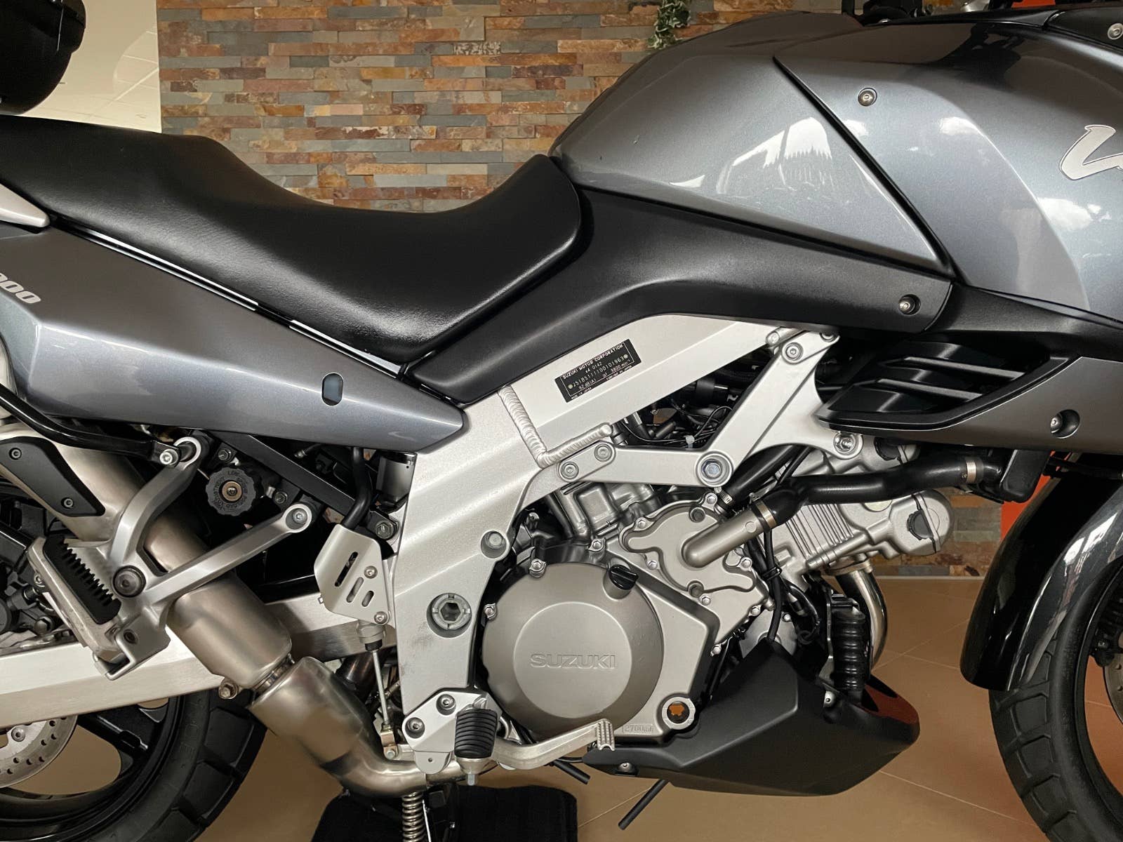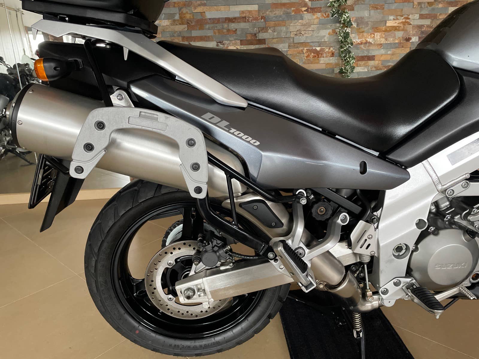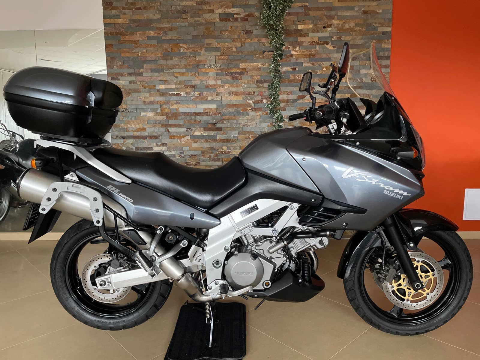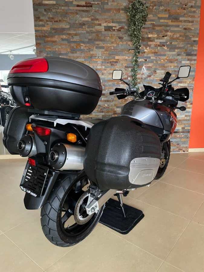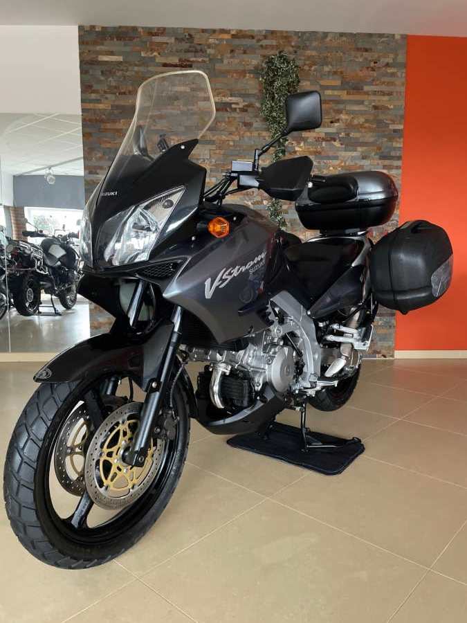 Suzuki DL 1000 V-Strom, šedá metalíza, r.v. 2003, 72 kW, 35tkm, 1 majitel (63 let) za celou dobu provozu od nového! Plná servisní historie od nového do současnosti! Koupeno přímo od 1. majitele v Německu ve stavu jak vidíte na fotografiích. V ČR čeká na 1. majitele. Nehavarované, nelakované, nijak neopravované, vše v původním originálním stavu! Technicky i opticky v perfektním stavu! Výbava: zadní originální kufr Suzuki v barvě s držákem, boční kufry Krauser s držáky, vyšší plexi Suzuki, automatické mazání řetězu Scottoiler, kryt motoru a ruček, držák navigace. Po dohodě možno laděné výfuky LeoVince. Technický stav: gumy, baterie, řetězová sada, atd v pořádku. Doklady: všechny doklady na přihlášení, serviska, všechny TÜV/STK protokoly od nového do současnosti, všechny faktury ze serv. prohlídek, manuál, 2 klíče. Další info možno po telefonu. Velmi zachovalý a udržovaný motocykl v perfektním stavu!
