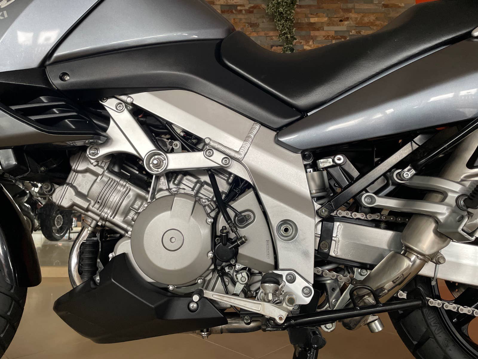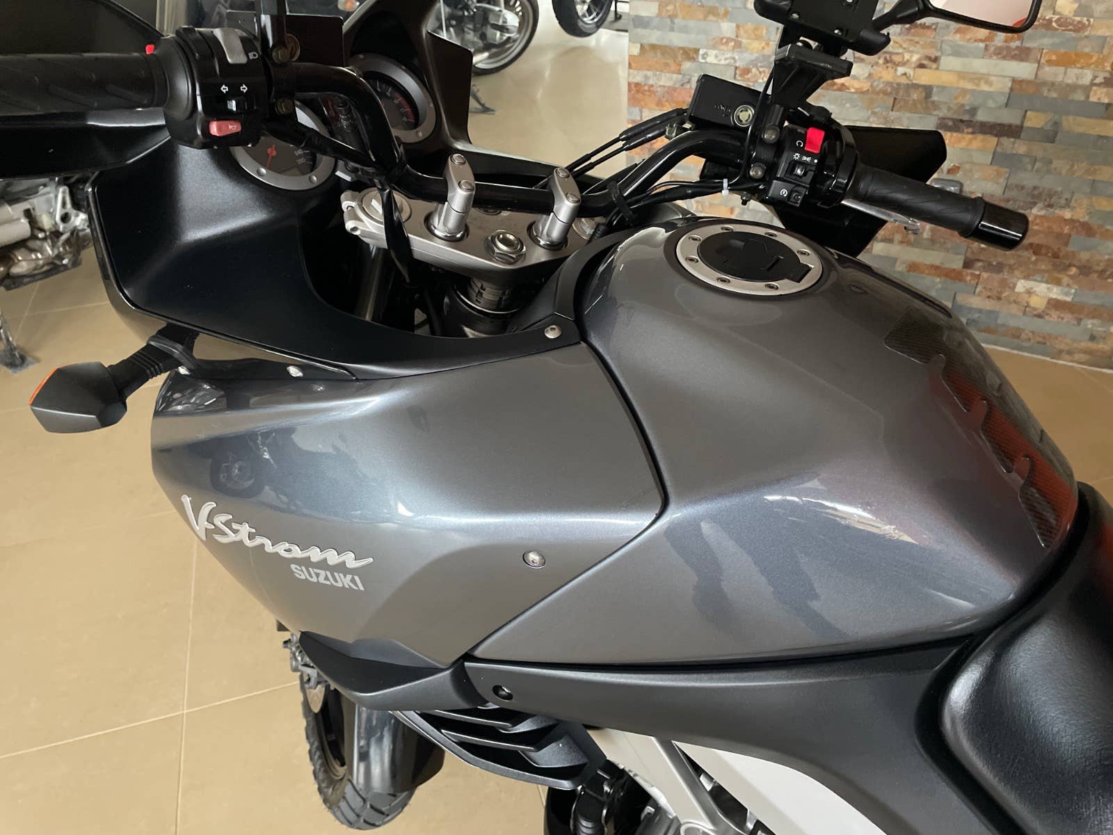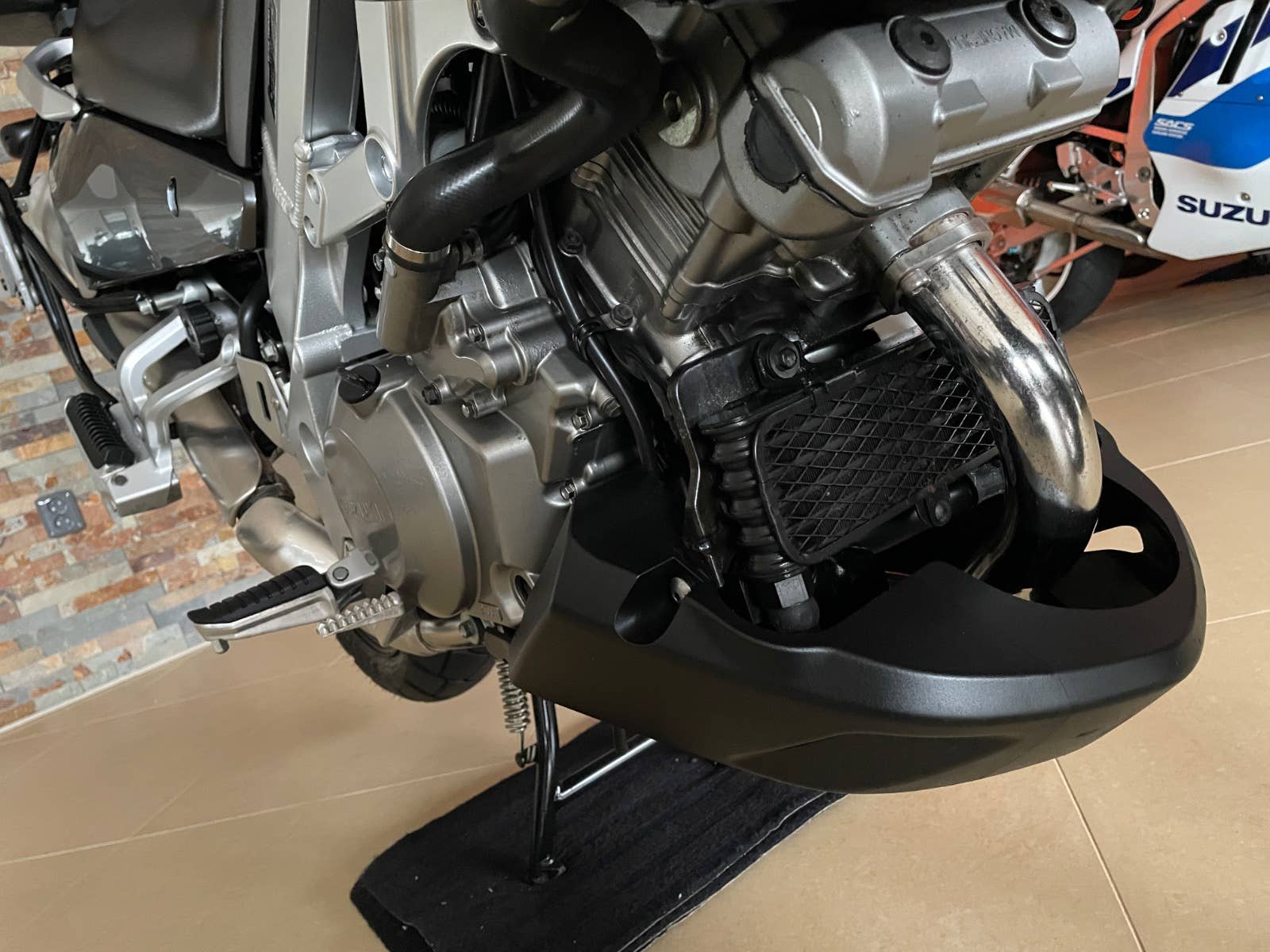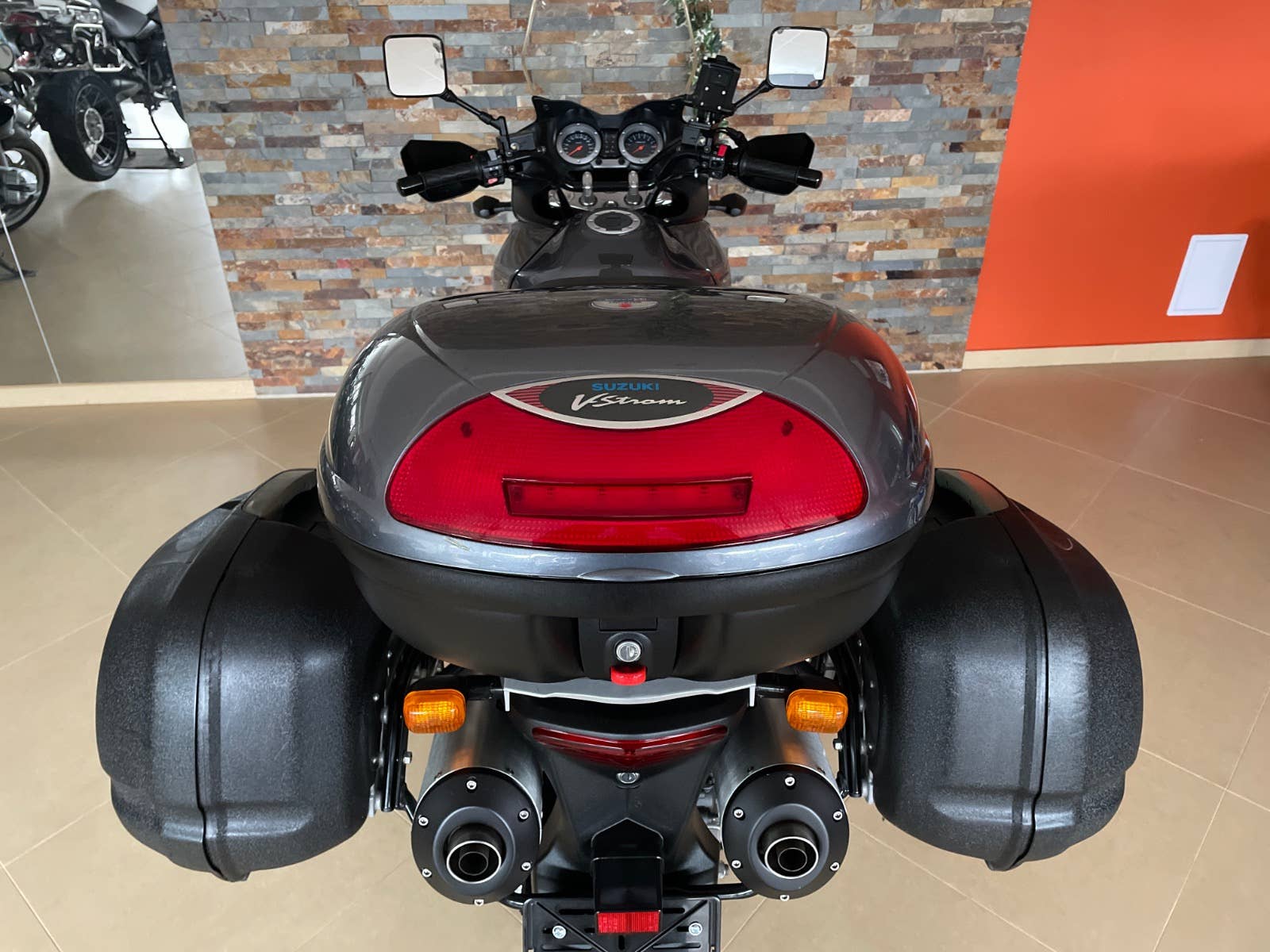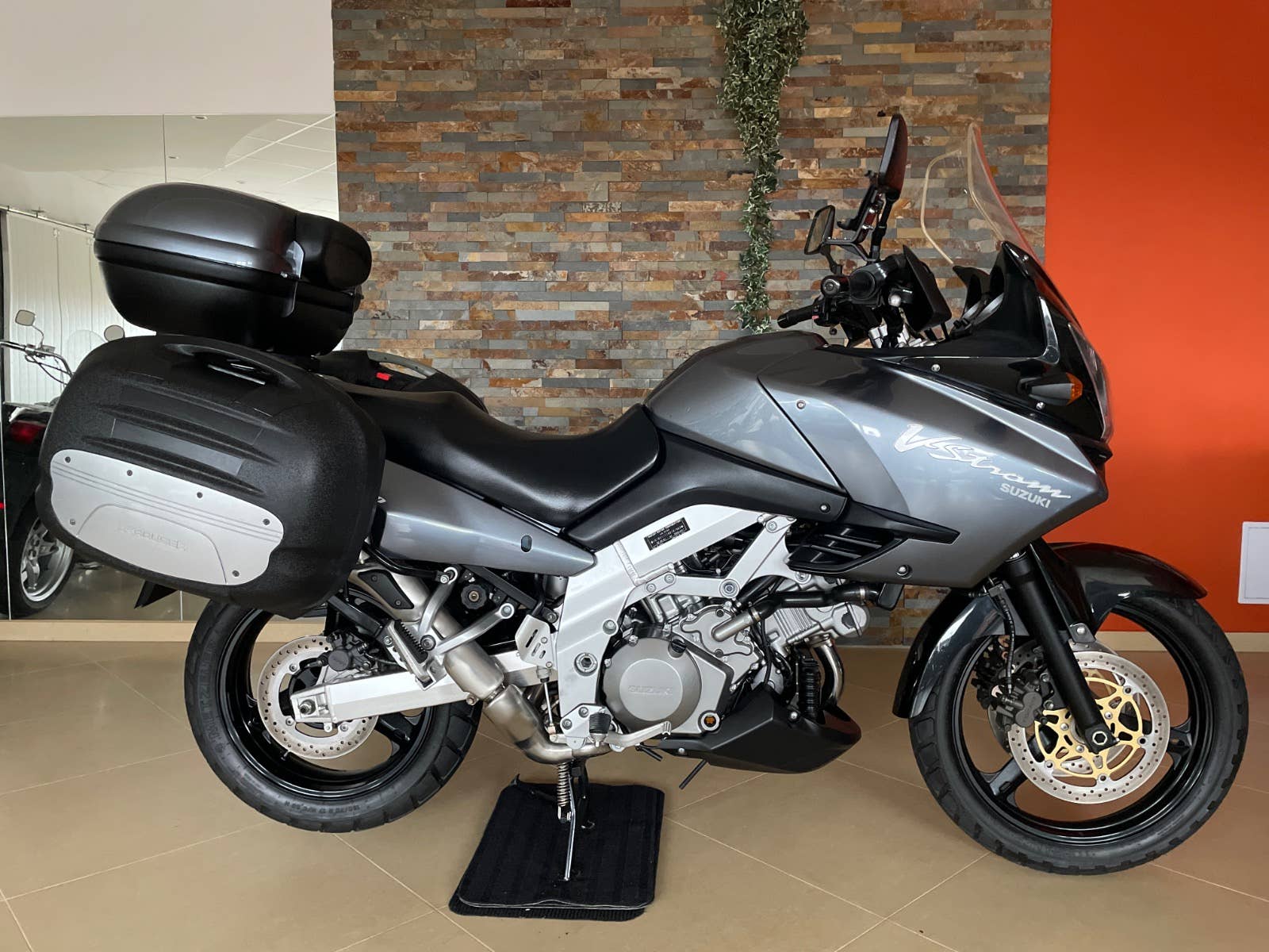Suzuki DL 1000 V-Strom, šedá metalíza, r.v. 2003, 72 kW, 35tkm, 1 majitel (63 let) za celou dobu provozu od nového! Plná servisní historie od nového do současnosti! Koupeno přímo od 1. majitele v Německu ve stavu jak vidíte na fotografiích. V ČR čeká na 1. majitele. Nehavarované, nelakované, nijak neopravované, vše v původním originálním stavu! Technicky i opticky v perfektním stavu! Výbava: zadní originální kufr Suzuki v barvě s držákem, boční kufry Krauser s držáky, vyšší plexi Suzuki, automatické mazání řetězu Scottoiler, kryt motoru a ruček, držák navigace. Po dohodě možno laděné výfuky LeoVince. Technický stav: gumy, baterie, řetězová sada, atd v pořádku. Doklady: všechny doklady na přihlášení, serviska, všechny TÜV/STK protokoly od nového do současnosti, všechny faktury ze serv. prohlídek, manuál, 2 klíče. Další info možno po telefonu. Velmi zachovalý a udržovaný motocykl v perfektním stavu!