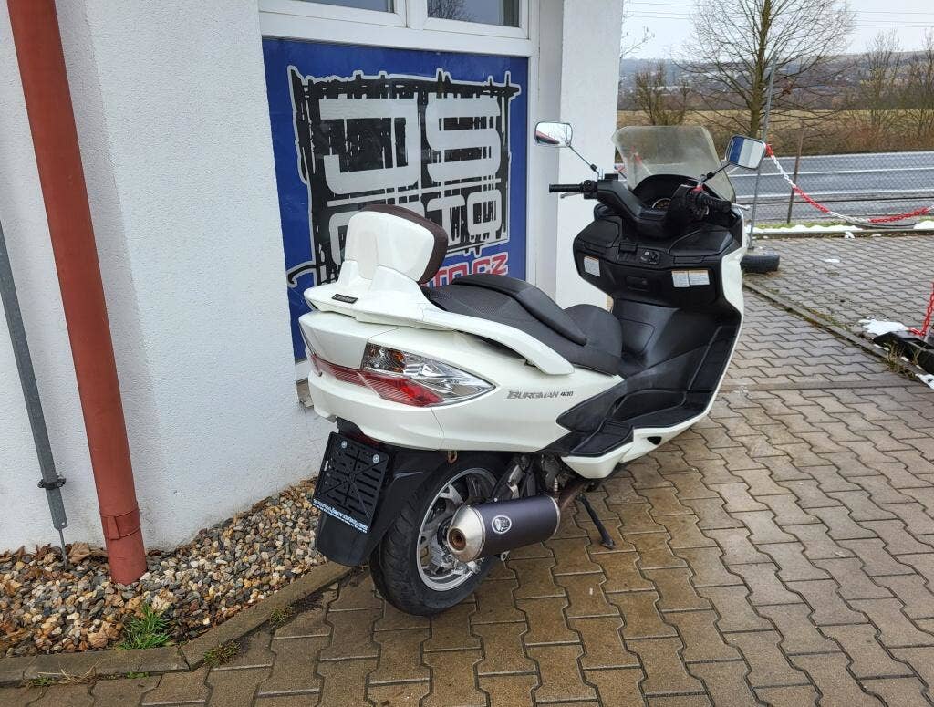 Prodám Suzuki Burgman 400, nový model K10, české doklady, STK do 12/2026, najeto 36000 km, VIN: JS1CG111100141132, nové náplně, laděný výfuk, pěkné pneu, připraveno na sezonu. Možnost splátek, pouze osobní odběr