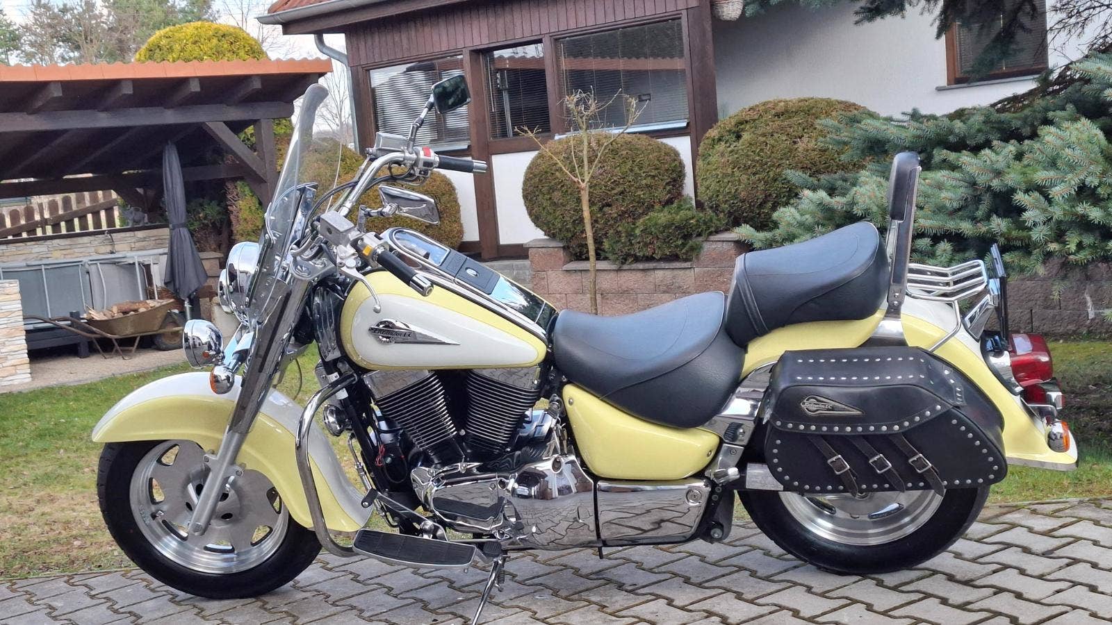 Velmi zachovalý, pěkný a vybavený motocykl dovezený z Rakouska (majitel 58 let). Výbava: vysoké plexi s chromovaným rámem, rampa s přídavnými světly, zásuvka na 12V, chromované lemy blatníků, padací rámy, chromovaný nosič + kožené brašny Suzuki Intruder, opěrka, nosič, pancířové brzdové hadice, chromované deflektory u předních vidlic. Rakouský originál TP + 2x malý TP s odhláškami. Kilometry doloženy protokolem z rakouské STK. Poslední prohlídka byla 24.06. 2025 při stavu 51.592 km s výsledkem "Bez závad". Jde o prohlídky, kde se mimo jiné, měří i emise, bod varu brzdové kapaliny apod.