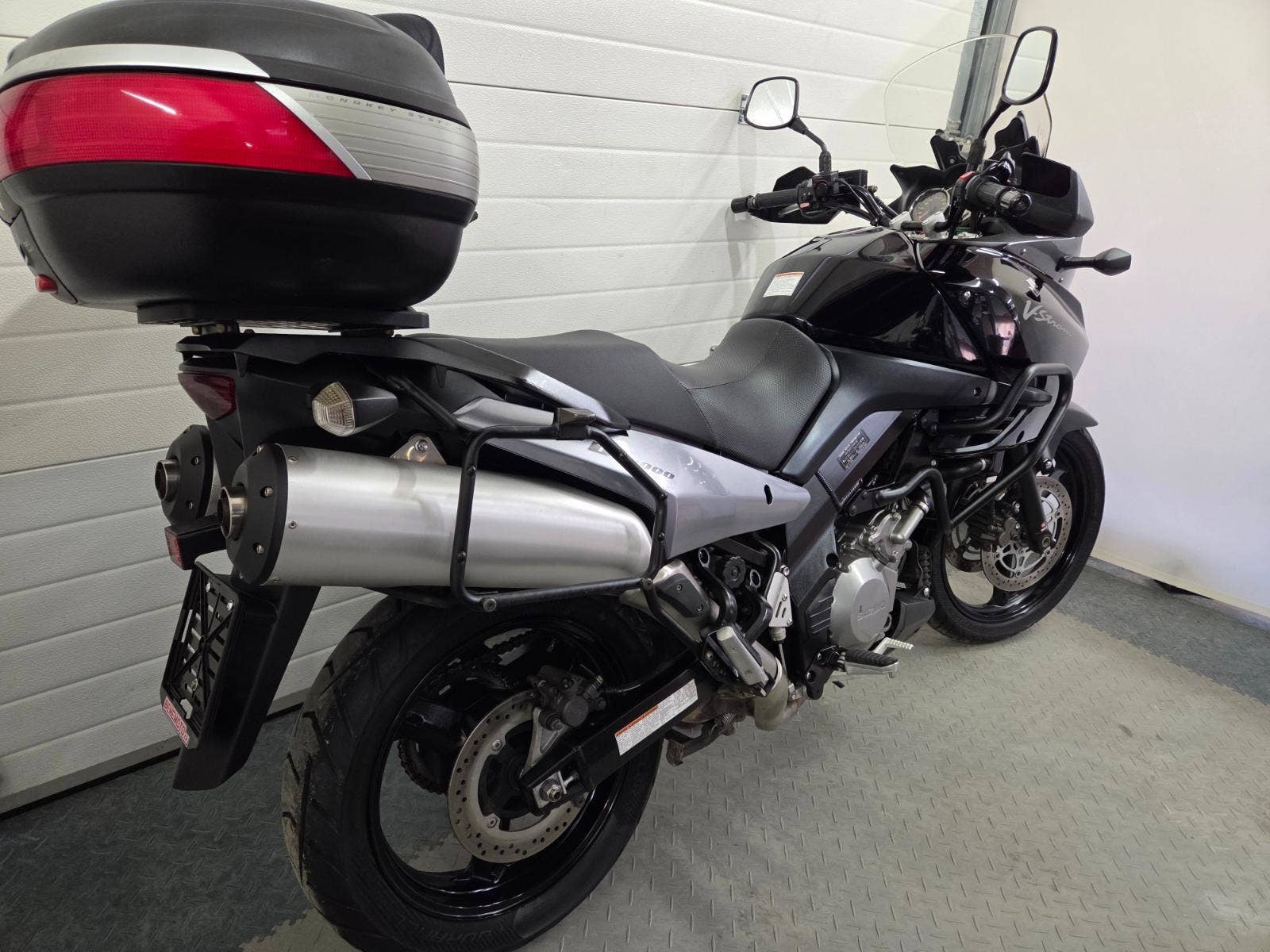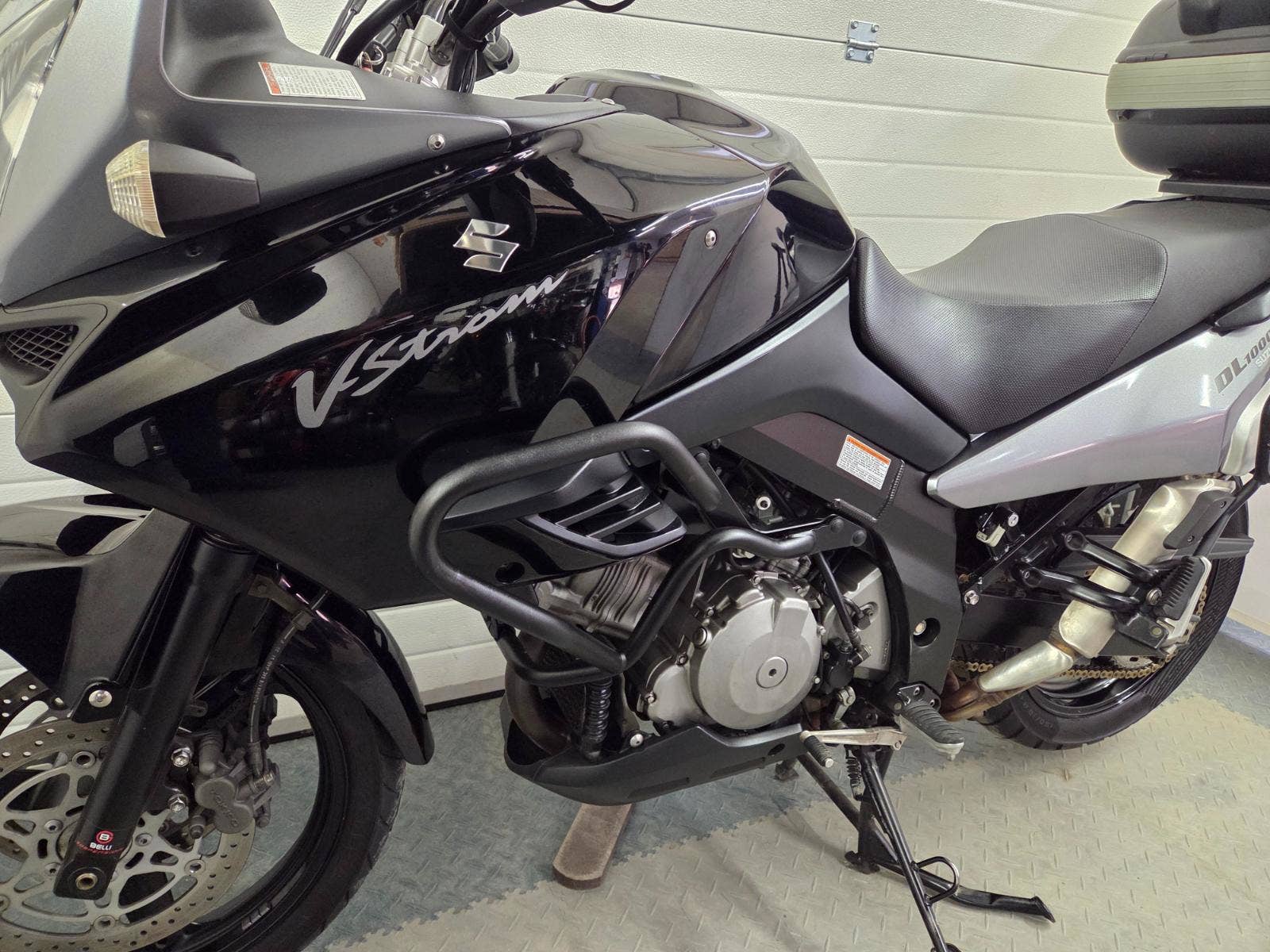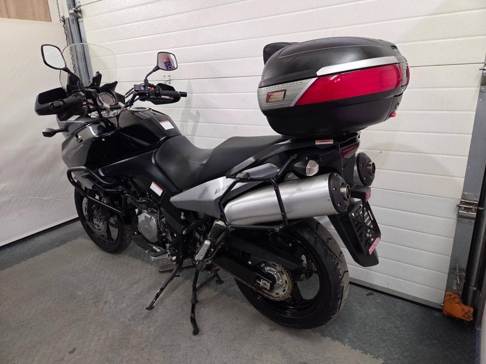 velká výbava: padací rám, centrální stojan, 3x kufr Givi, zásuvka, výhřev rukojetí
