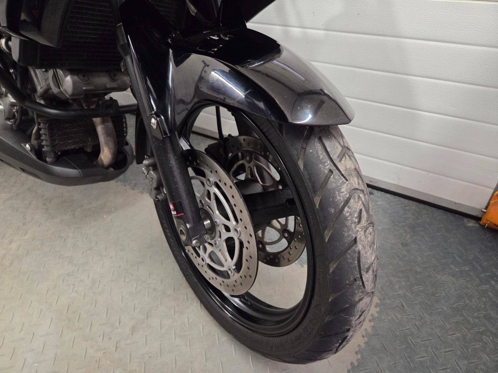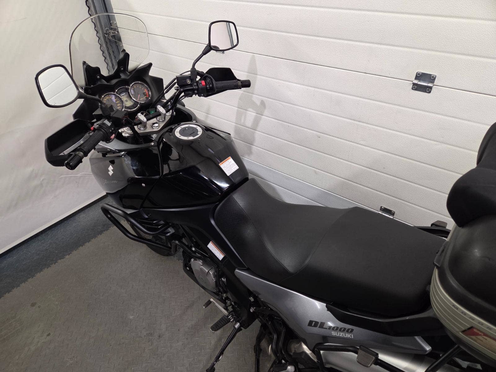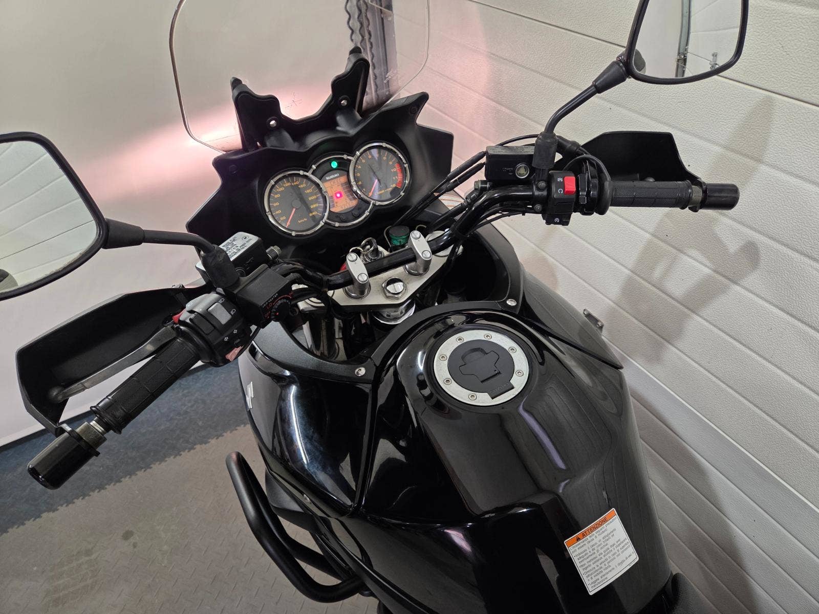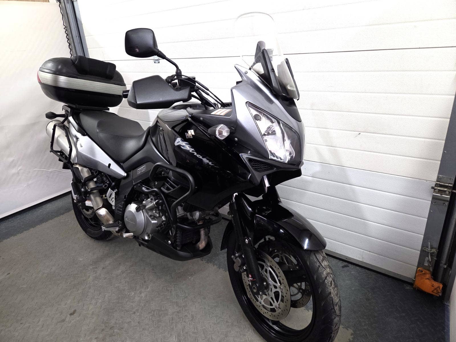 velká výbava: padací rám, centrální stojan, 3x kufr Givi, zásuvka, výhřev rukojetí