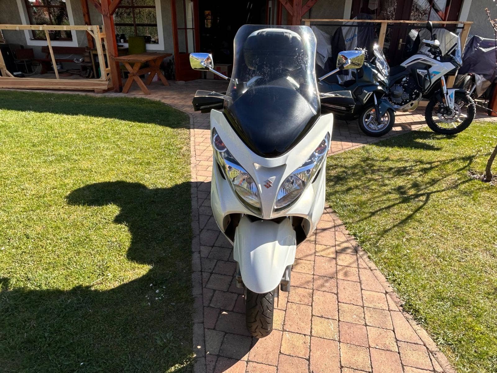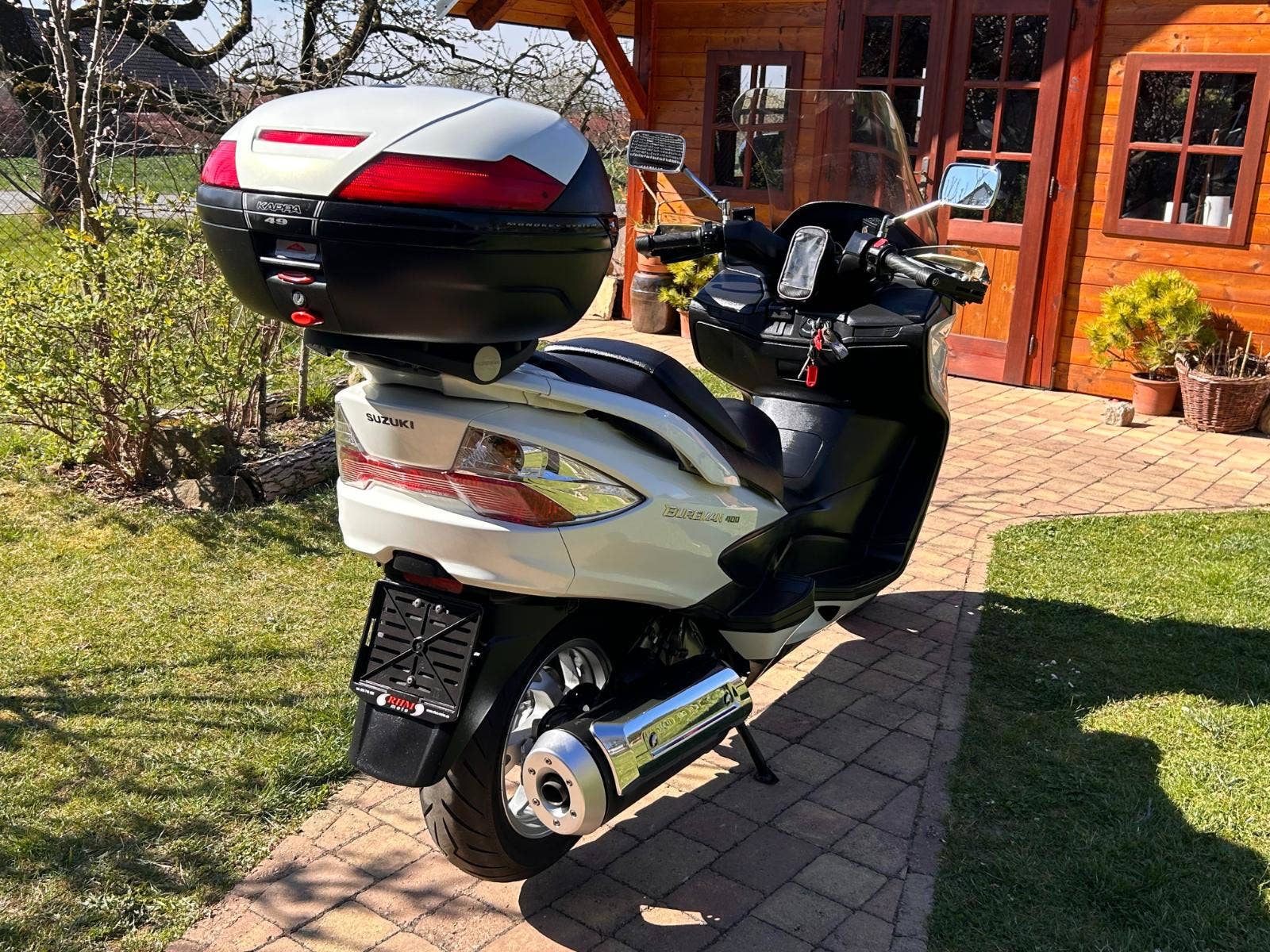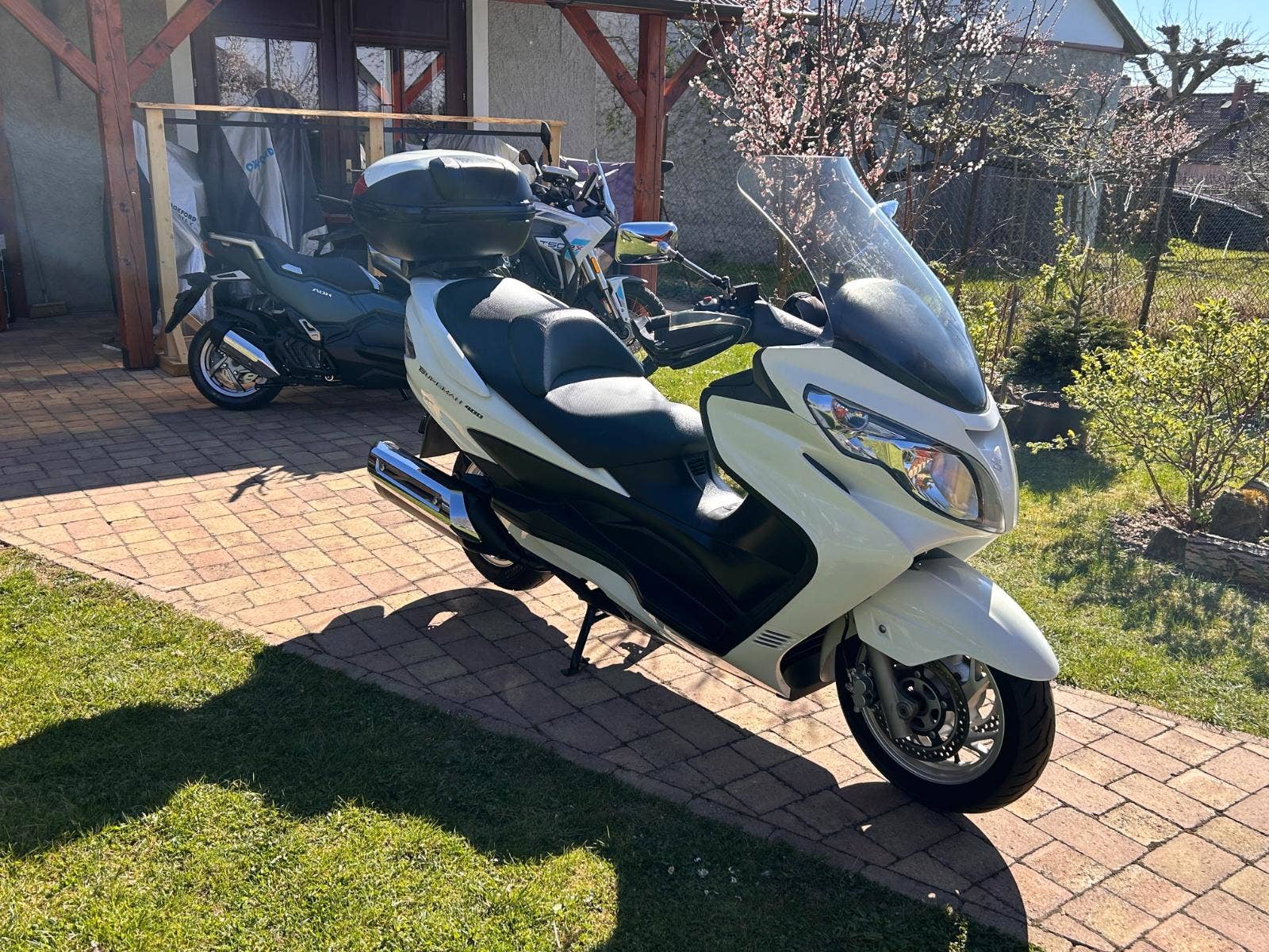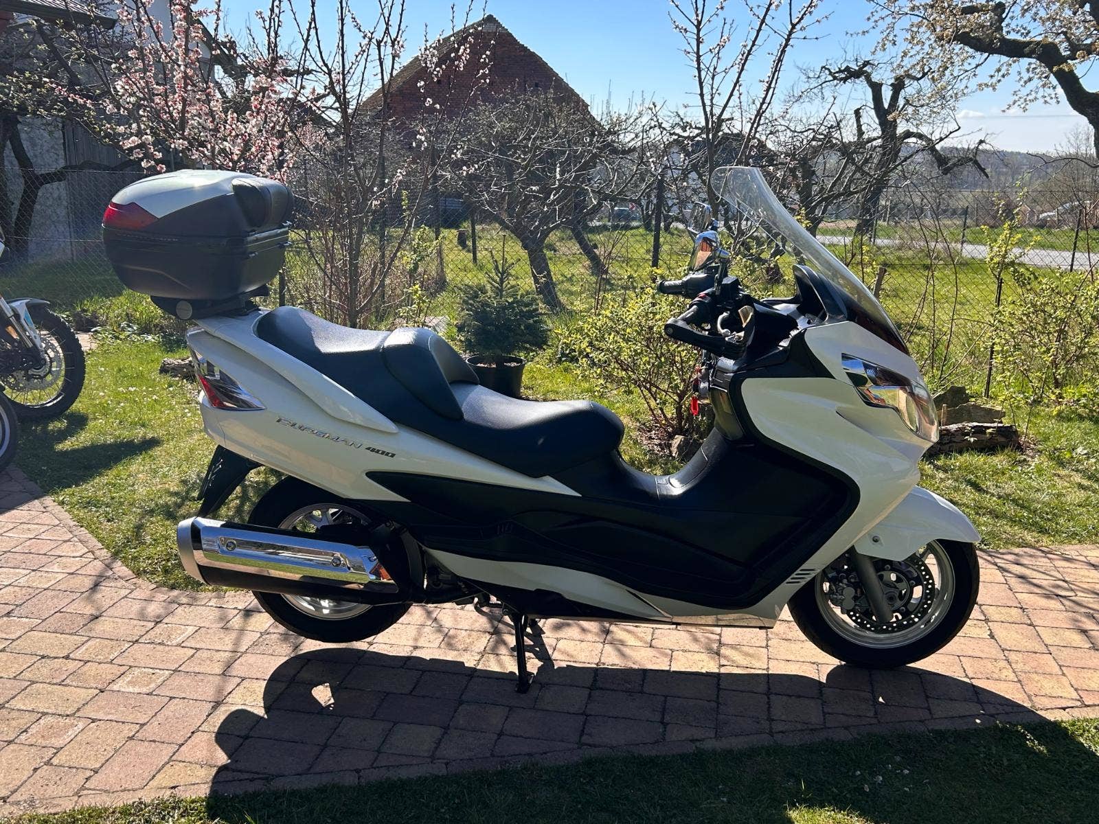 Nabízíme Suzuki AN400 Burgman v krásném, originálním stavu, pouze zalakované oděrky hrany kapotáže a podlahy. Praktický a elegantní, 4taktní jednoválcový motor, chlazený kapalinou. Hodí se jak na jízdu po městě, tak i na dlouhé výlety. Dovoz z Itálie. Nyní po servisu u nás a kontrole variátoru (v pořádku, řemen min na dalších 10 tis km).