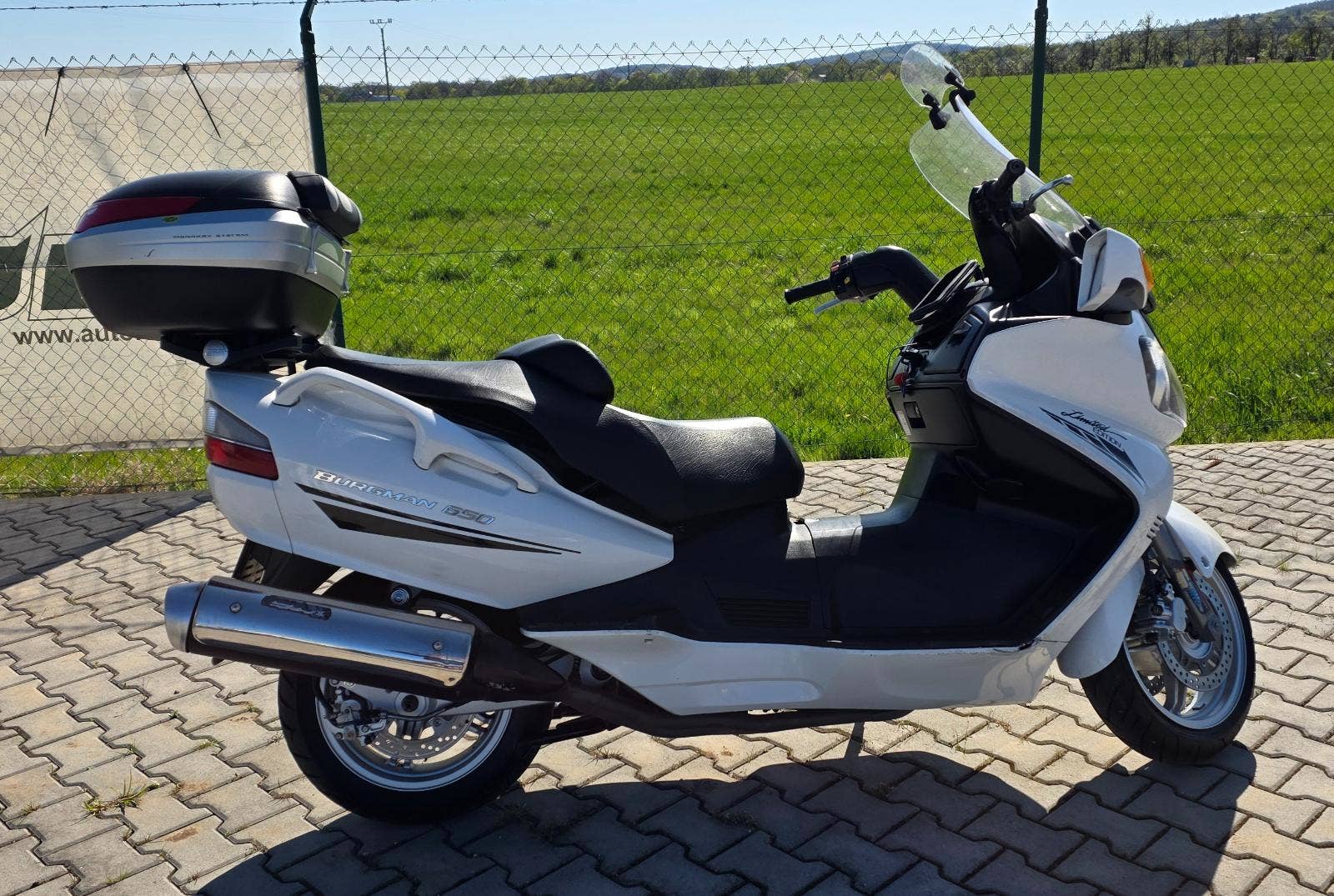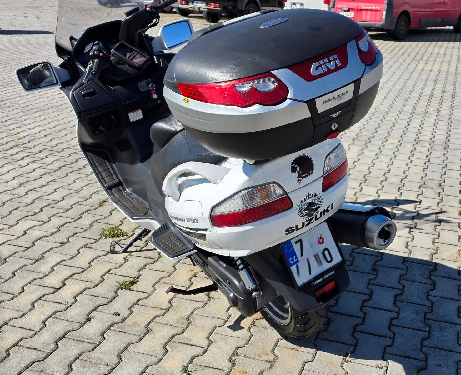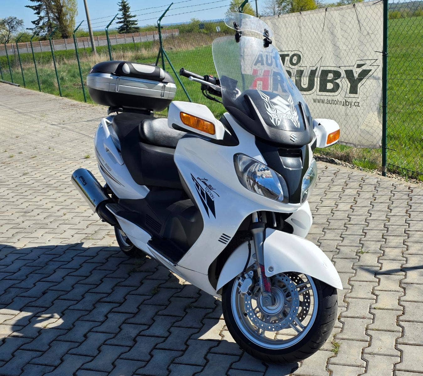 Nabízíme luxusní a výkonný maxiskútr Suzuki Burgman 650 Executive, ideální jak na pohodlné cestování na dlouhé vzdálenosti, tak i na každodenní provoz. Tento model je známý svou spolehlivostí, vysokým komfortem a stabilním jízdním projevem.