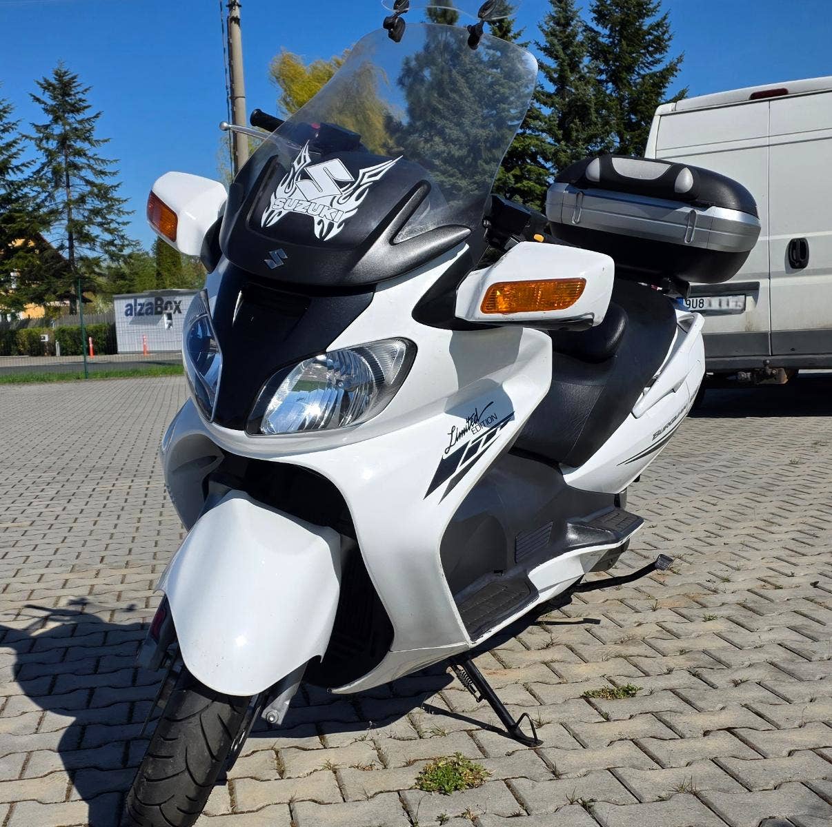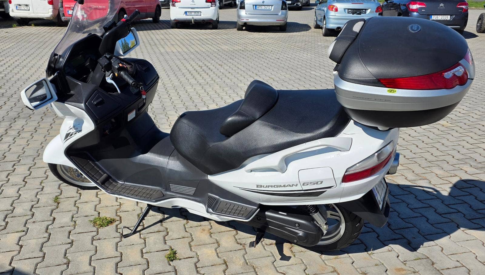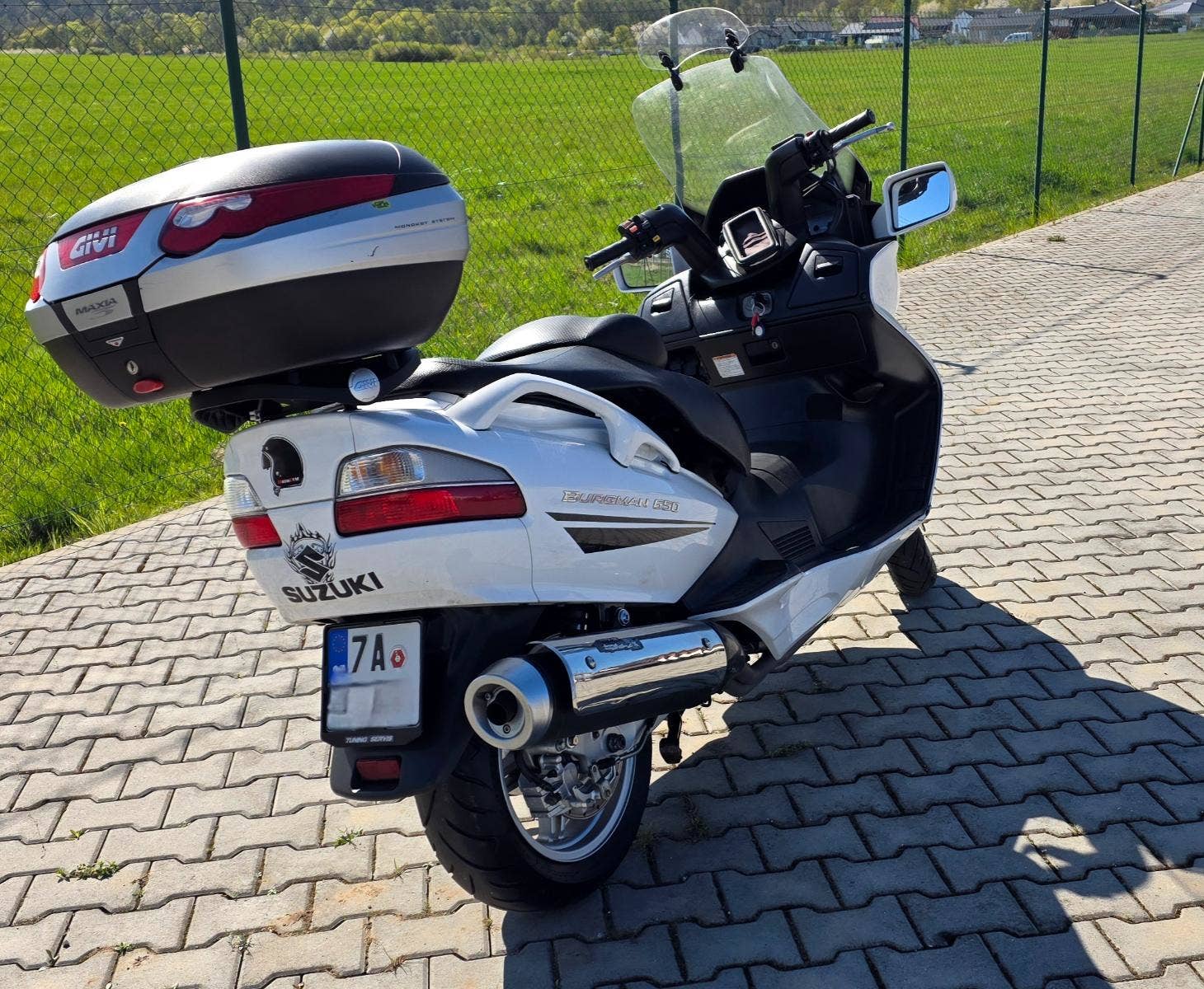 Nabízíme luxusní a výkonný maxiskútr Suzuki Burgman 650 Executive, ideální jak na pohodlné cestování na dlouhé vzdálenosti, tak i na každodenní provoz. Tento model je známý svou spolehlivostí, vysokým komfortem a stabilním jízdním projevem.