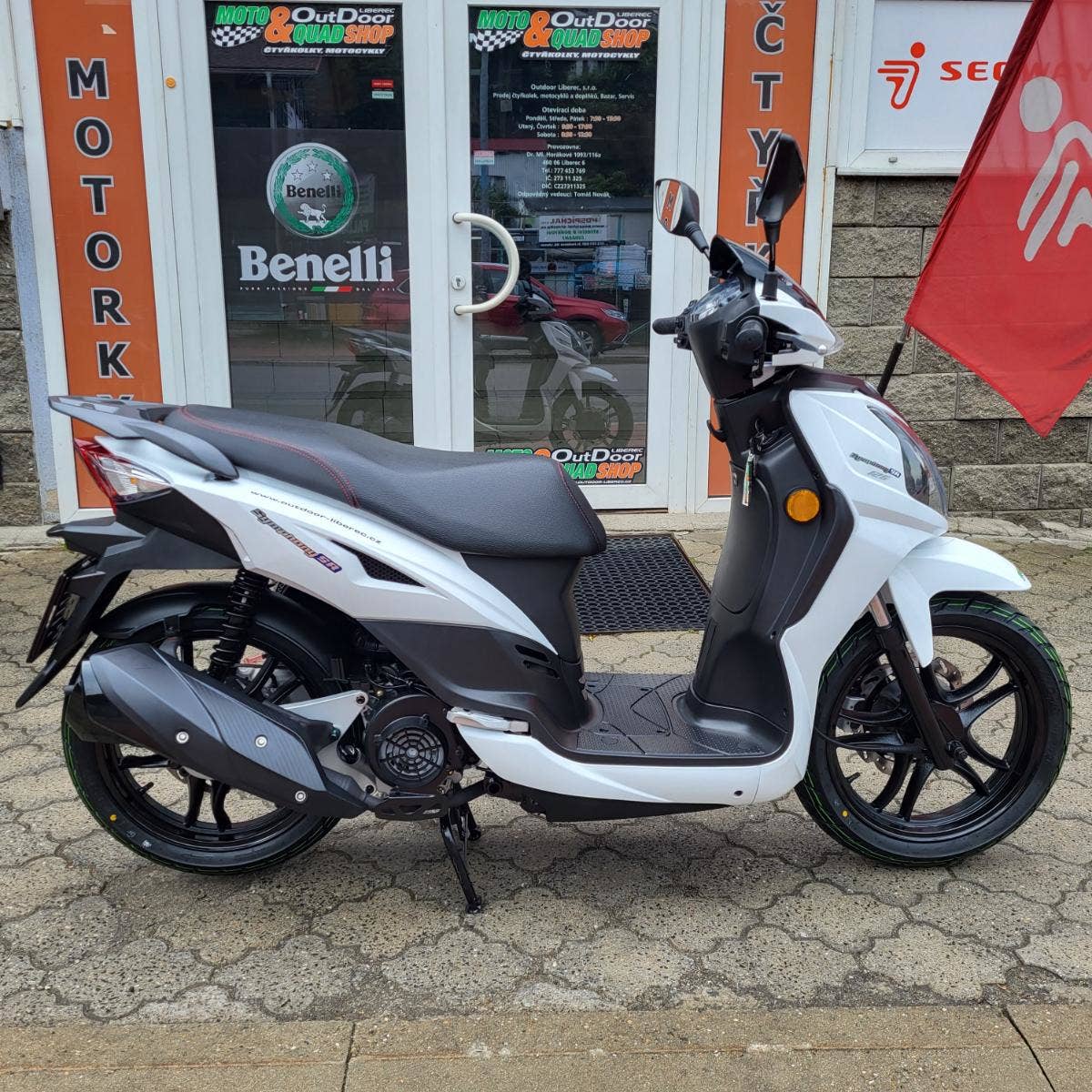 Užijte si jízdu na konceptu Symphony SR. Chytrý, elegantní a vynikající. Symphony SR vychází z typové řady Symphony, kterou inovuje agresivnějším sportovním vzhledem. Skútr Symphony SR je nepřehlédnutelný svým výrazným předním světlometem, který evokuje sportovního ducha tohoto skútru.