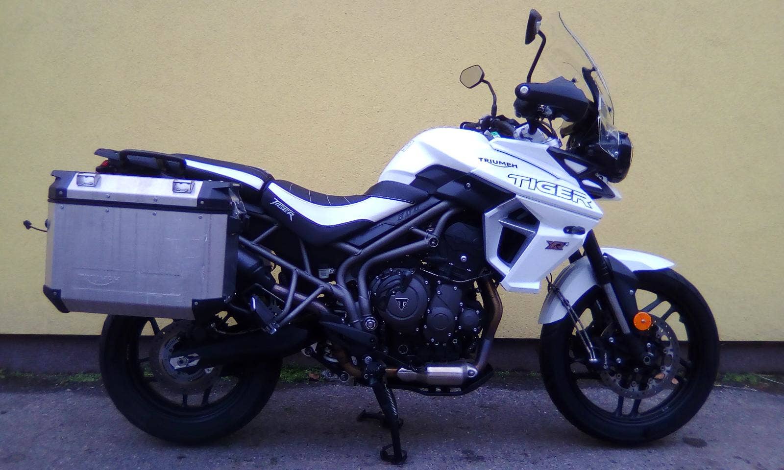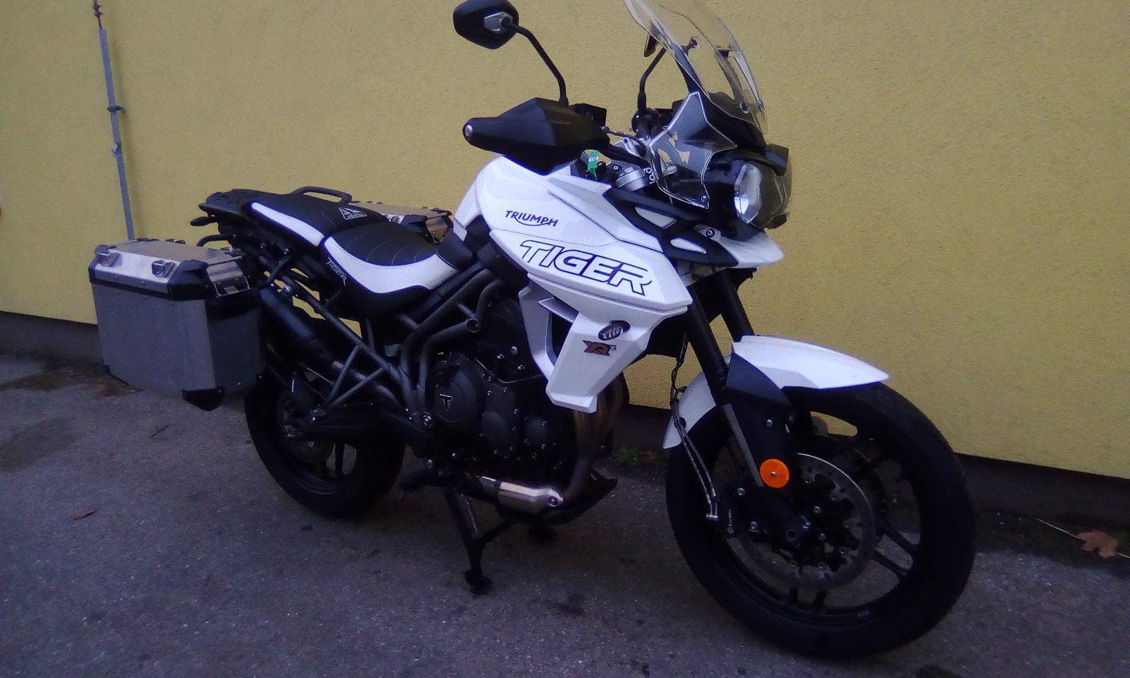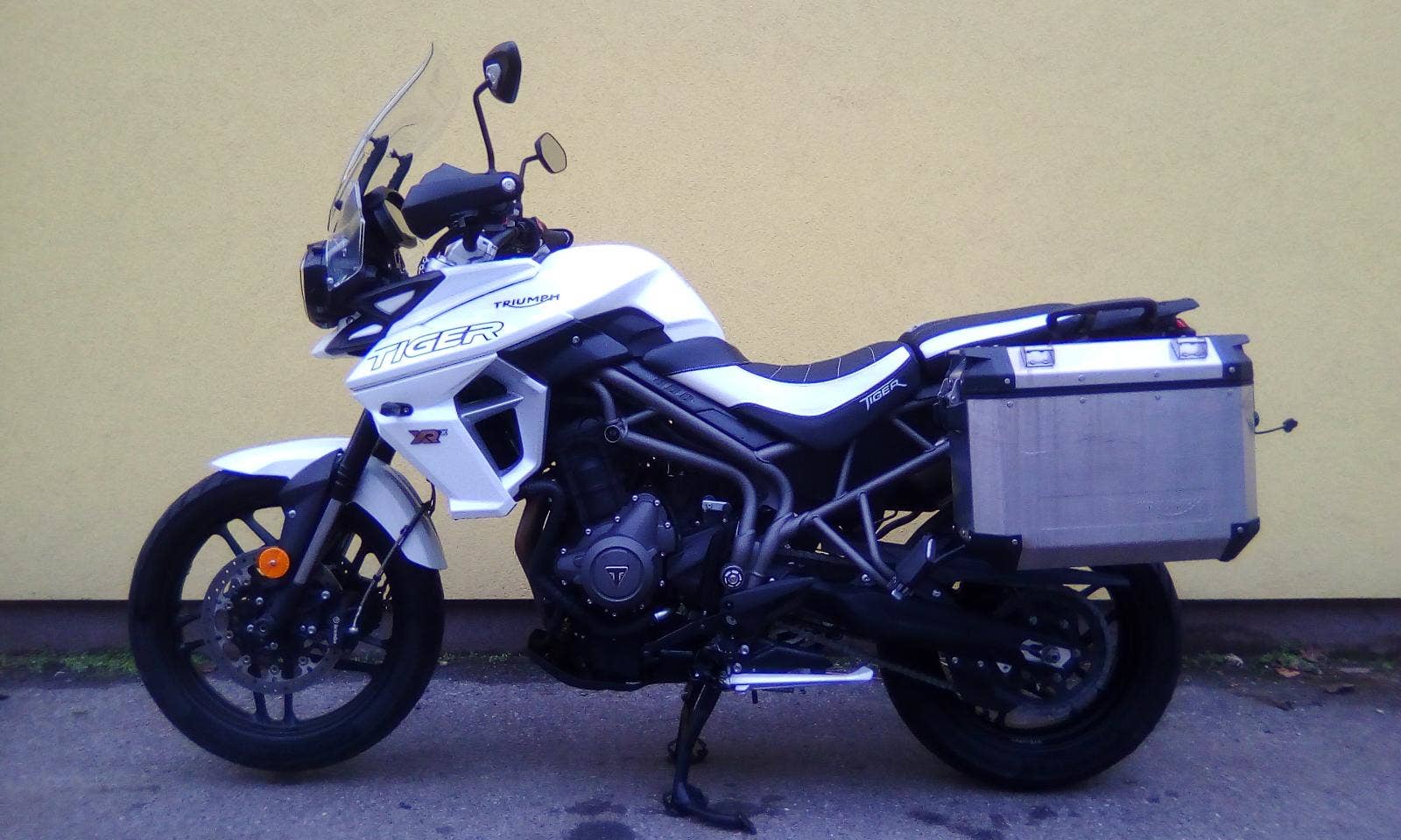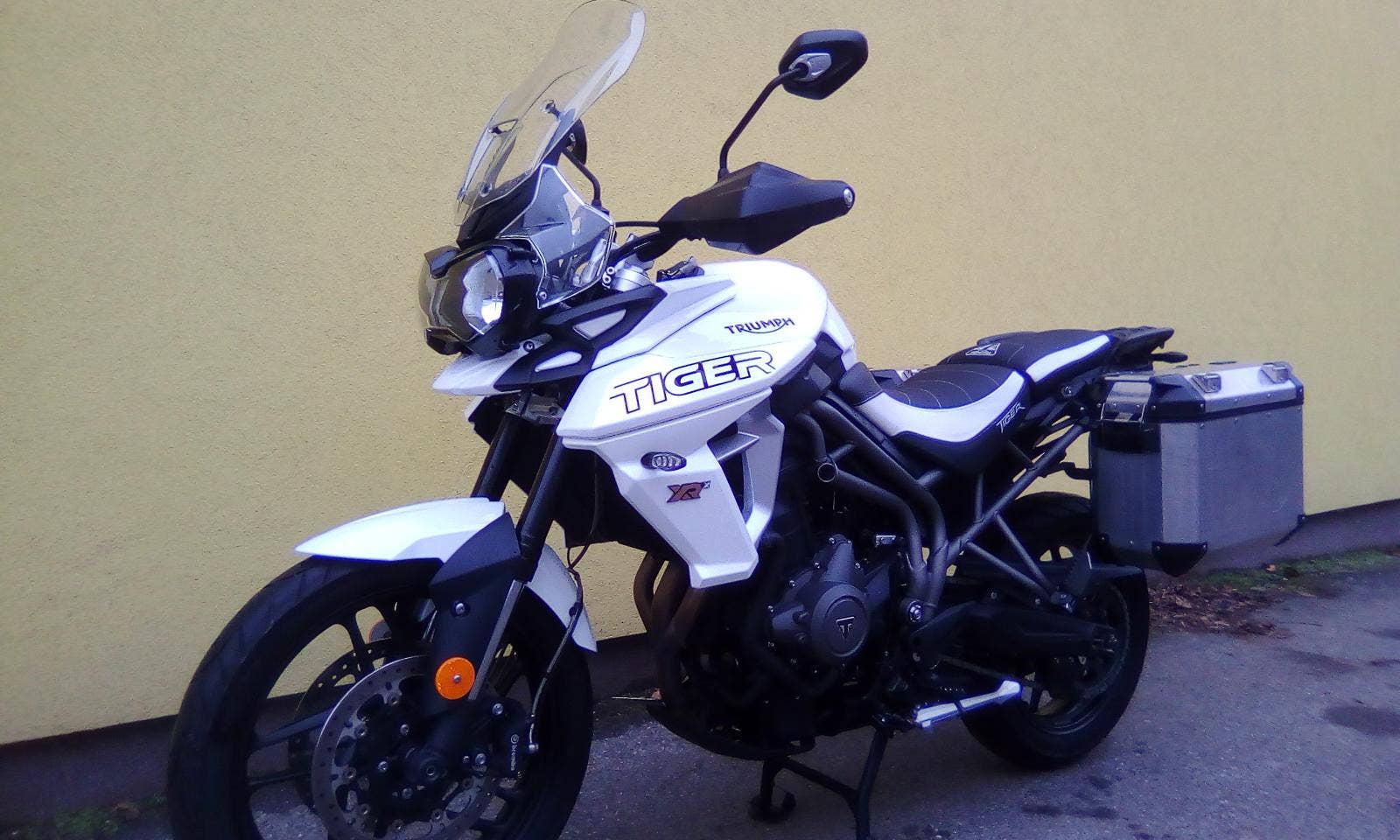 Poslední provedení Triumphu Tiger 800 již s TFT displejem, lépe tvarovaným originál plexi s bočními deflektory, tempomatem a vyhřívanými rukojeťmi.
