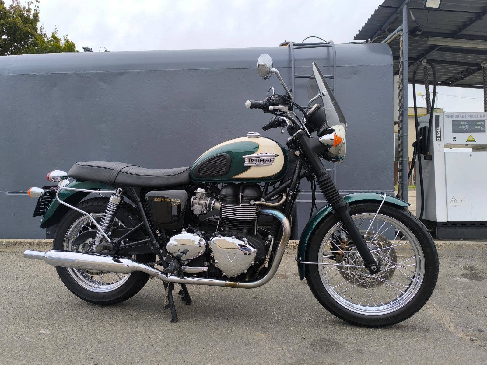 Prodám Triumph T 100 Bonneville r.v. 2009 (už stříkačka) výkon 48 kW a najeto 28 400 km. Triumph je v originální´m stavu hodně zachovalý v perfektním technickém stavu. Po kontrole náplní, nová baterka, zánovní sada pneu. Nová STK na 4 roky. Doplňky- plexi, podpěry brašen. Pěkný Anglický gentlemann. Pro více info tel. Před návštěvou volat!!! po dohodě motorku i dovezeme. Zajistíme Vám servis, díly i doplňky. Jsme již od roku 1999 IRON MOTO