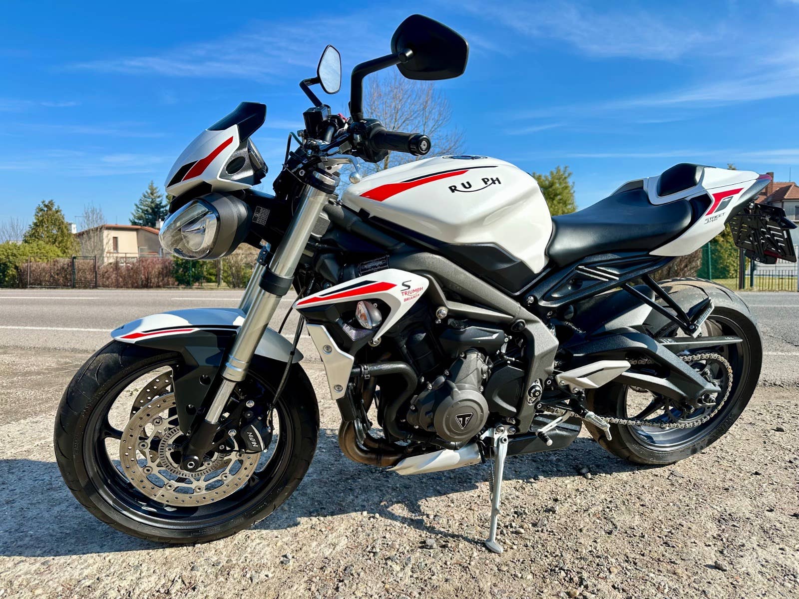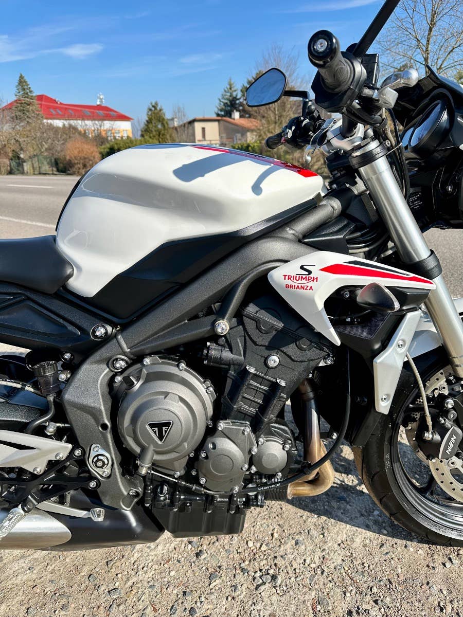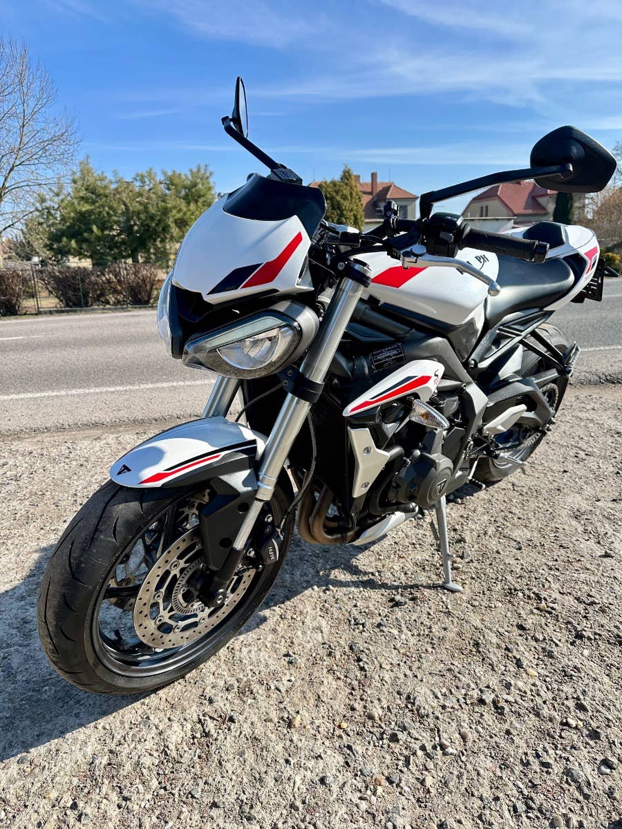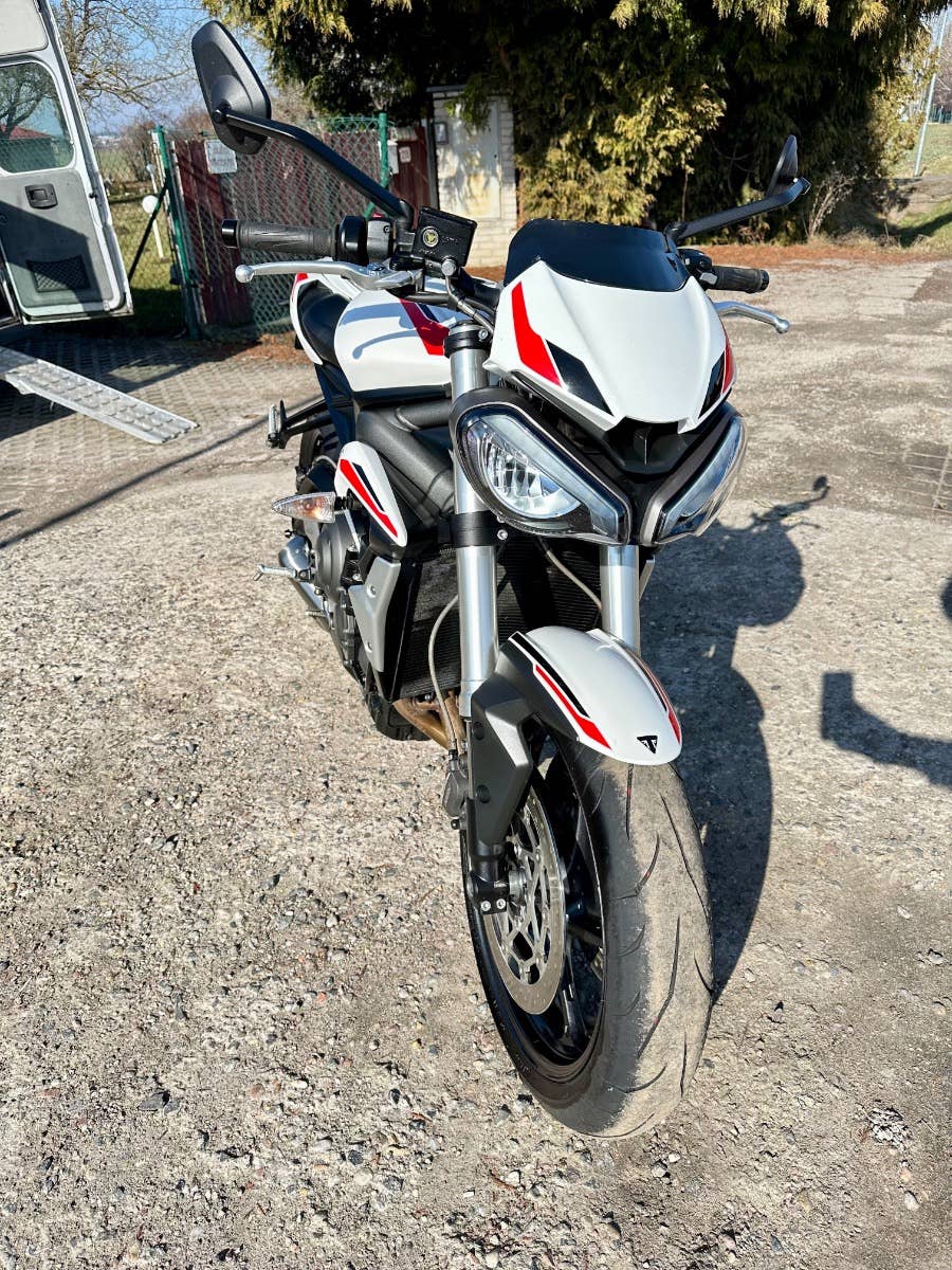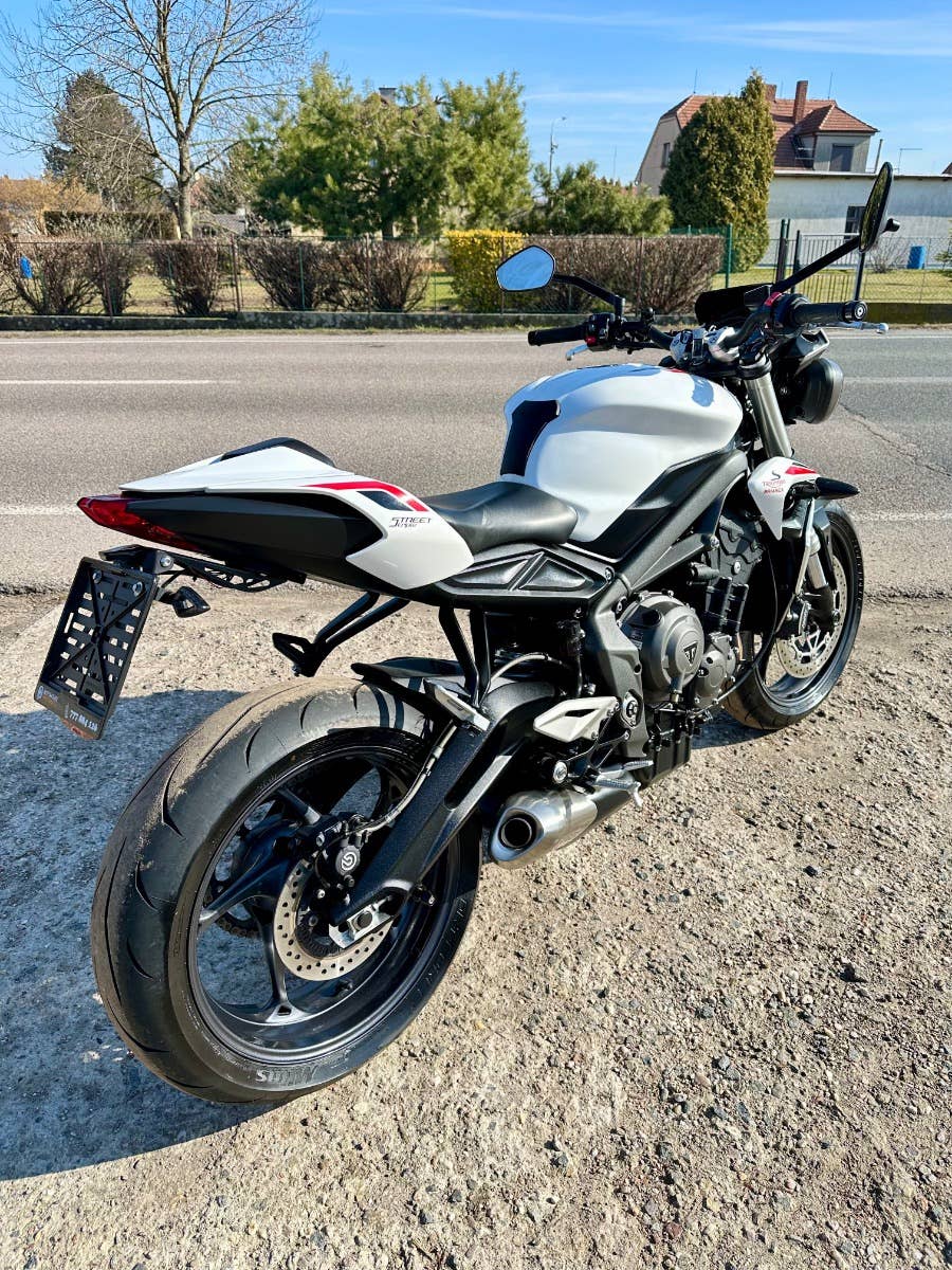 Triumph street triple S, 2021, najeto cca 25 tis km, model 2021 ve verze S s 35 kW v TP, originální stav, bez rzi a oxidace, 3d polep na nádrži pouze odlepen, krokva sedla plus sedlo, 2x klíč, zánovní pneumatiky, držák navigace, doplňkový držák SPZ, možnost úvěru od Essoxu nebo Cofidis