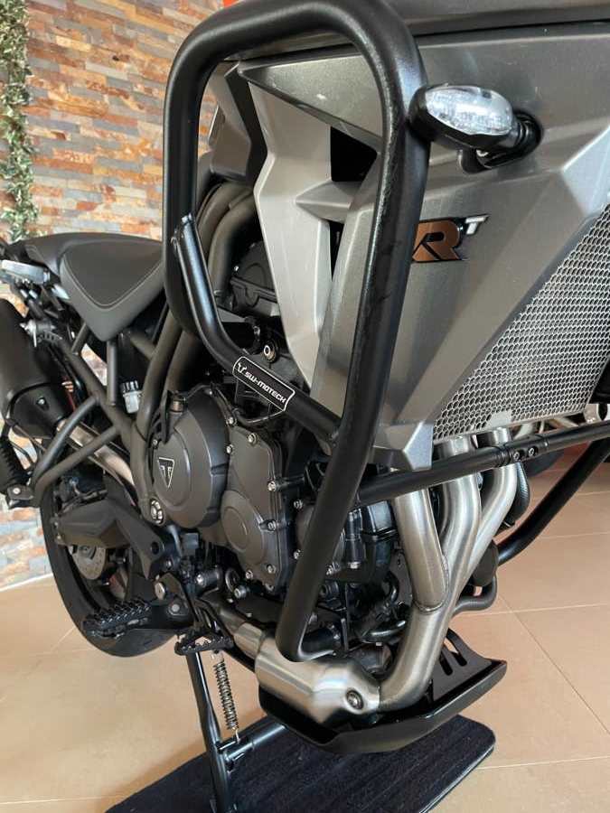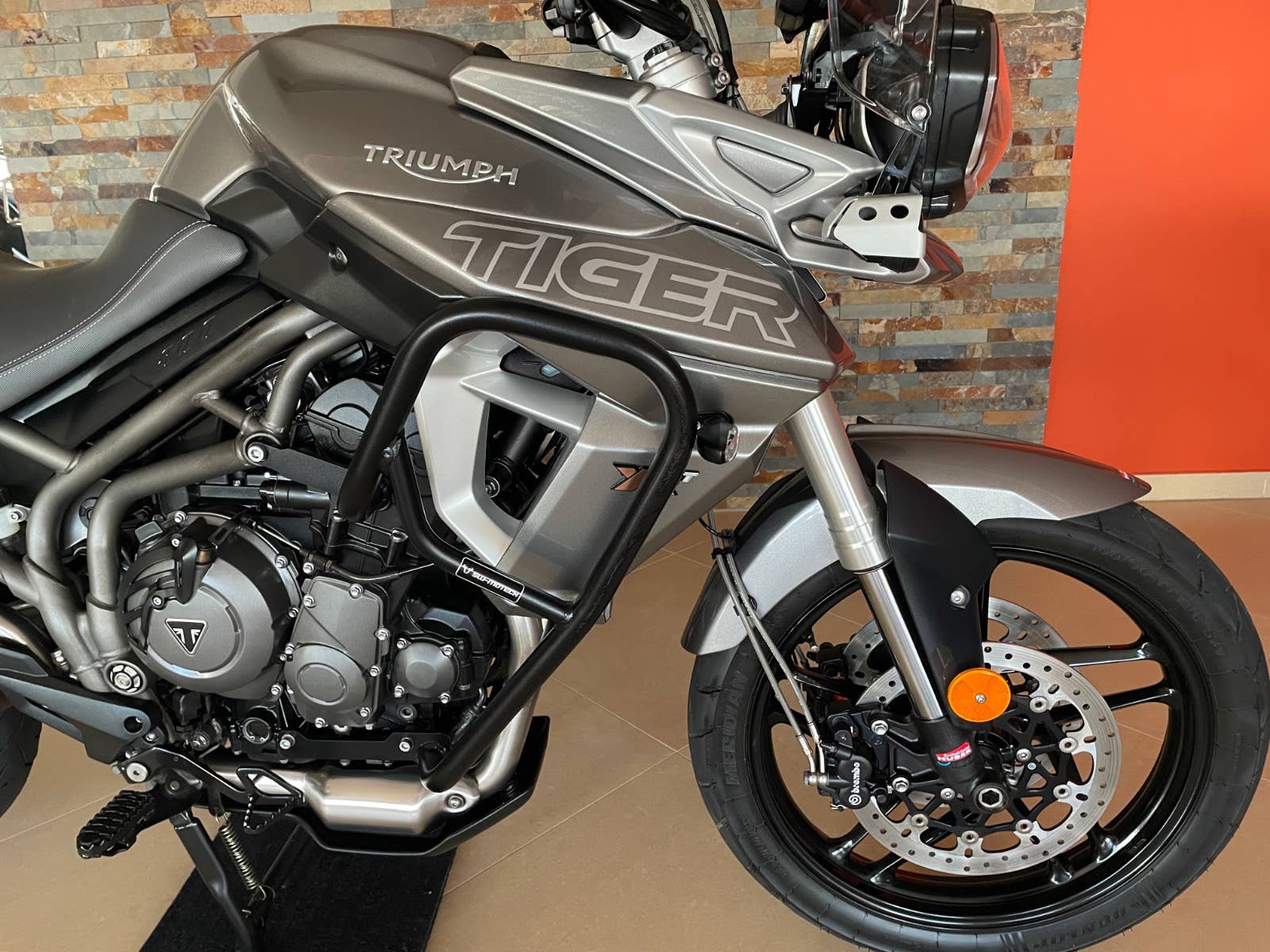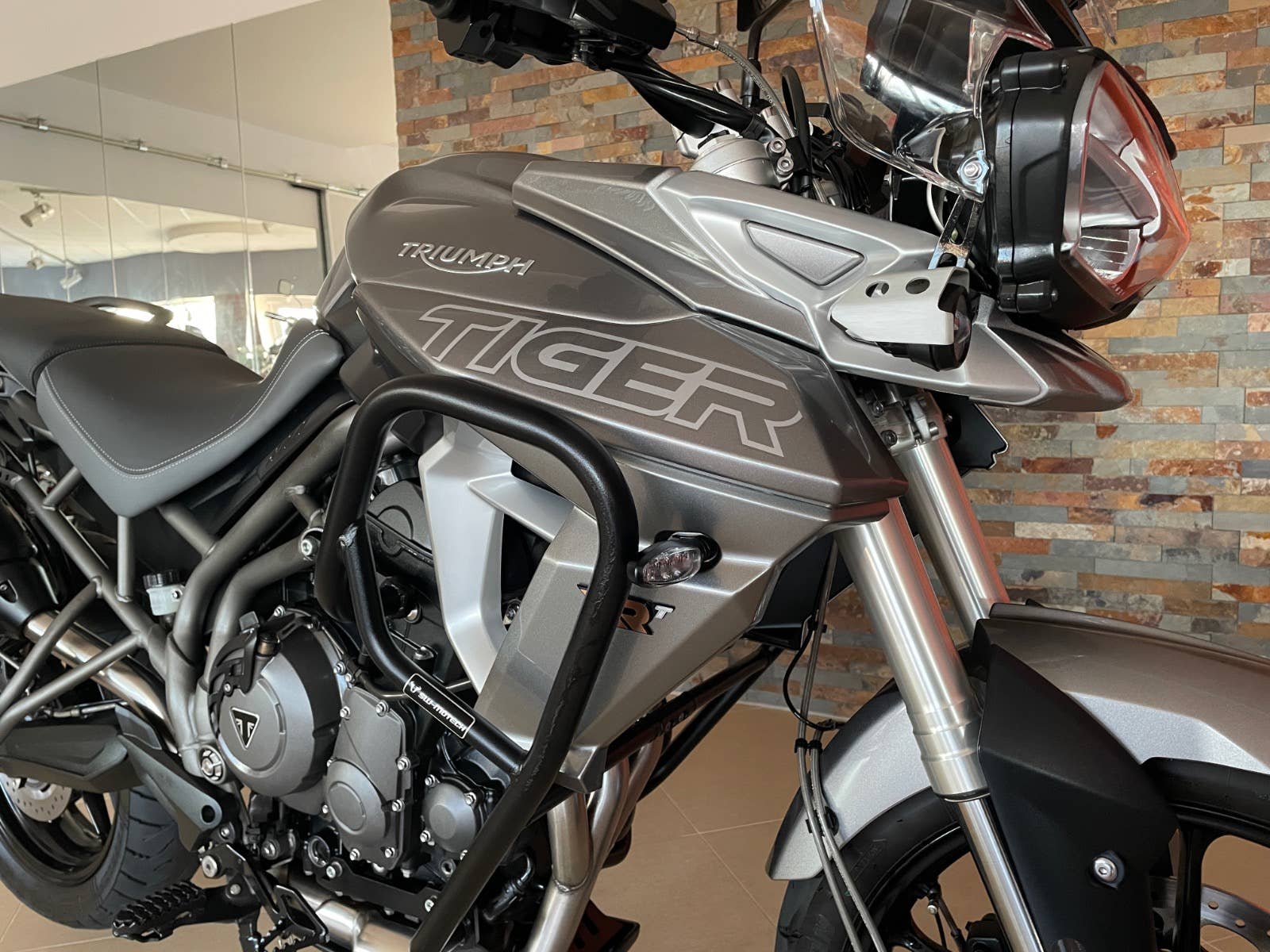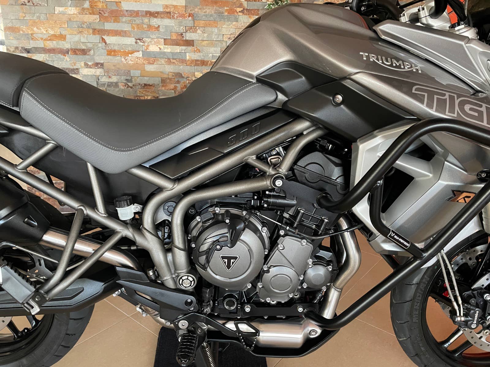 Triumph Tiger 800 XRT, r.v. 2018, 38900 km, 70 kW, šedá metalíza. Koupeno a dovezeno přímo od 2. majitele z Německa ve stavu jak vidíte na fotkách. Nehavarované, nelakované, nijak neopravené.. vše v původním originálním stavu! Nejvyšší výbava XRT: TFT barevný displej- 3 možnosti nastavení, 5 jízdních režimů, elektronicky nastavení podvozku, LED mlhovky, LED kompletní světla- blikače + koncové-brzdové-denní- potkávací-dálkové, podsvícené přepínače na řídítkách, 3 stupně vyhrazené ručky, 2 stupně vyhřívané obě sedla, komfortní gel sedla, hlavní stojánek, vyšší nastavitelný štít, výškově nastavitelné sedlo, ABS, kontrola trakce- 3 stupně, palubní počítač, padací rám, vestavěné držáky bočních orig kufrů, boční orig kufry Triumph na stejný klíč jako k motocyklu. Doklady: všechny doklady na přihlášení, odhláška, serviska, manuál, všechny TÜV protokoly/STK, faktury a inspekční listy ze servisních prohlídek. Stav: poslední servis proveden za 1055€ v Německu 4/2025 - faktura s výpisem je k dispozici!! Velmi zachovalý a udržovaný motocykl v perfektním stavu! Zkušební jízda jen proti plné záloze. Další info po telefonu.