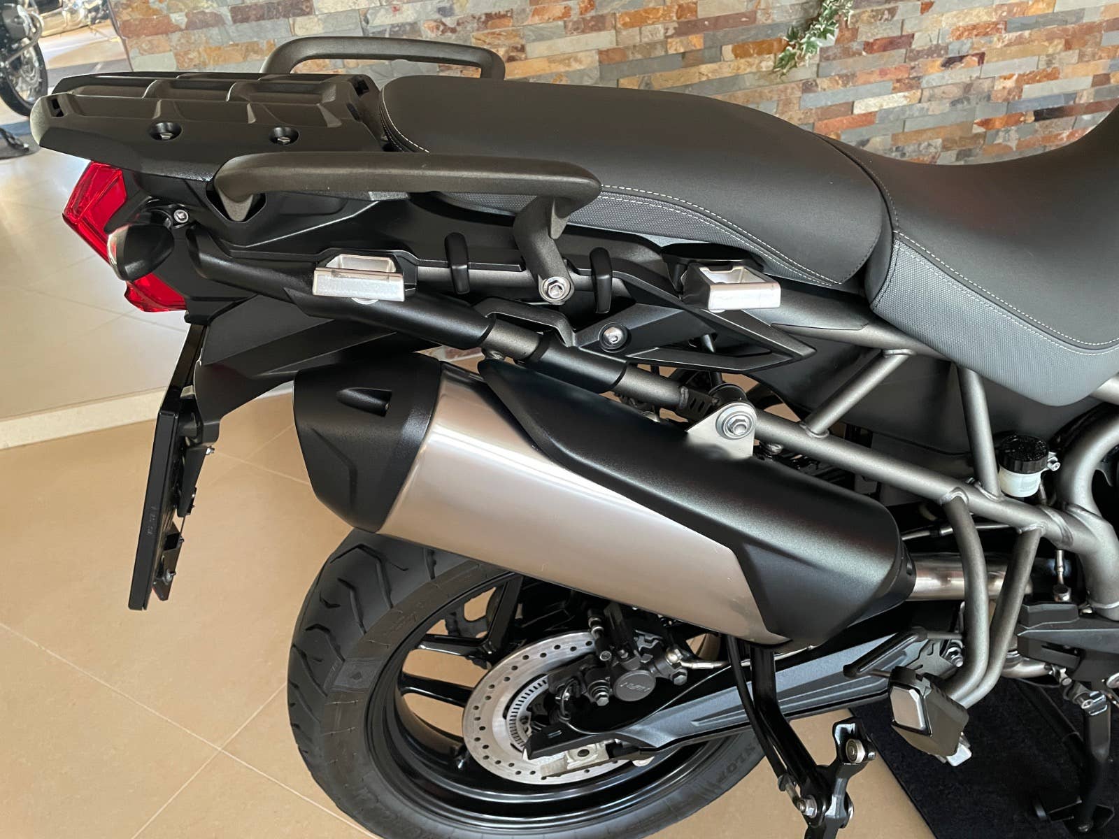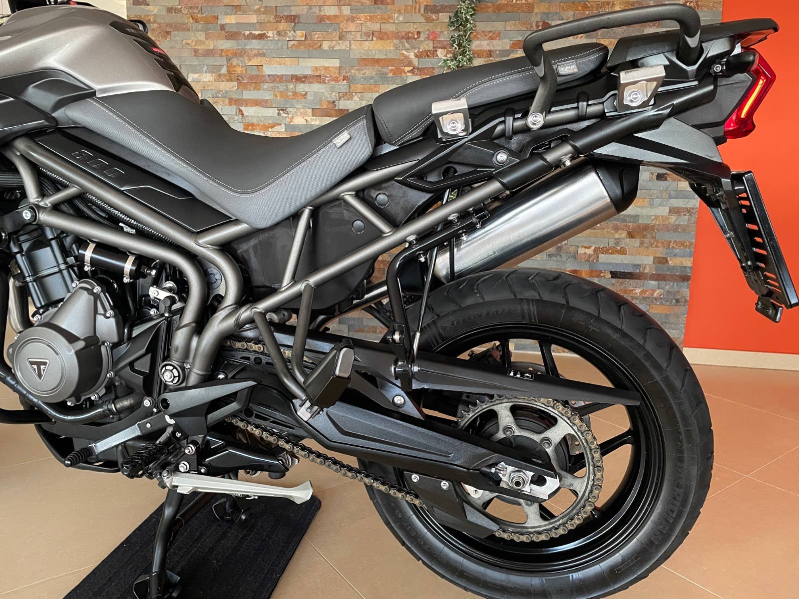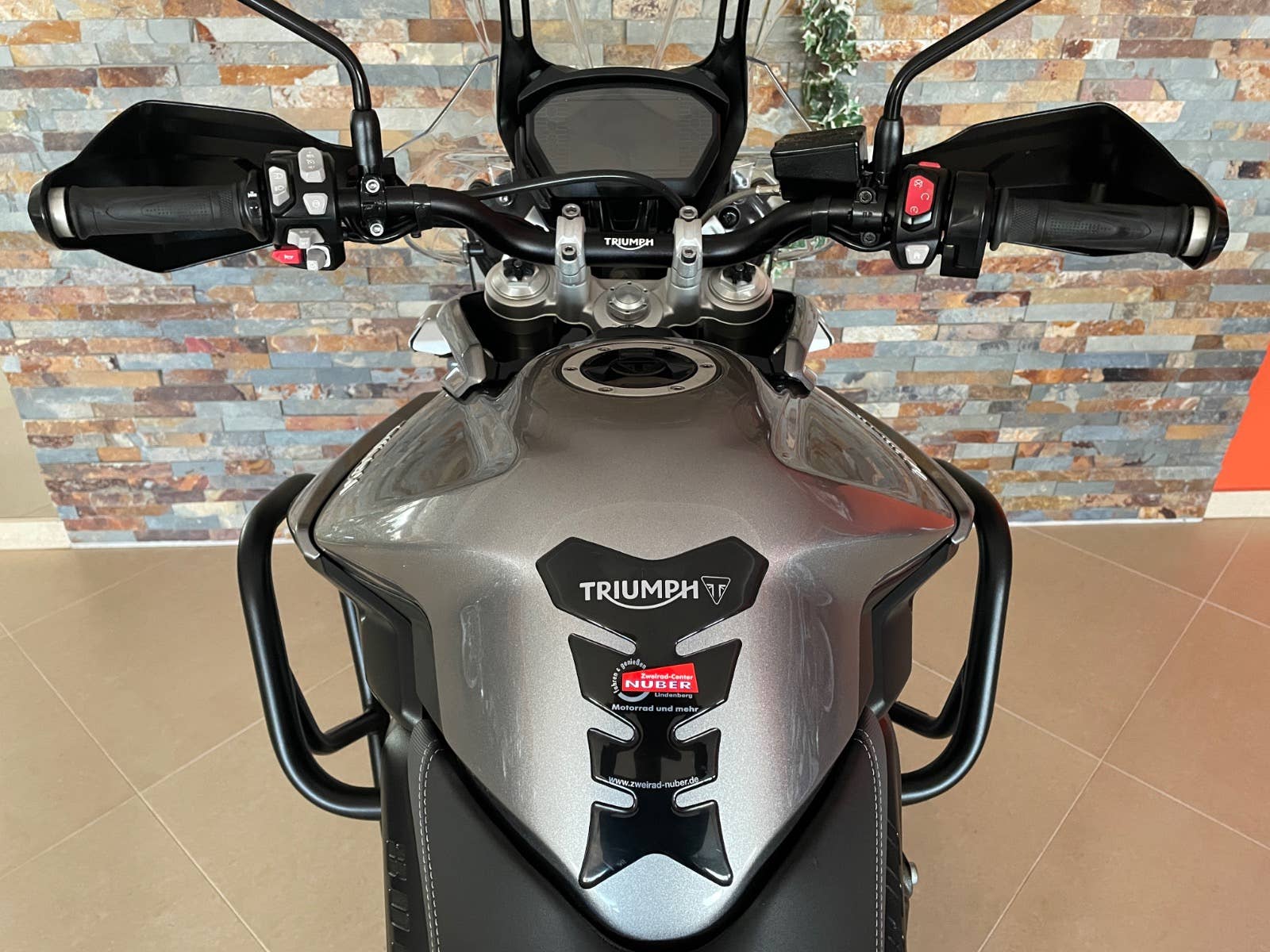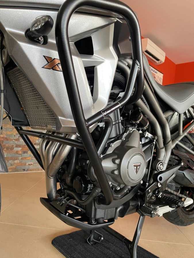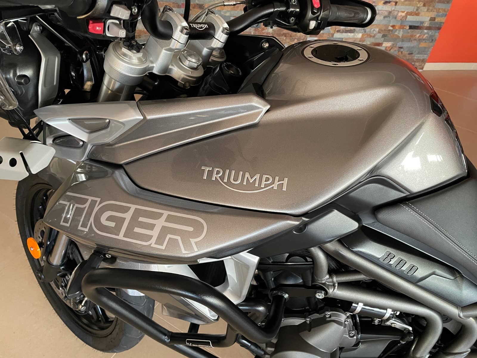 Triumph Tiger 800 XRT, r.v. 2018, 38900 km, 70 kW, šedá metalíza. Koupeno a dovezeno přímo od 2. majitele z Německa ve stavu jak vidíte na fotkách. Nehavarované, nelakované, nijak neopravené.. vše v původním originálním stavu! Nejvyšší výbava XRT: TFT barevný displej- 3 možnosti nastavení, 5 jízdních režimů, elektronicky nastavení podvozku, LED mlhovky, LED kompletní světla- blikače + koncové-brzdové-denní- potkávací-dálkové, podsvícené přepínače na řídítkách, 3 stupně vyhrazené ručky, 2 stupně vyhřívané obě sedla, komfortní gel sedla, hlavní stojánek, vyšší nastavitelný štít, výškově nastavitelné sedlo, ABS, kontrola trakce- 3 stupně, palubní počítač, padací rám, vestavěné držáky bočních orig kufrů, boční orig kufry Triumph na stejný klíč jako k motocyklu. Doklady: všechny doklady na přihlášení, odhláška, serviska, manuál, všechny TÜV protokoly/STK, faktury a inspekční listy ze servisních prohlídek. Stav: poslední servis proveden za 1055€ v Německu 4/2025 - faktura s výpisem je k dispozici!! Velmi zachovalý a udržovaný motocykl v perfektním stavu! Zkušební jízda jen proti plné záloze. Další info po telefonu.