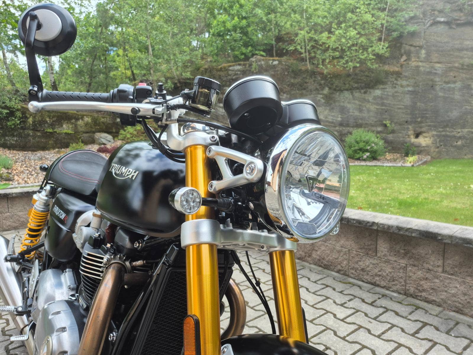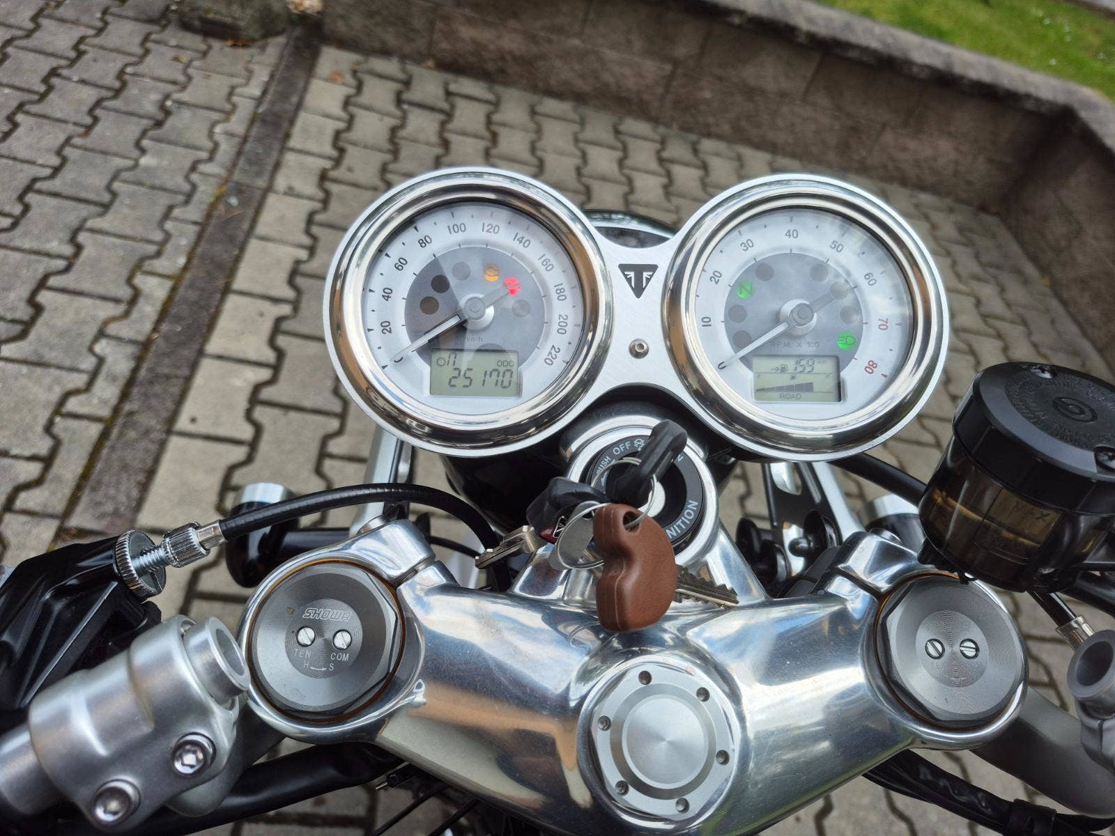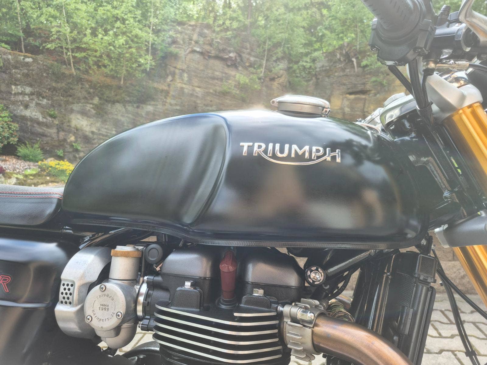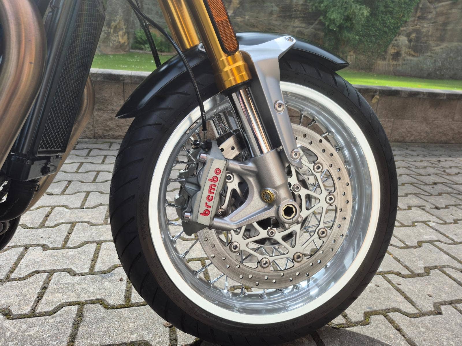 Motocykl v TOP stavu, nehavarovaný, bez rzi a oxidace, dovezený z Německa od 1. majitele. 3 x klíč, servisní knížka, - plná servisní historie motocyklu, vše děláno v autorizovaném servisu TRIUMPH, poslední servis proveden v 21 771 km, protokol TUV - Německé STK - doložení km, manuál, certifikát COC. Verze R - Ohlins podvozek, Brembo Brzdy, doplňkové zadní diodové světlo, + držák SPZ + plast pod sedlem, LED přední světlo, LED blikny, rolny na zadní stojan, ABS, volitelné jízdní režimy, palubní počítač, kryt sedadla spolujezdce. Možnost splátkového prodeje, již při složení 10% akontace vyřízení úvěru do 30 minut!
