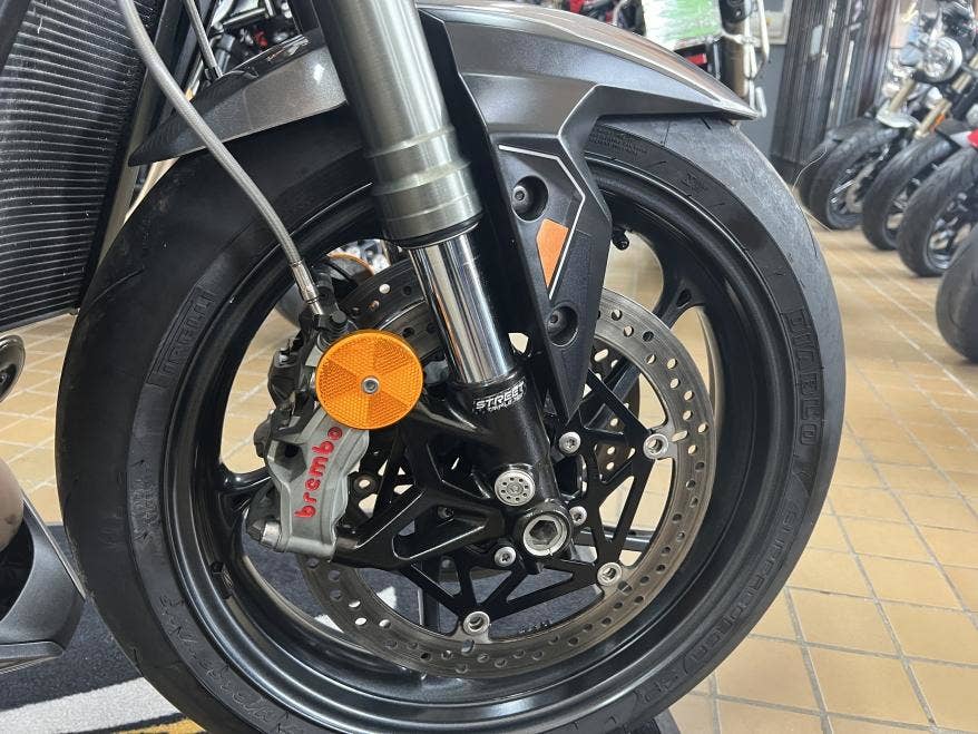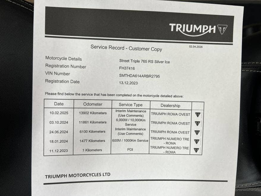 2 klíče + alarm, doložený servis pouze Triumph, vylepšený novější model RS na podvozku Ohlins s náklonovou kontrolou trakce i ABS, lepší ergonomie + elektronika, koupeno 13.12. 2023 do provozu 2024, vše je orig. původní, žádné spec. úpravy, pouze kratší držák SPZ, kryt sedla + sedlo, poslední servis 13900 km, více foto u nás na webu, provedena dovozová STK na 4 roky včetně evidenčky, registrace na CZ TP pouze 500,