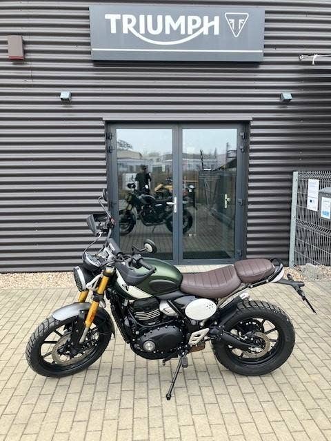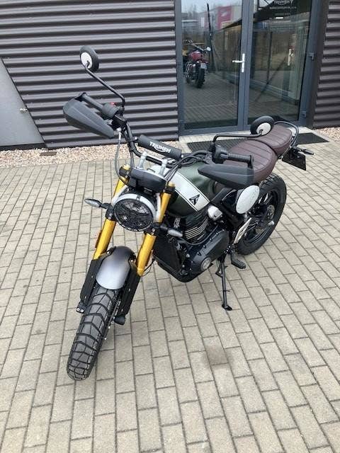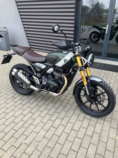 nabízíme k prodeji motocykl Scrambler 400 X, Matt Khaki/Fusion White po našem zákazníkovi - velmi nízký nájezd, stav nového motocyklu.