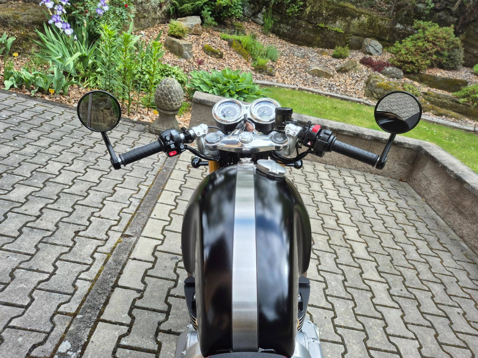 Motocykl v TOP stavu, nehavarovaný, bez rzi a oxidace, dovezený z Německa od 1. majitele. 3 x klíč, servisní knížka, - plná servisní historie motocyklu, vše děláno v autorizovaném servisu TRIUMPH, poslední servis proveden v 21 771 km, protokol TUV - Německé STK - doložení km, manuál, certifikát COC. Verze R - Ohlins podvozek, Brembo Brzdy, doplňkové zadní diodové světlo, + držák SPZ + plast pod sedlem, LED přední světlo, LED blikny, rolny na zadní stojan, ABS, volitelné jízdní režimy, palubní počítač, kryt sedadla spolujezdce. Možnost splátkového prodeje, již při složení 10% akontace vyřízení úvěru do 30 minut!