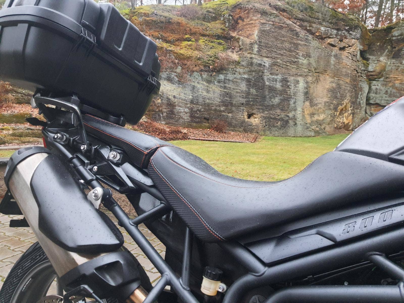 Motocykl ve velice pěklném stavu, dovezený ze zahraničí od autorizovaného prodejce. 2 x klíč. Výbava motocyklu: Kryty rukojetí, zásuvka 12V, diodové blikny, pancéř. hadičky, dopl. zrcátka, ABS, nosič + kufr - 53 L, s opěrkou od GIVI, komfortní doplňková sedadla SELLERIES ITALY, vyhřívané rukojeti, představce řídítek, dopl. blatníček pod předním světlem TRIUMPH, tankpedy nádrže + kapoty, kryt spojkového víka + kryt motoru. Možnost splátkového prodeje, již při složení 10% akontace vyřízení úvěru do 30 minut!