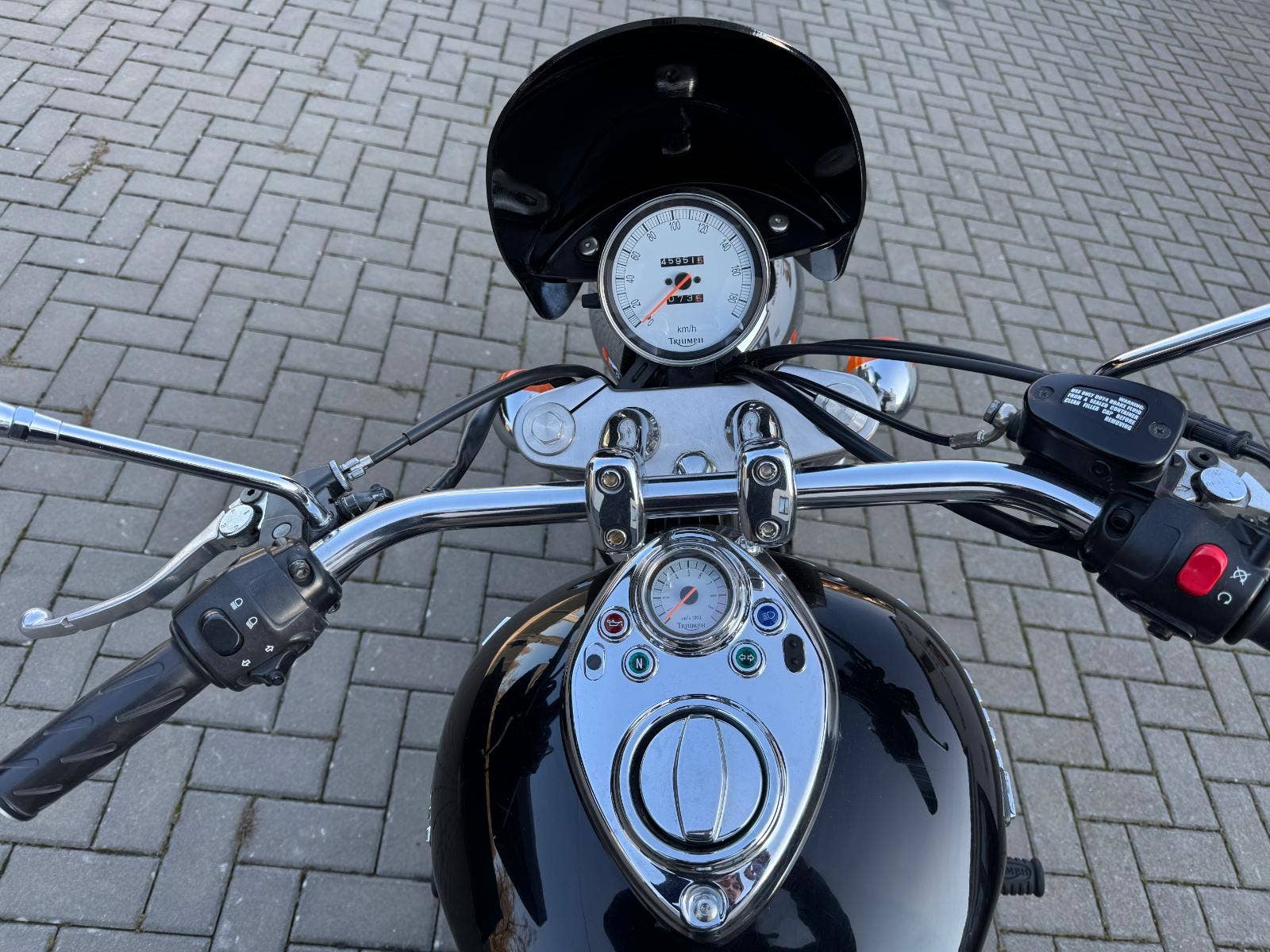 Triumph Speedmaster, 1. registrace 2005, najeto 45000 km, výkon 41 kW, udržovaná motorka, částečná servisní dokumentace, již přihlášeno v ČR, STK do 7/2027, bez dalších investic.