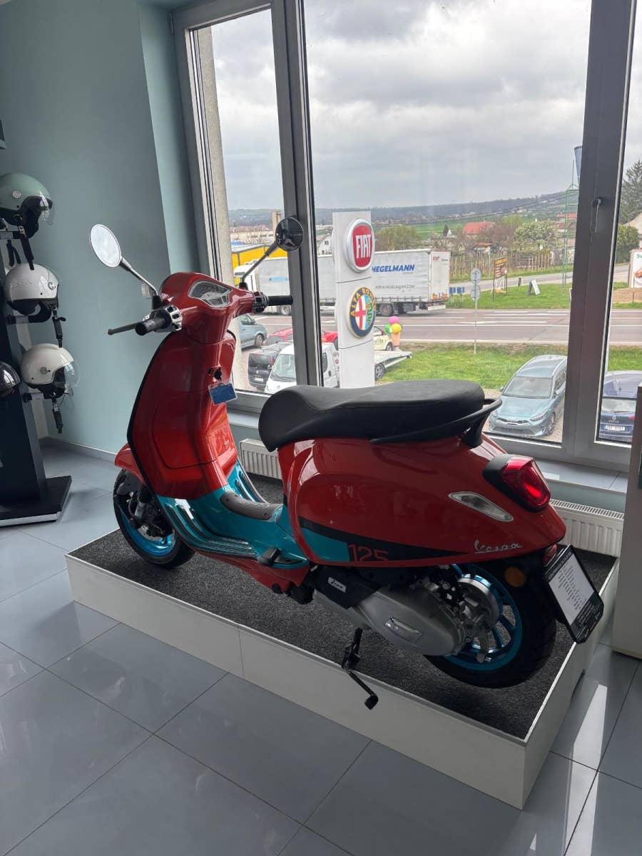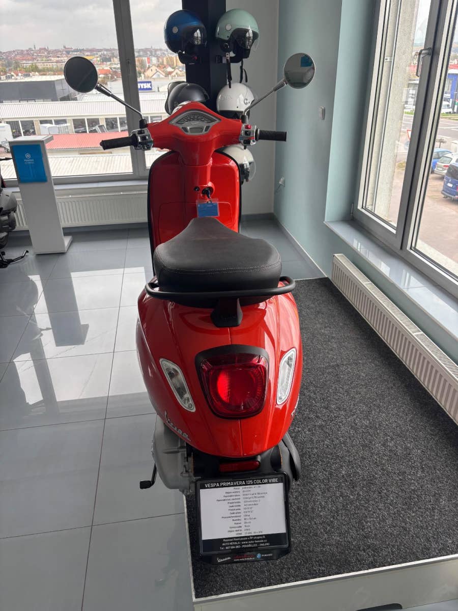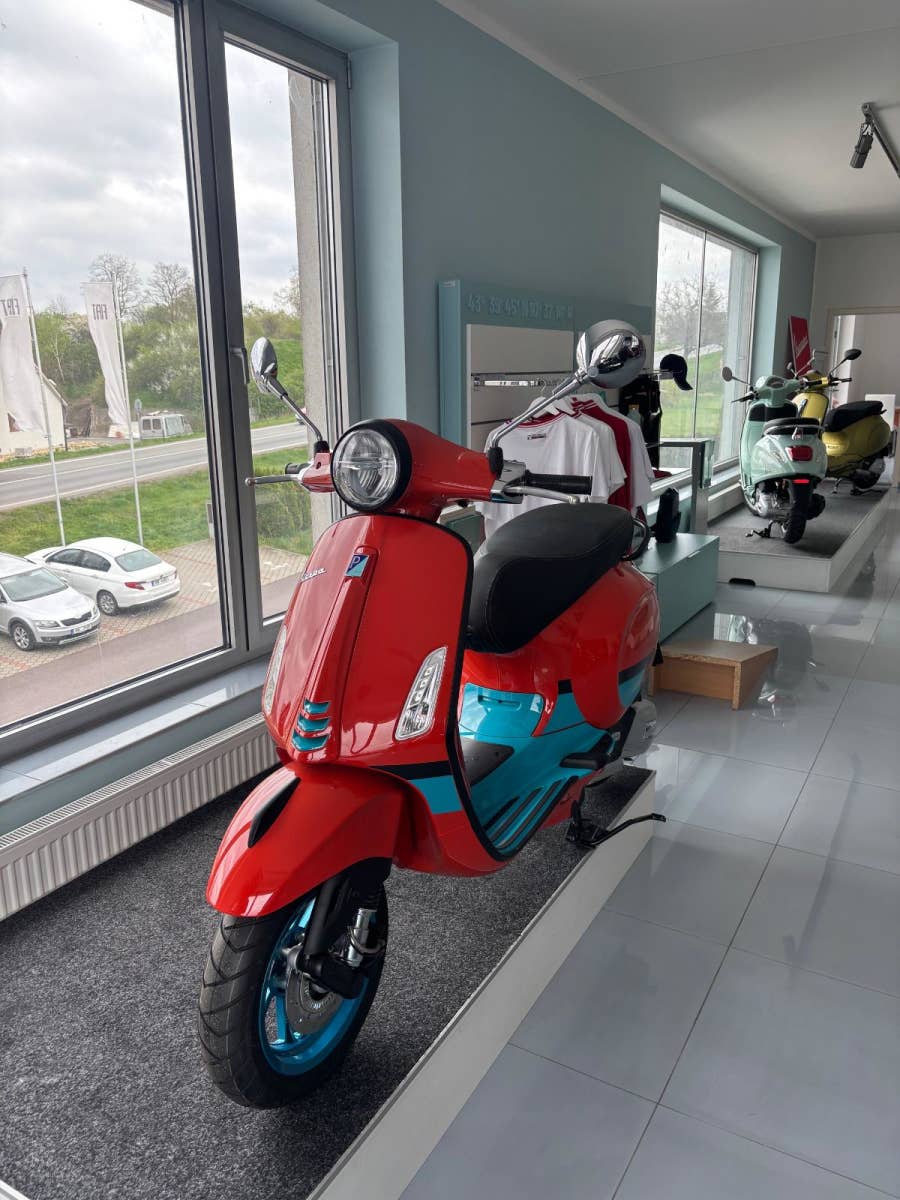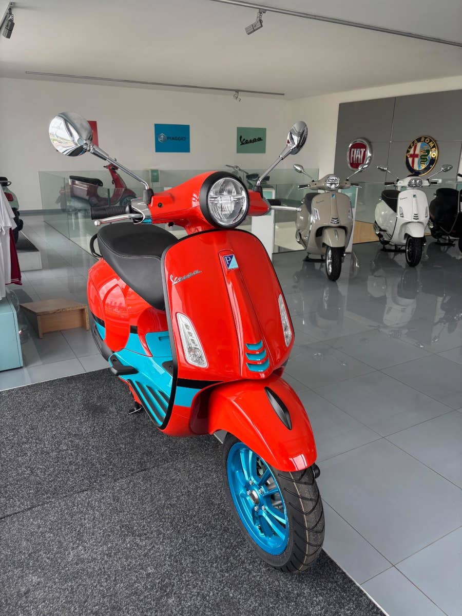 Skútr Vespa Primavera 125 ve sportovní edici COLOR VIBE v oranžové barvě.
