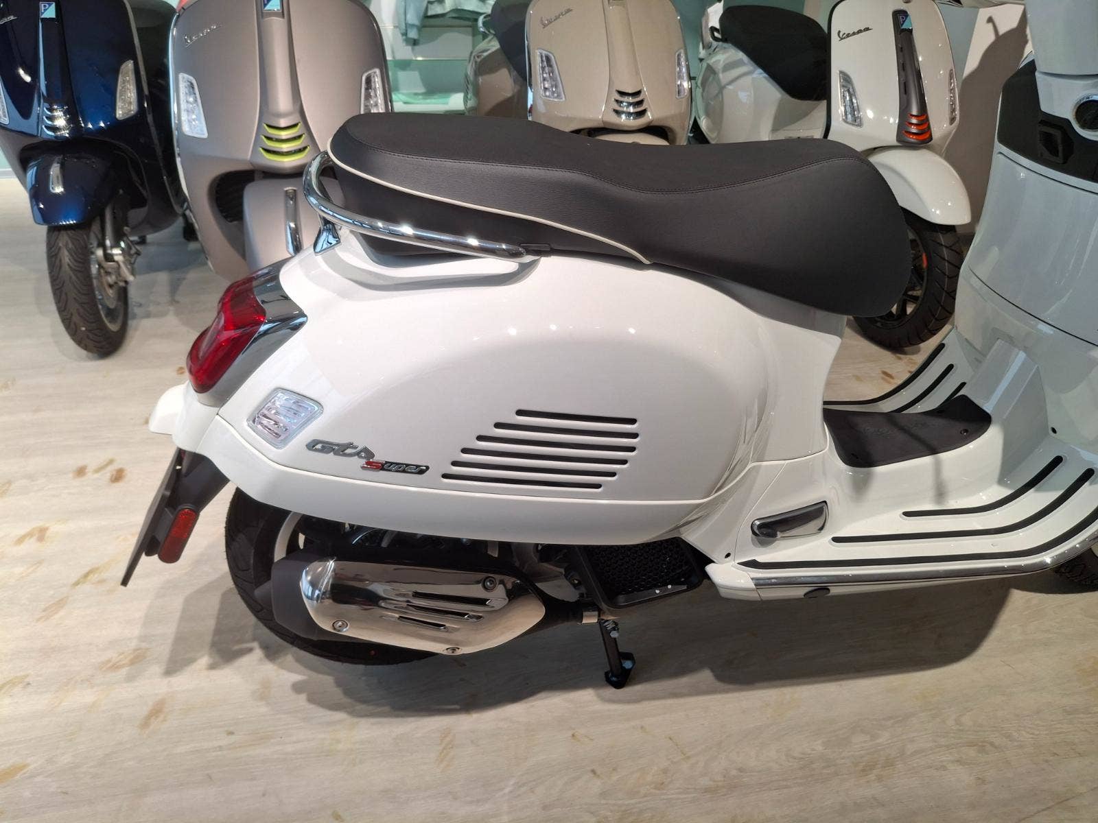 Vespa GTS S přináší na silnice atmosféru autentické italské ikony. Seznam se s elegantním společníkem na cesty s drsnou sportovní duší, který je připraven vzít tě na dobrodružství s komfortem a technologickými vymoženostmi skutečného Gran Toureru. Jednoduše se soustřeď na to, aby sis užil jízdu, o zbytek se postará tvá GTS. Model je také možné objednat v barvách. Maximální pozornost byla věnována i těm nejmenším detailům modelu Vespa Gts. Metalické barvy mají lesklou povrchovou úpravu, sedadla a interiér spolu ladí, chromované prvky dodávají další nádech elegance a slavná „kravata“ samozřejmě i nadále přispívá ke statusu Vespy jako nadčasové ikony.