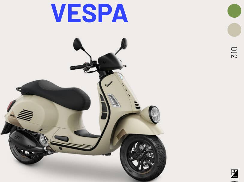 Vespa Gtv kombinuje klasickou autentičnost s odvážnými moderními detaily. Matné barevné provedení s kontrastní grafikou podtrhuje její sportovní a moderní charakter, zatímco jednosedadlové závodní sedadlo dodává celku exkluzivní nádech. Nízko posazený světlomet a odhalená řídítka, která vzdávají hold dědictví značky Vespa, spolu s typickou „kravatou“ uprostřed předního štítu definují ikonický design Vespy Gtv.