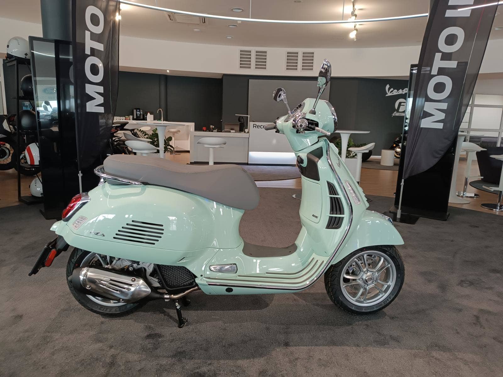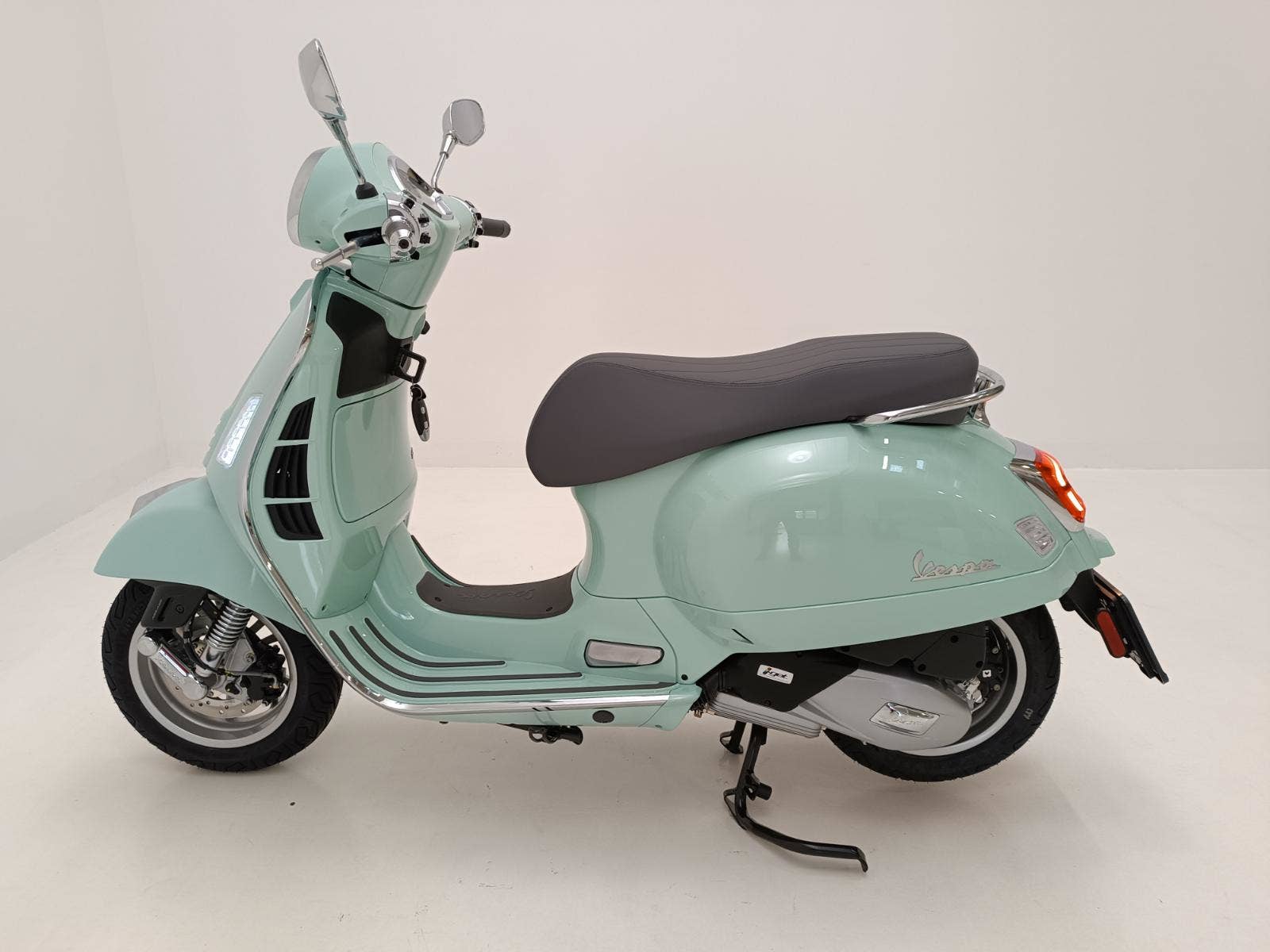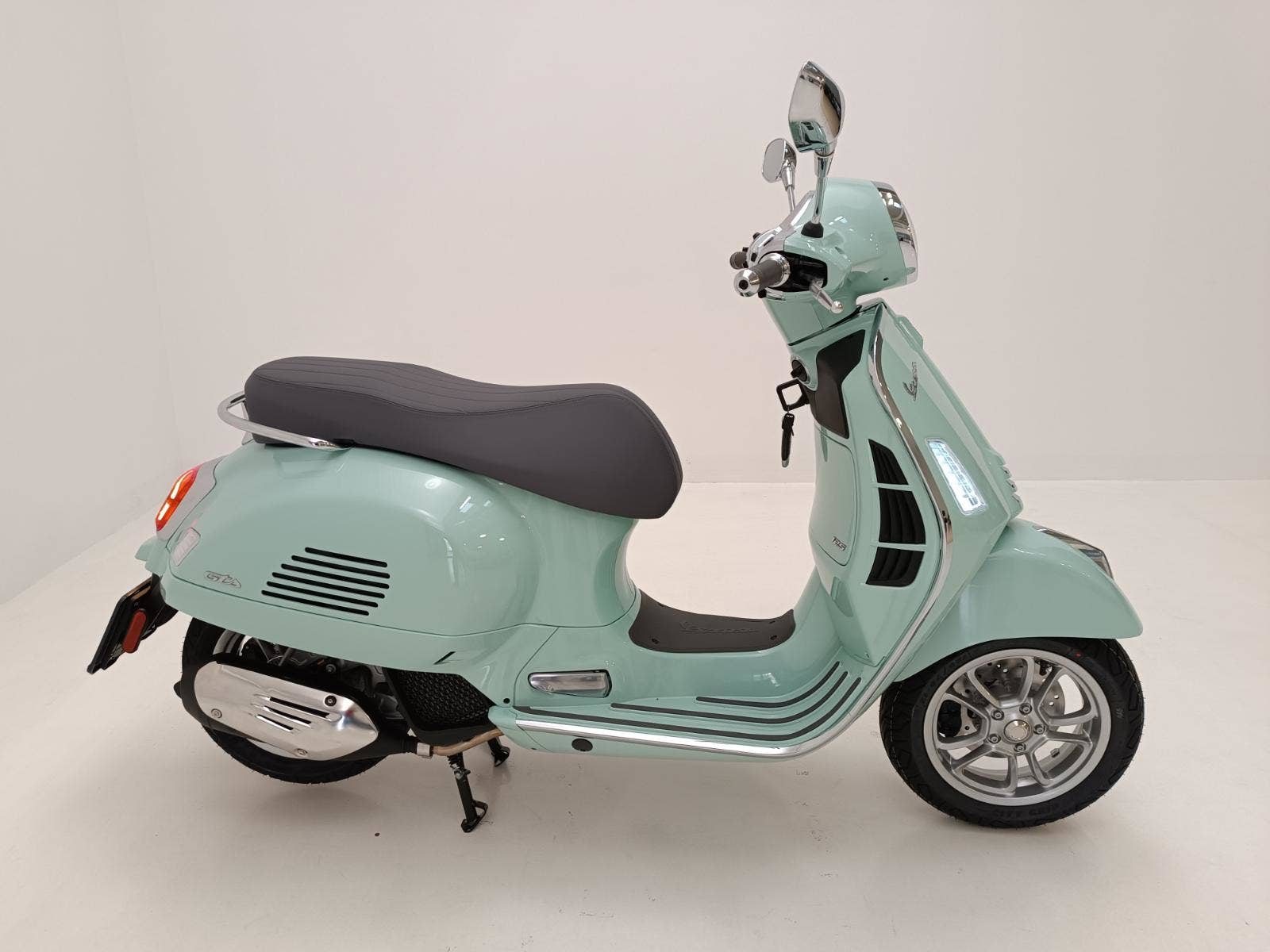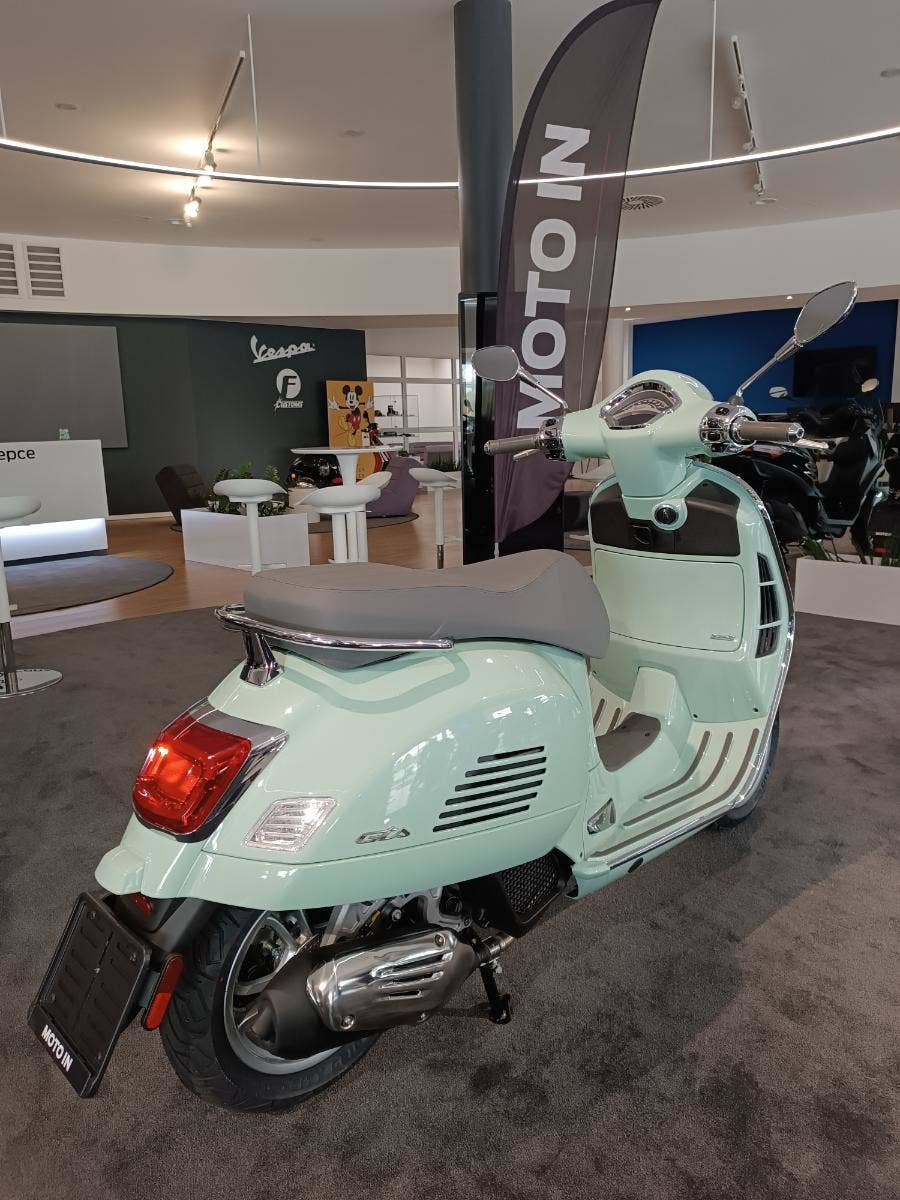 Maximální pozornost byla věnována i těm nejmenším detailům modelu Vespa Gts. Metalické barvy mají lesklou povrchovou úpravu, sedadla a interiér spolu ladí, chromované prvky dodávají další nádech elegance a slavná „kravata“ samozřejmě i nadále přispívá ke statusu Vespy jako nadčasové ikony.