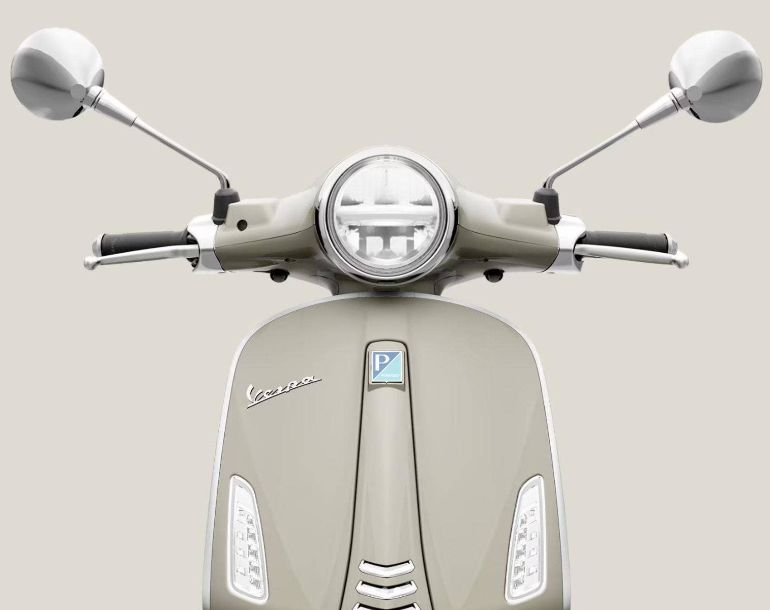 Přední část modelu Vespa Primavera se vyznačuje moderními liniemi a vyspělou technologií: full LED světlomet, obrysová světla i směrovky zajišťují lepší viditelnost – zejména ve večerních hodinách.