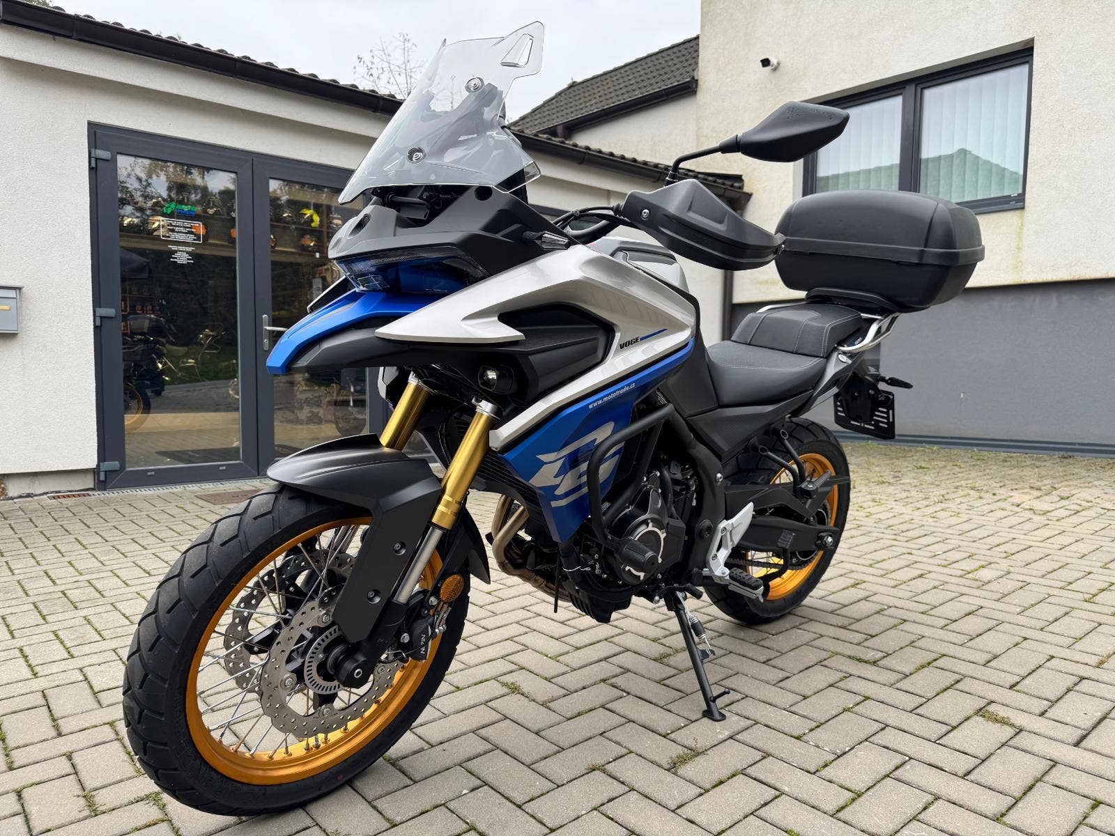 Všestranná a spolehlivá motorka, která ti přinese potěšení při jízdě za každýho počasí. Neskutečně komfortní podvozek a drátěná kola s bezdušovou pneumatikou Metzeler Tourance. Spolehnout se můžeš na topový brzdy od japonskýho Nissinu a dostatečně silnej, dvouválcovej motor o výkonu 48 koní. Díky dvěma jízdním režimům dáš snadno vědět, jestli chceš šetřit benál, anebo máš zrovna chuť na divočení v režimu sport.