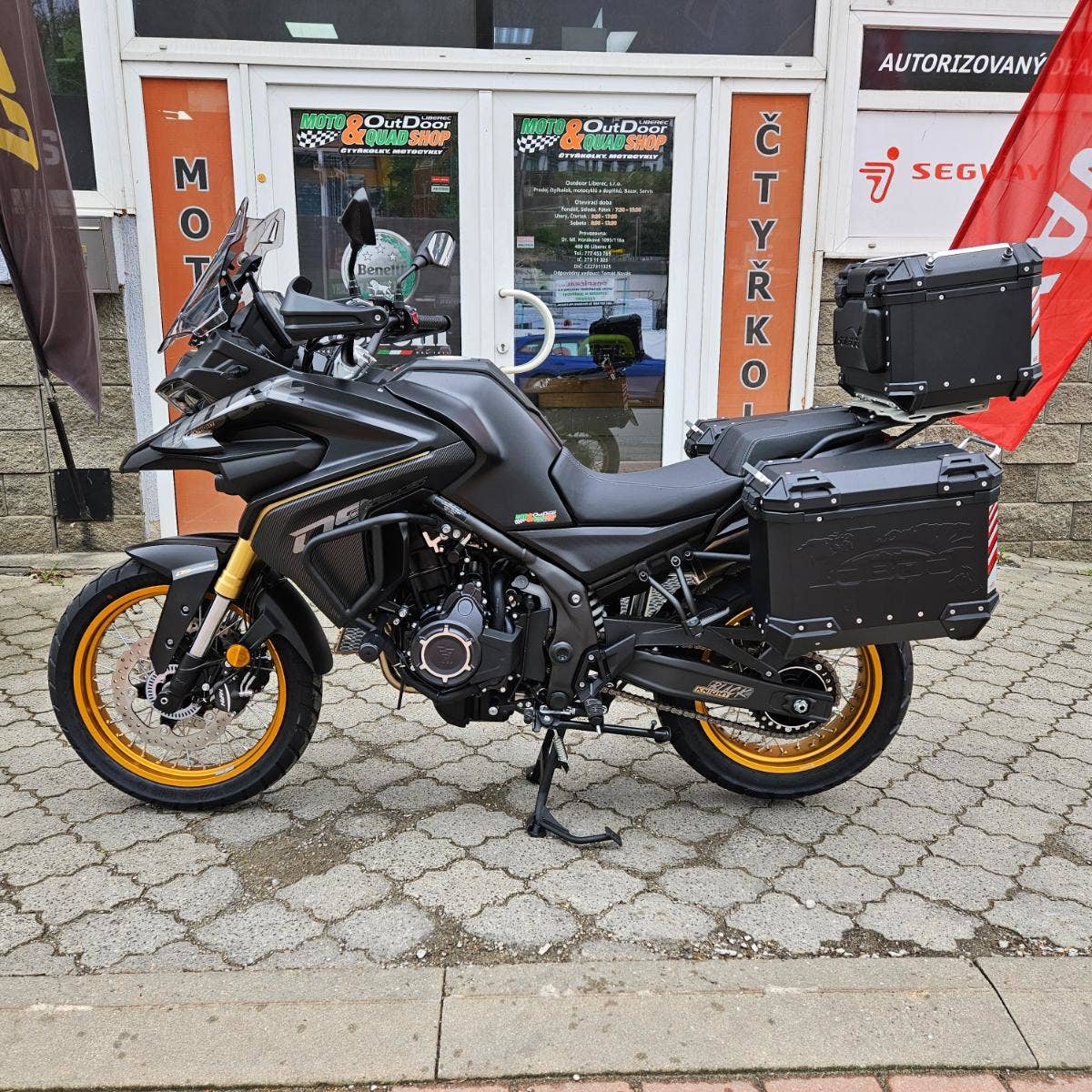 Mojí standardní výbavou je LCD přístrojovka se 7palcovým displejem, která ukazuje krom jinýho i tlak v pneumatikách. No, a když pomocí Bluetooth spáruješ mobil, přístrojovka začne fungovat taky jako bezvadná moto navigace. Mám boční i středový stojan, konektor USB, 12V zásuvku, nastavitelný plexi, kompletní LED osvětlení a nádherný přídavný bodovky. V základu dostaneš taky trojici origoš hliníkových zamykacích kufrů. Sbalíš do nich všechno, co budeme na naší cestě za poznáním potřebovat.
