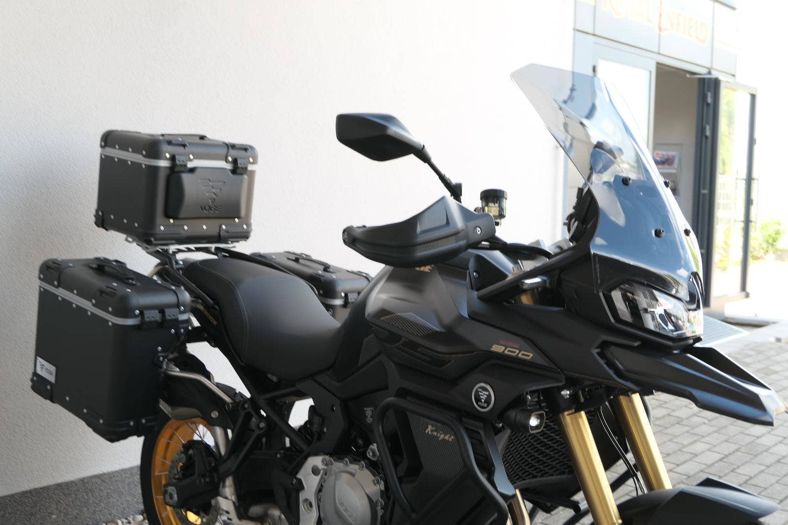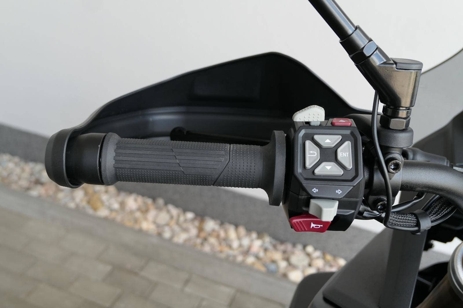 Už v základu tě budou rozmazlovat vyhřívaný rukojeti a sedlo. Ale aby ses furt mohl cejtit jako drsňák, je tu padací rám, hlavní a boční stojan, full LED světla, chrániče rukou a rychlonastavitelný plexi. Ať si ten vítr ve tváři můžeš korigovat podle svý nálady.