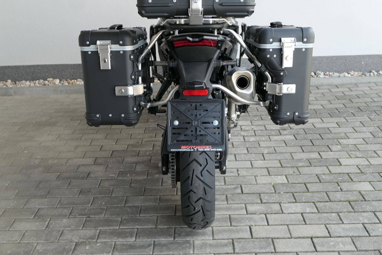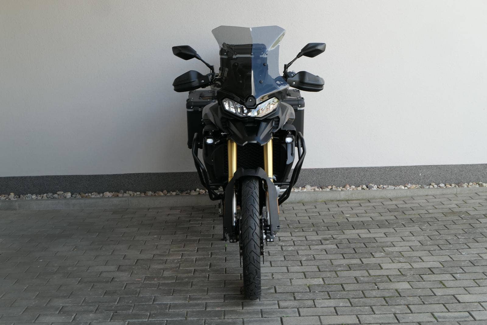 Brzdy? Od Bremba. Podvozek je zase komplet od Kayaby a stabilitě napomáhaj vypletený bezdušáky (21"/17") obutý do špičkovejch gum Pirelli Scorpion Trail II. O bezpečnost se stará radar a styl jízdy si kdykoliv sám upravíš volbou jízdního režimu. Je jen na tobě, na kterej máš zrovna chuť.