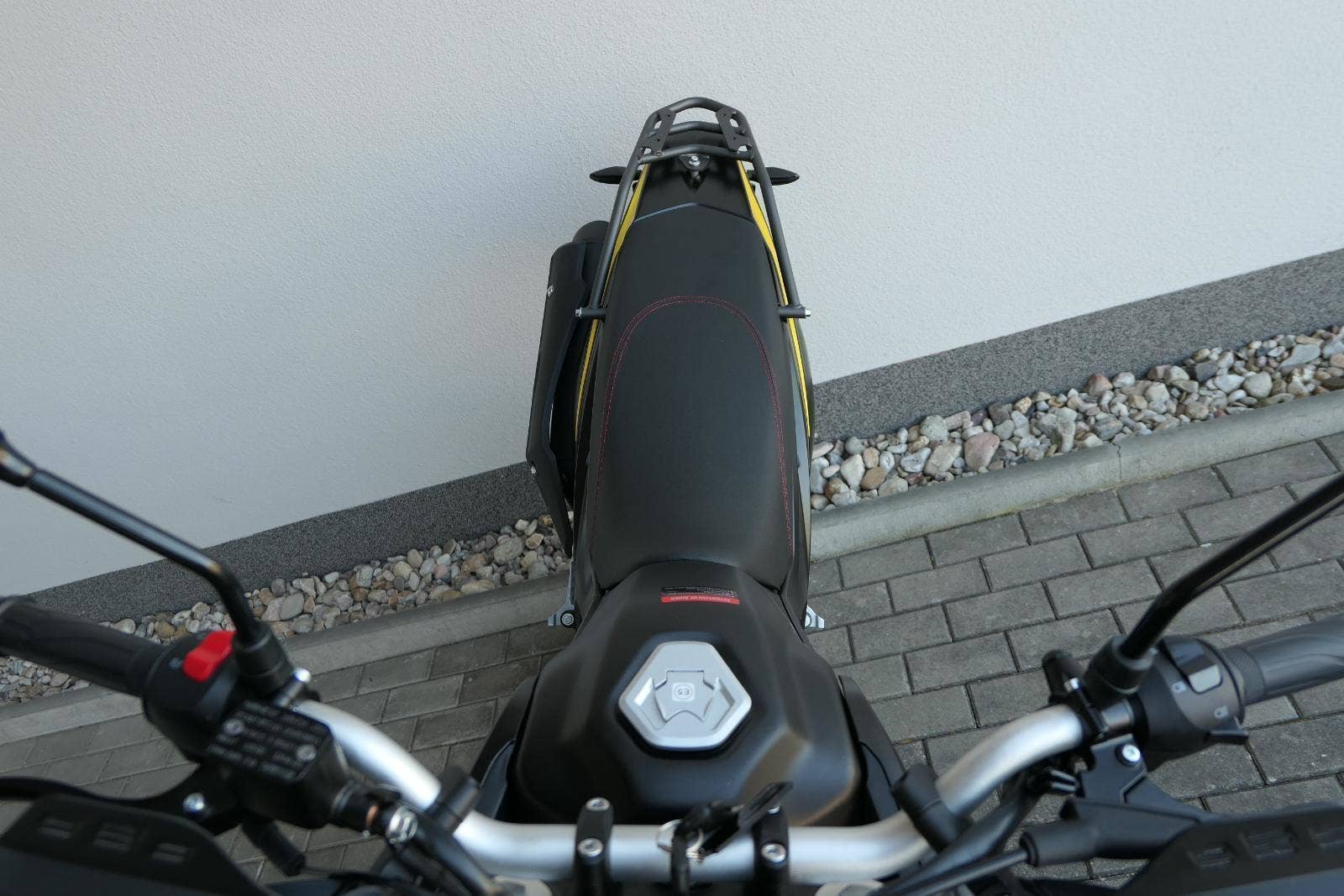 Skvěle fungující brzdy a podvozek, to je základ každý dobrý motorky. Vo hvězdný brždění se vepředu stará kotouč o průměru 265 mm a dvoupístkový brzdič. Moje vidle mají zdvih 205 mm, a tak si piš, že na doraz taky hned tak nepůjdou.